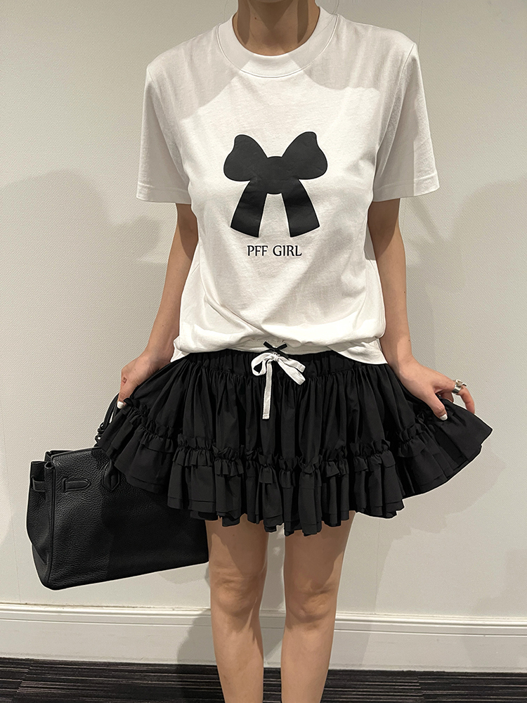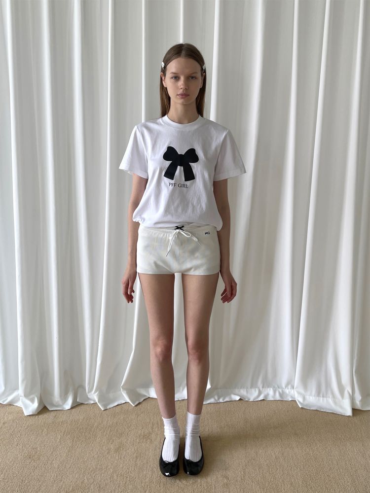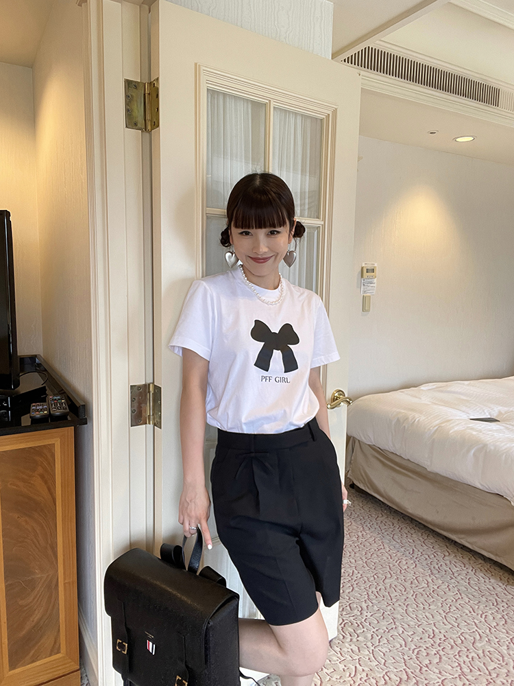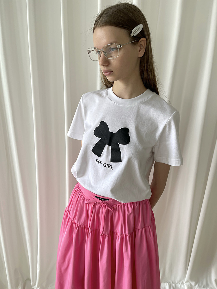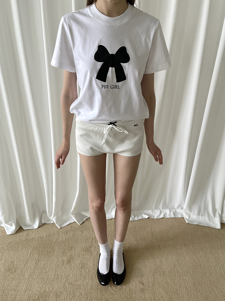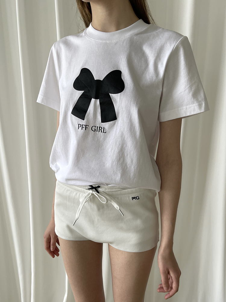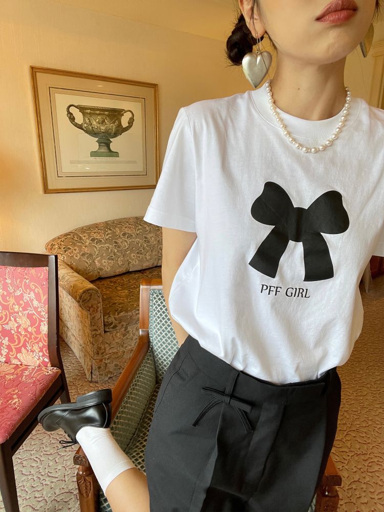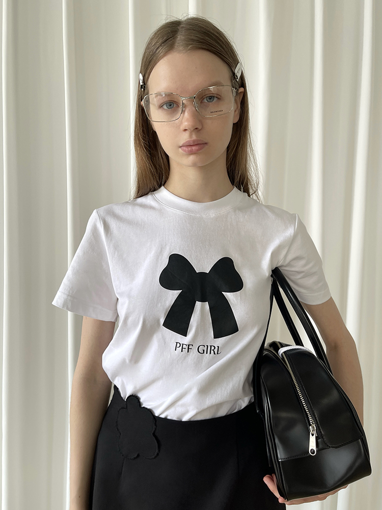 PFF GIRL White Bow Print Short Sleeve T-shirt