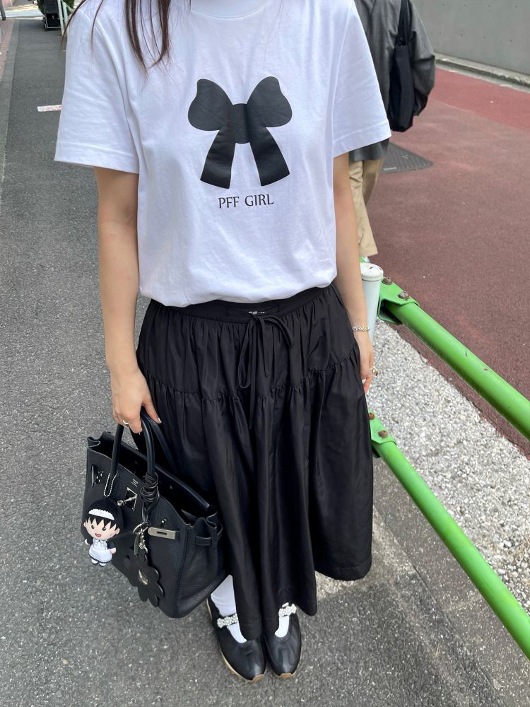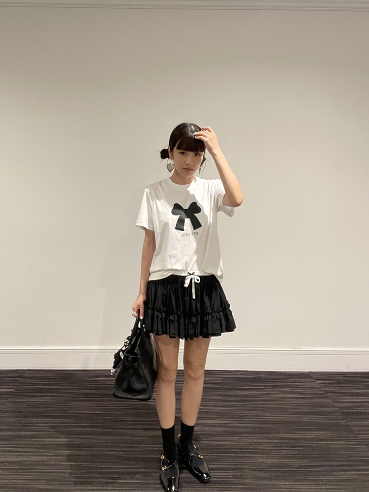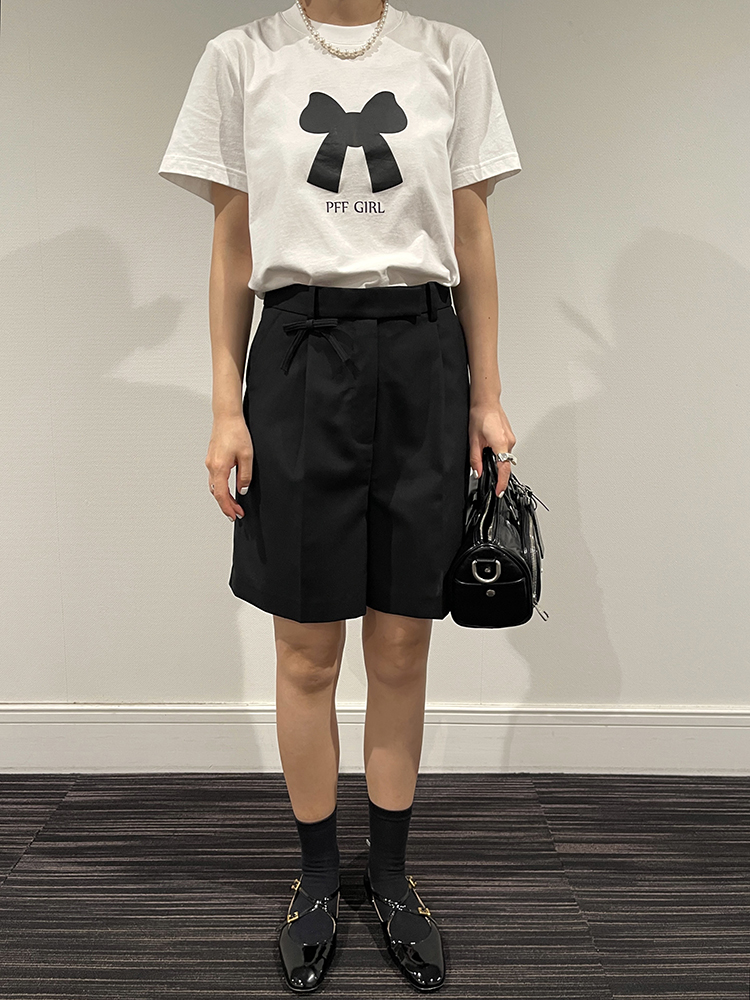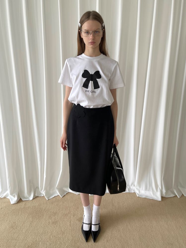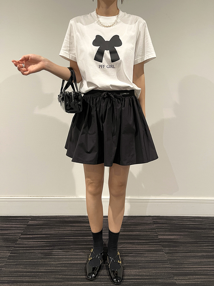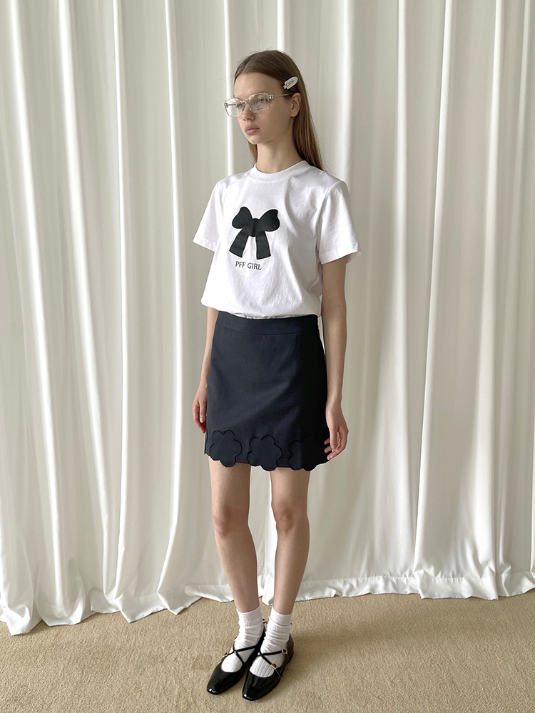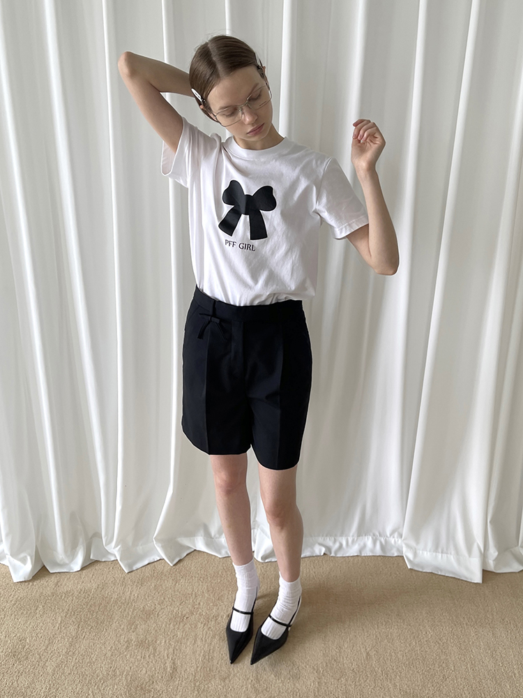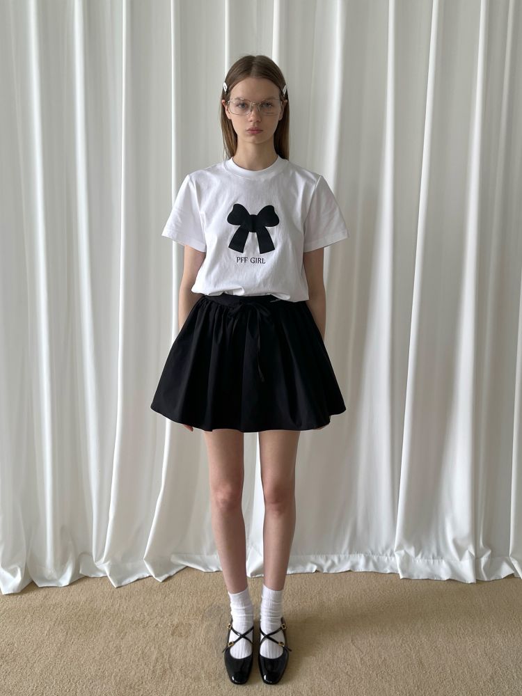 PFF GIRL White Bow Print Short Sleeve T-shirt
