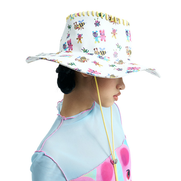 MOF White Cherry Mouse Print U-Neck T-Shirt