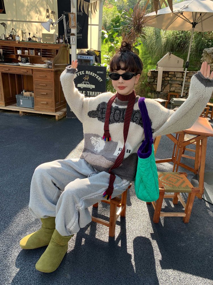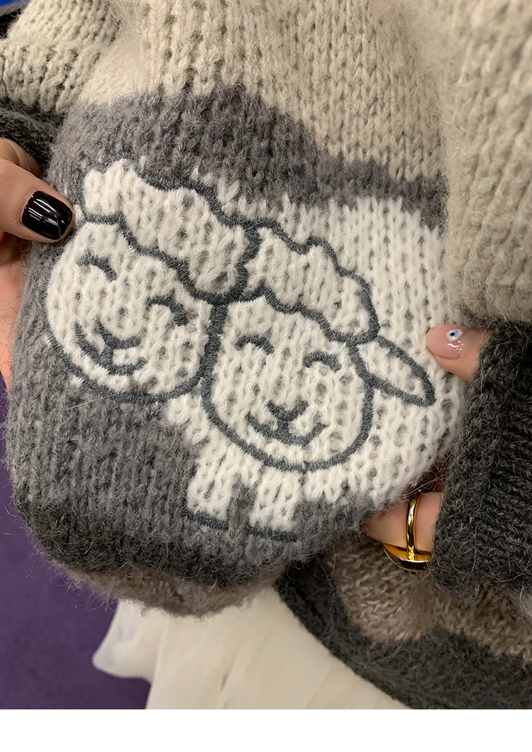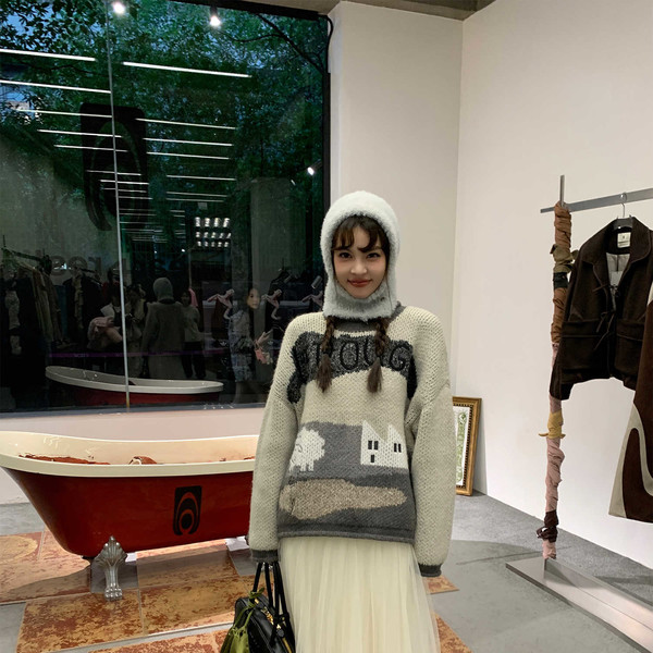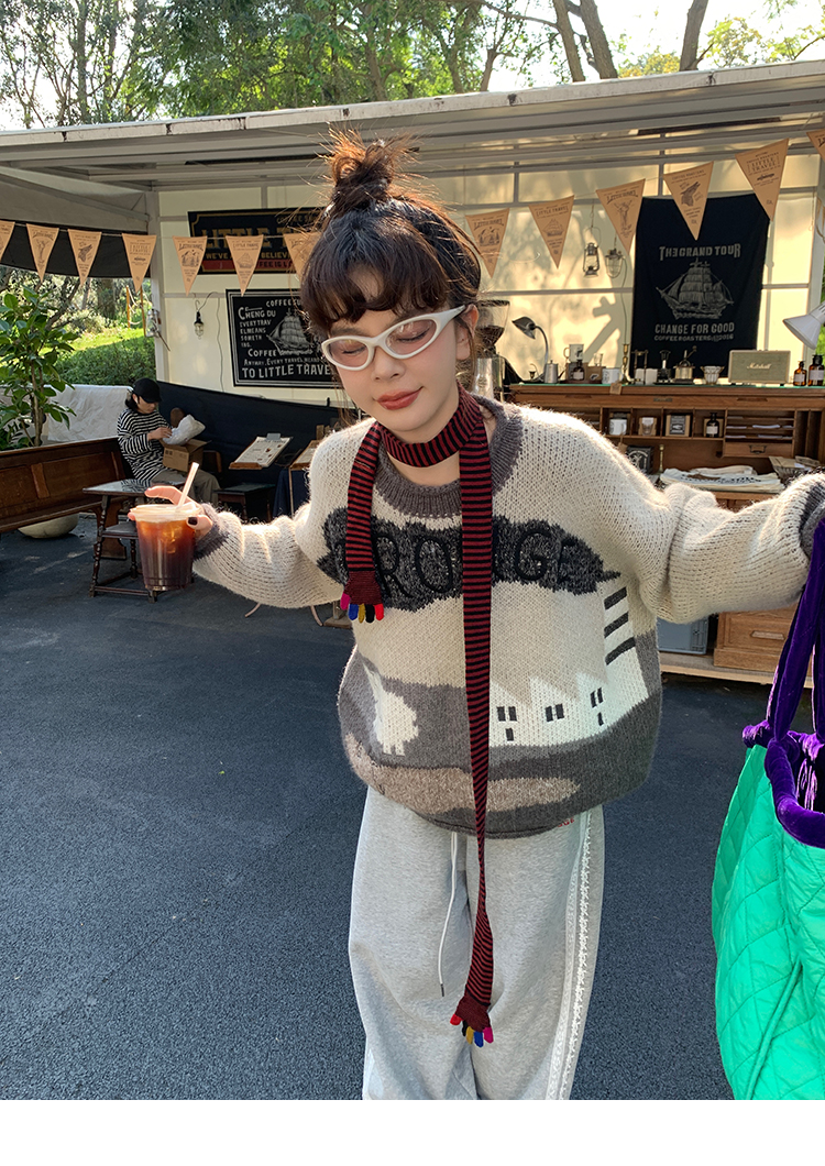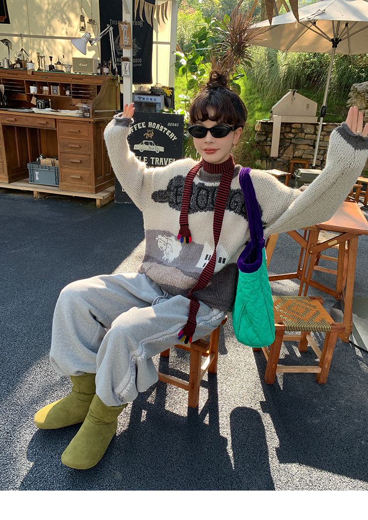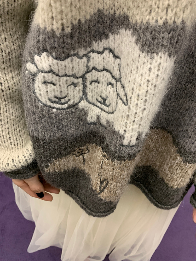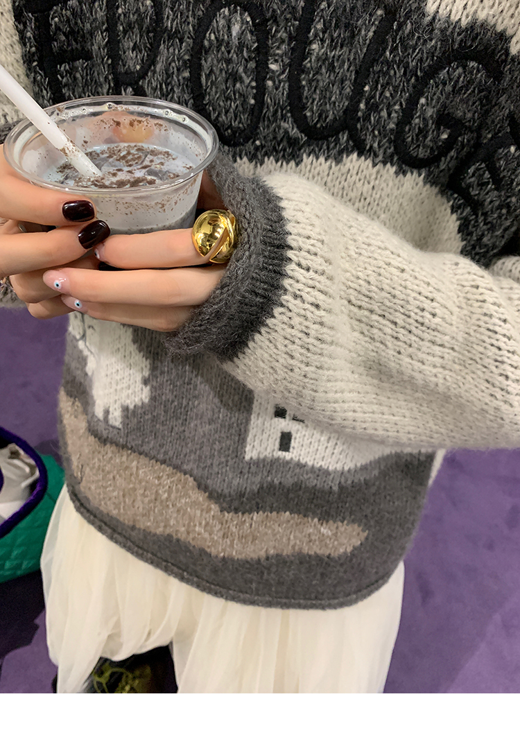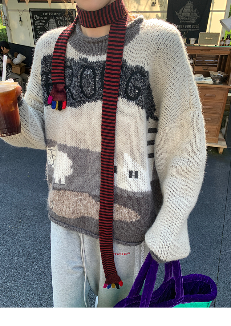 LRIB Jacquard Collar Round Neck Pullover Woolen Curl Sweater