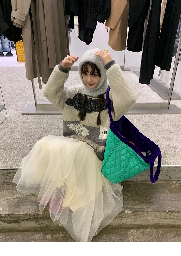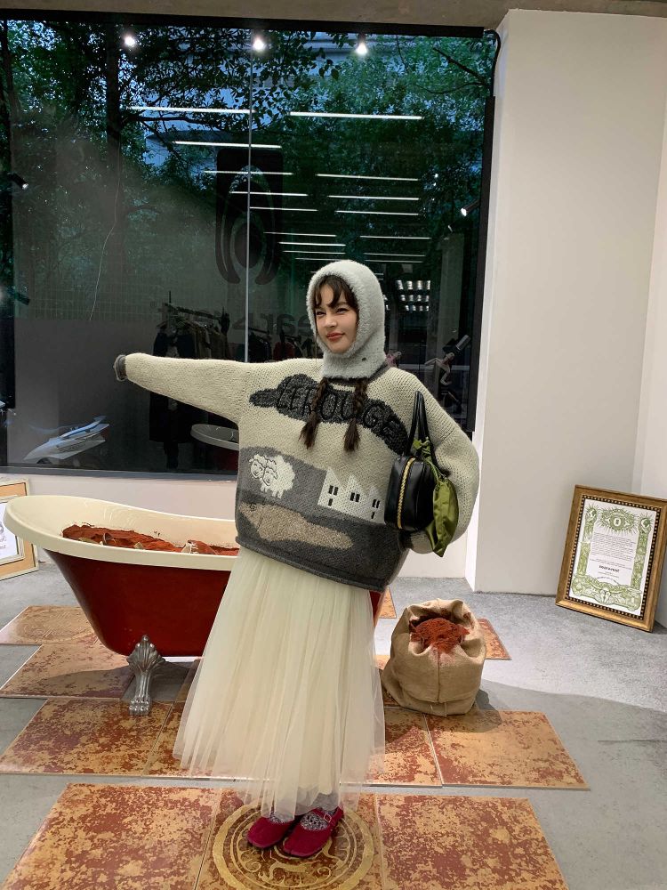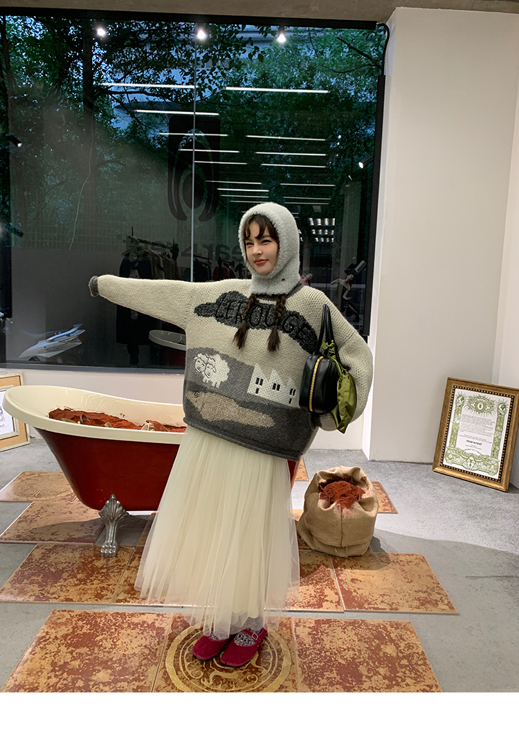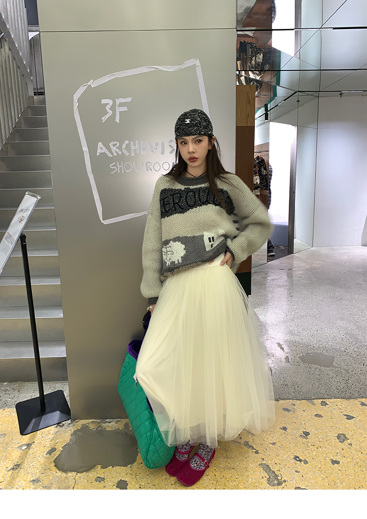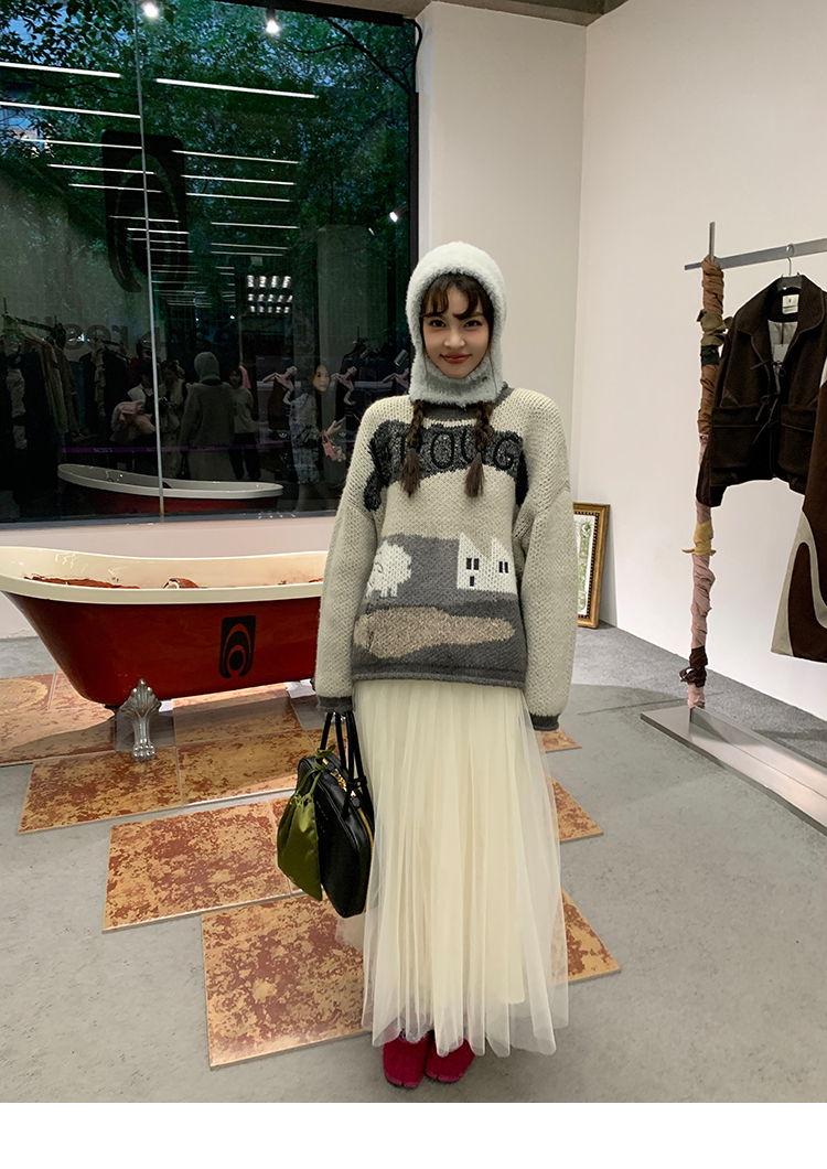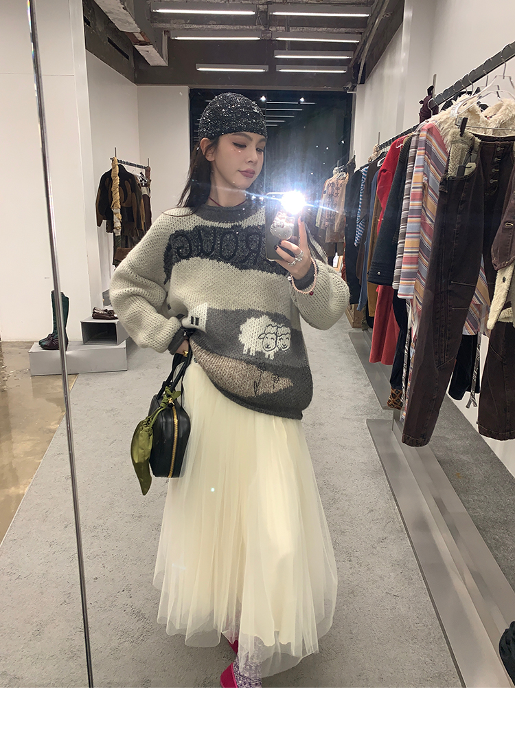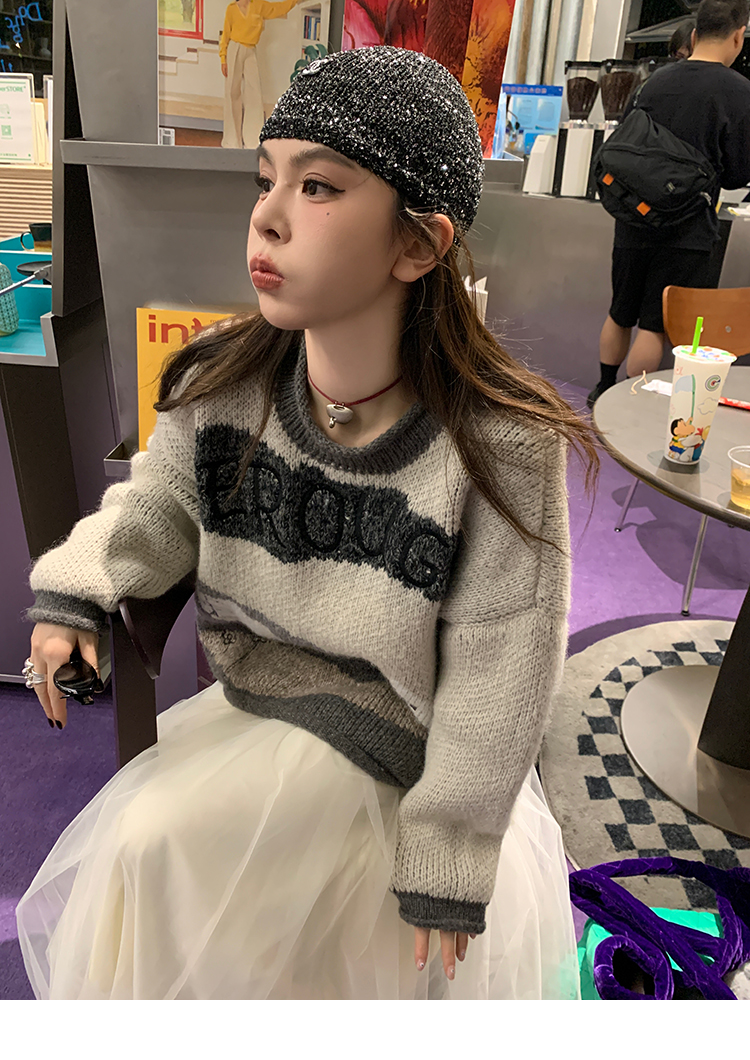 LRIB Jacquard Collar Round Neck Pullover Woolen Curl Sweater