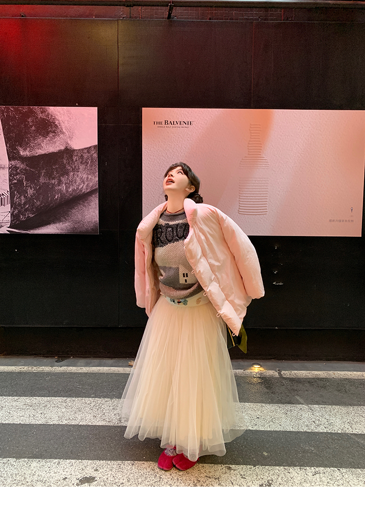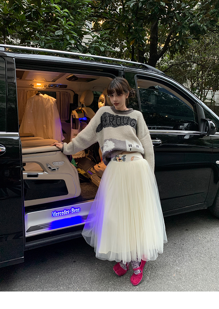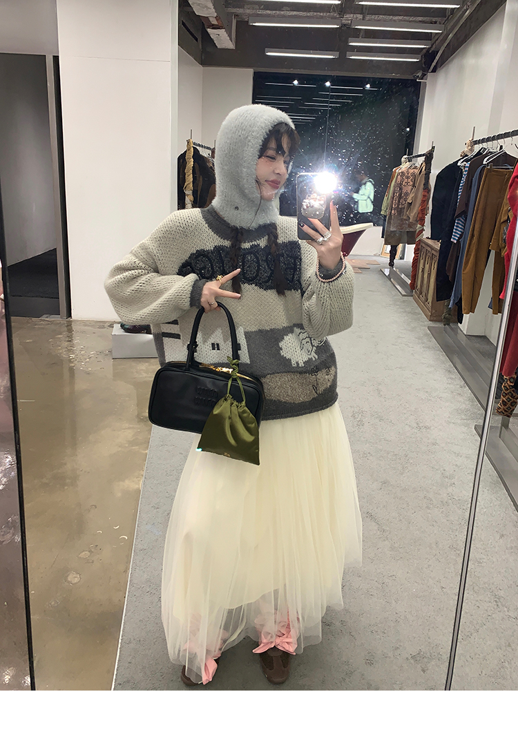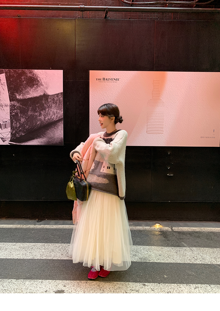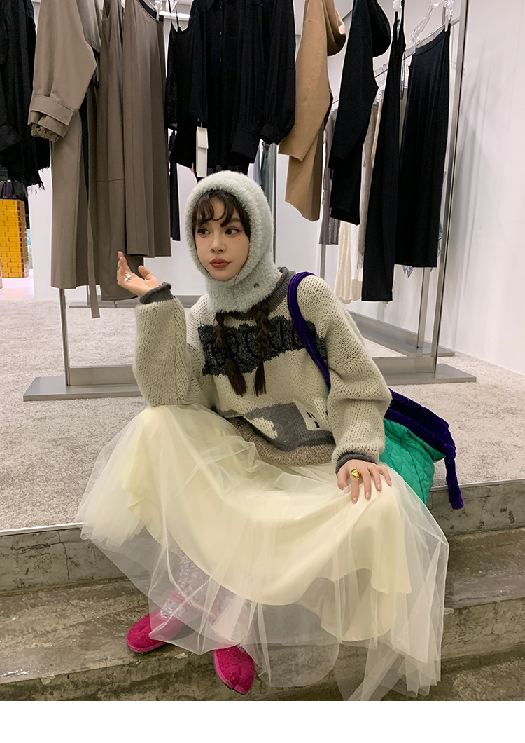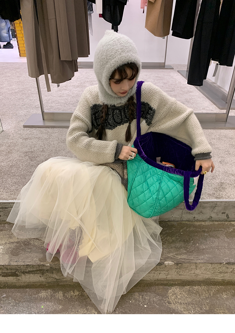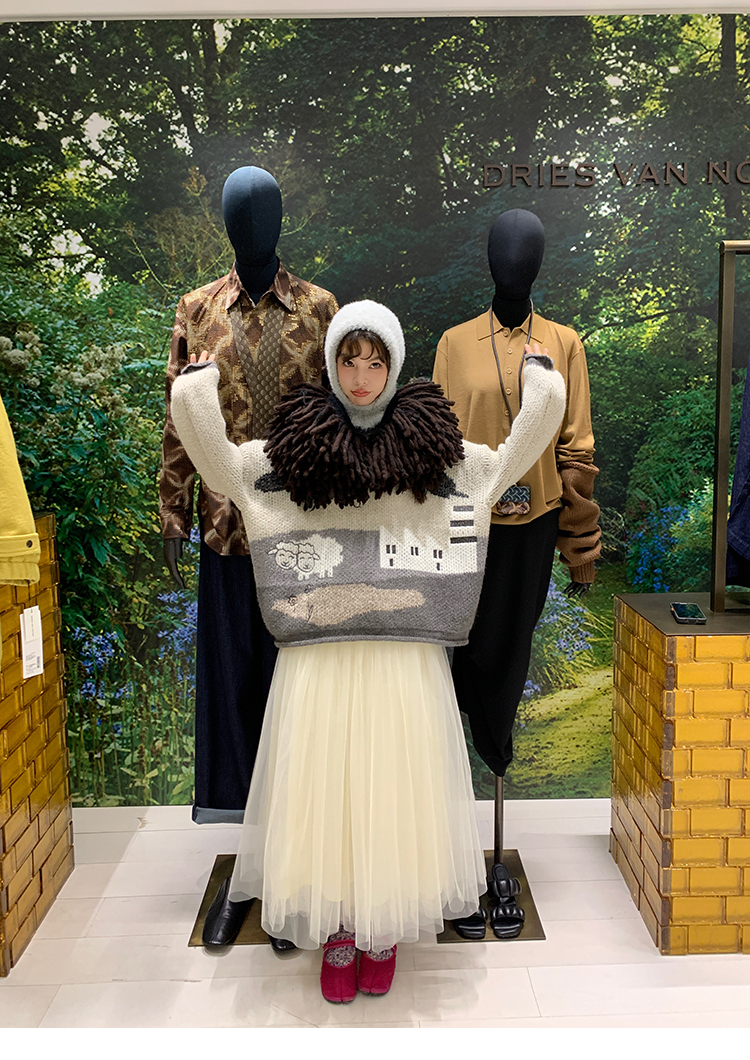 LRIB Jacquard Collar Round Neck Pullover Woolen Curl Sweater