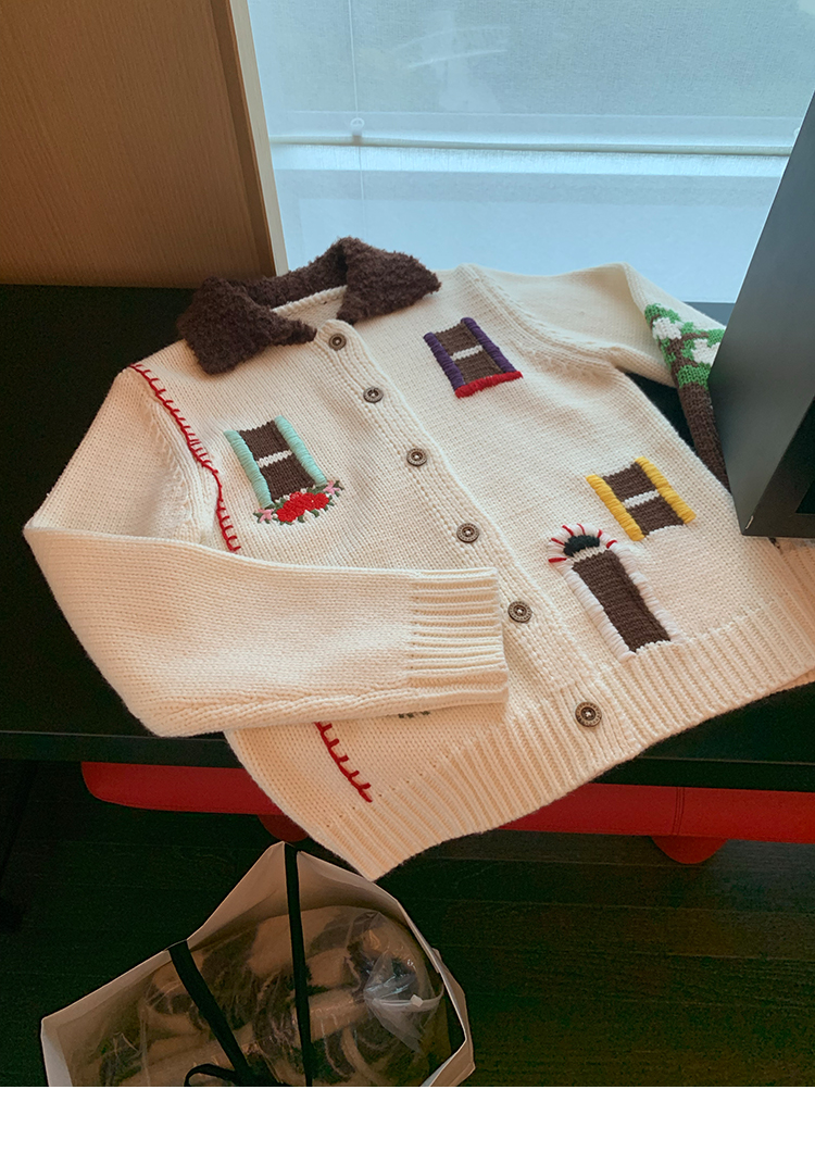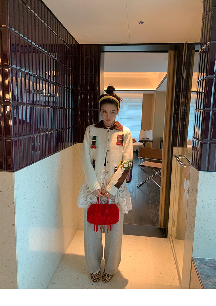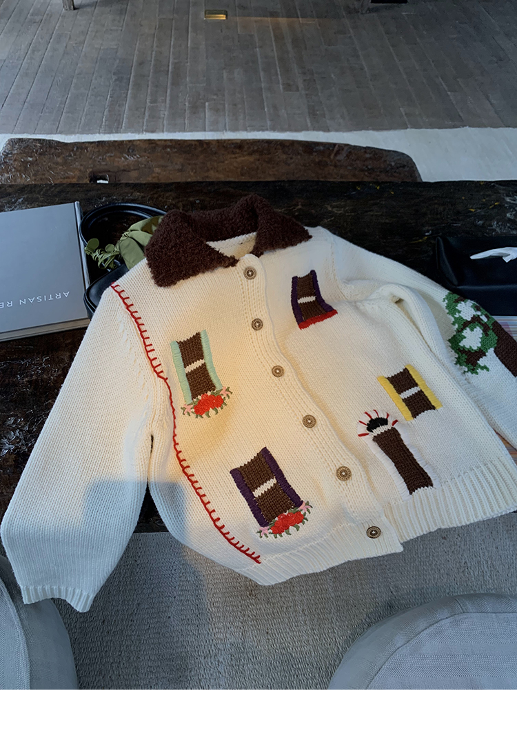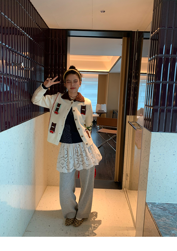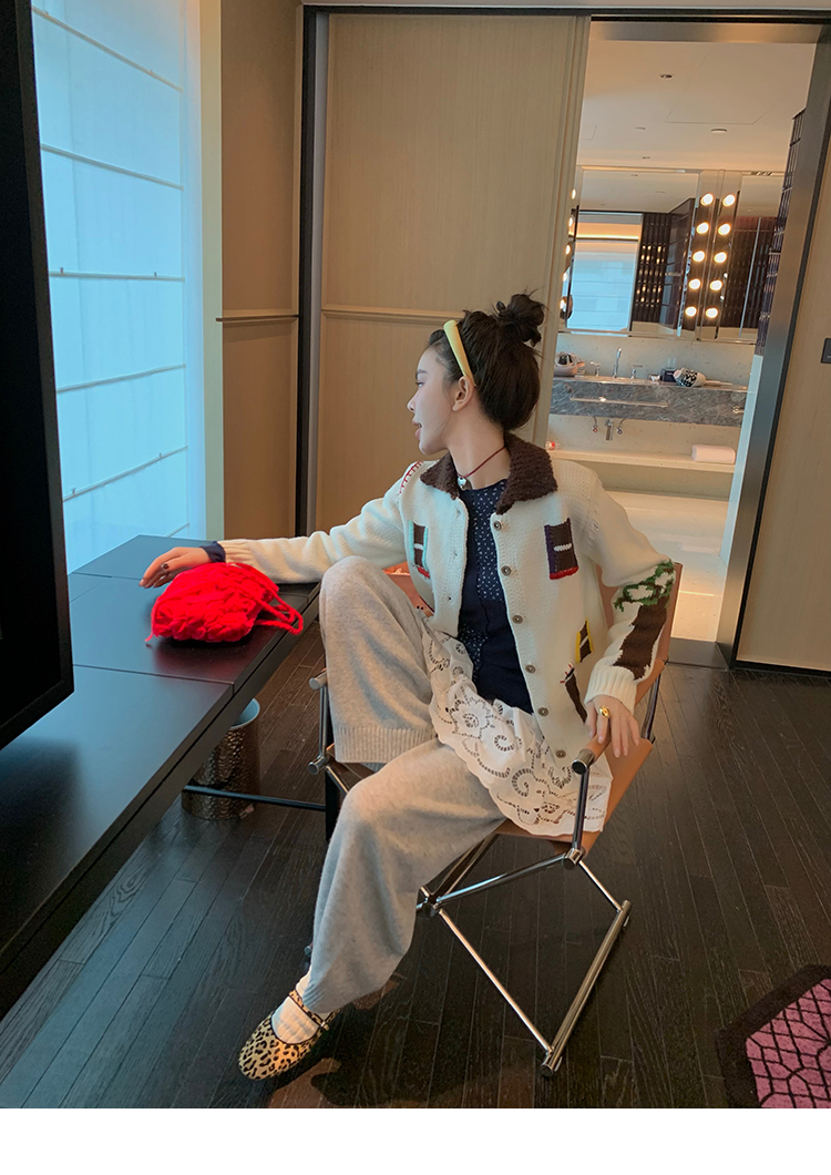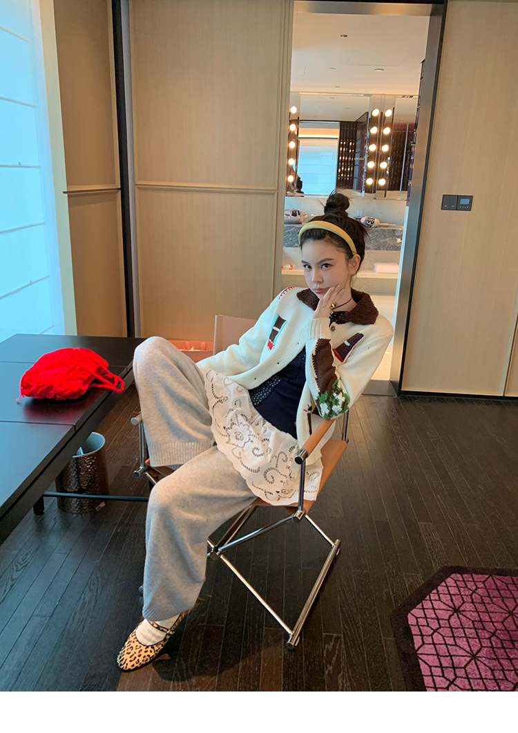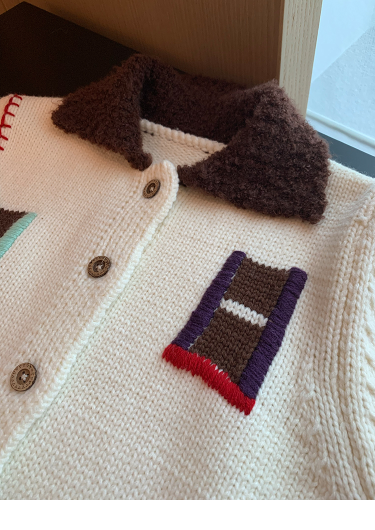 LRIB flower room lapel stitching sweater wool cardigan