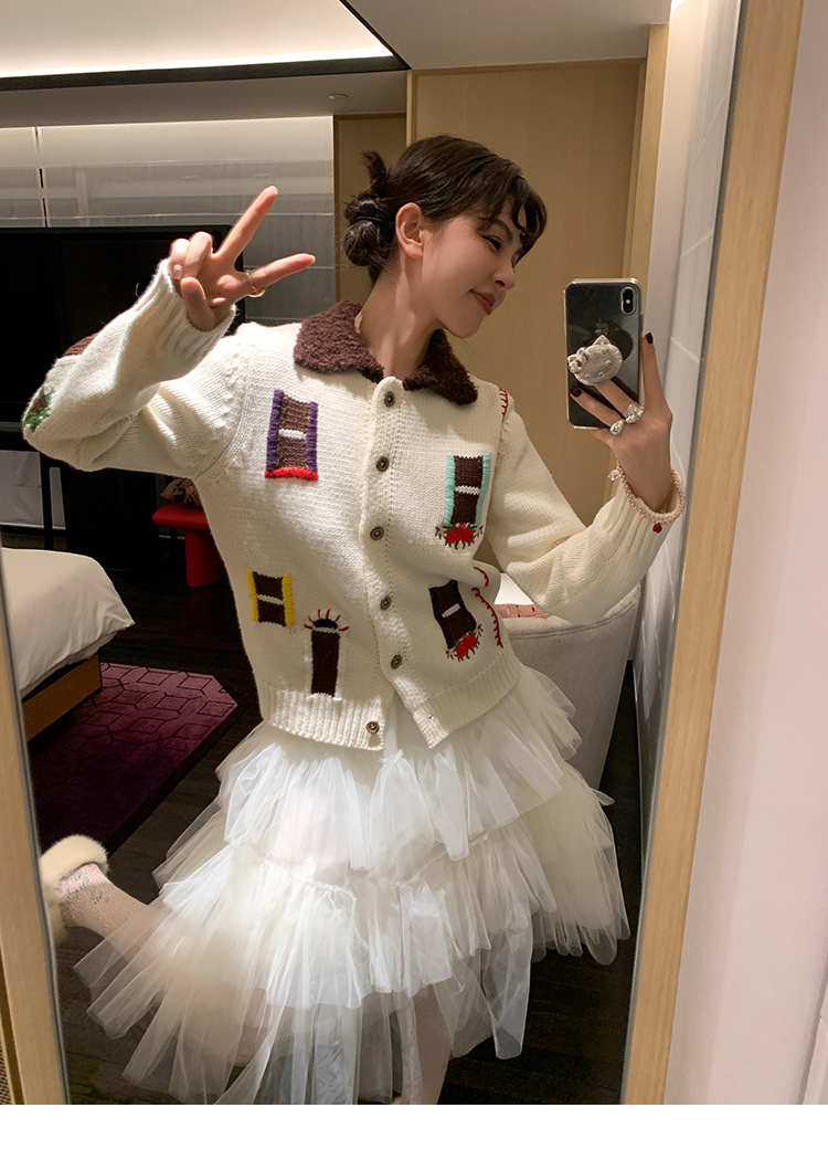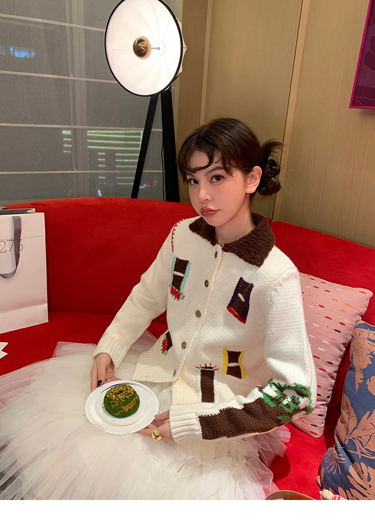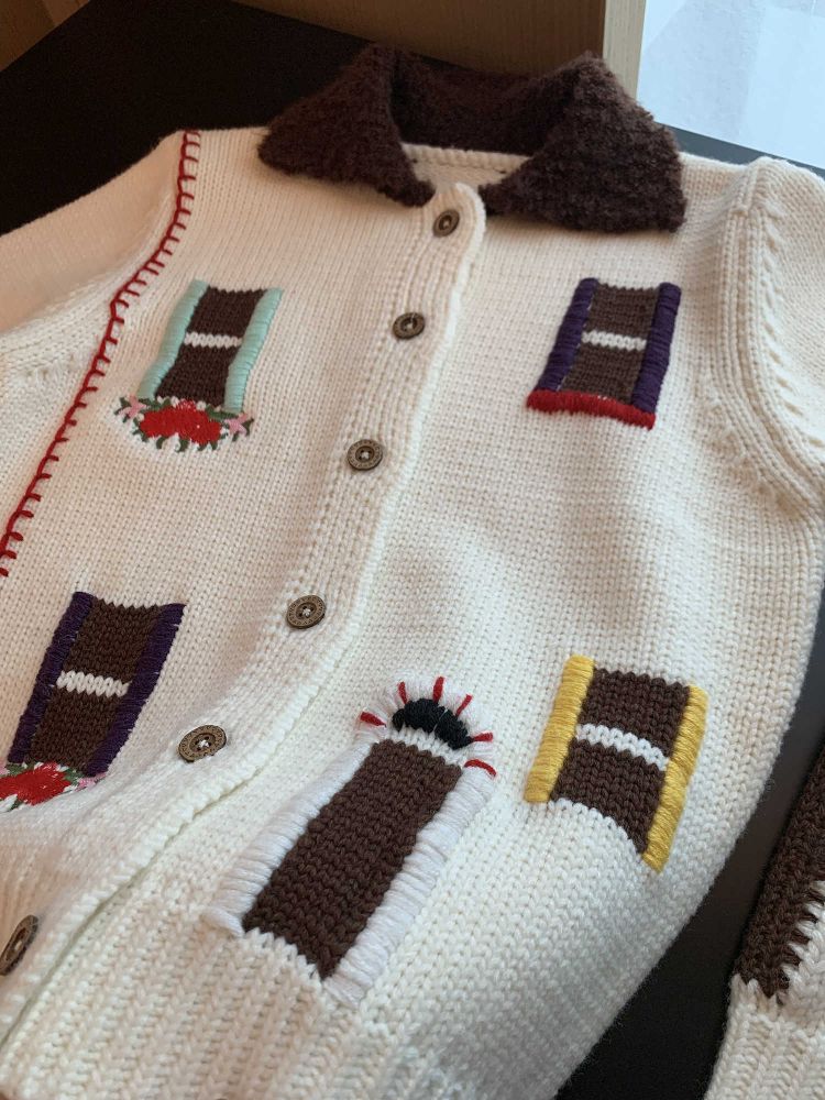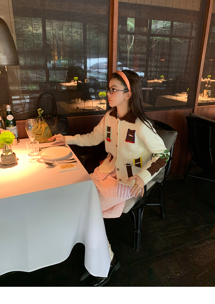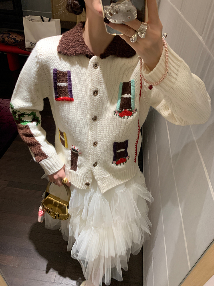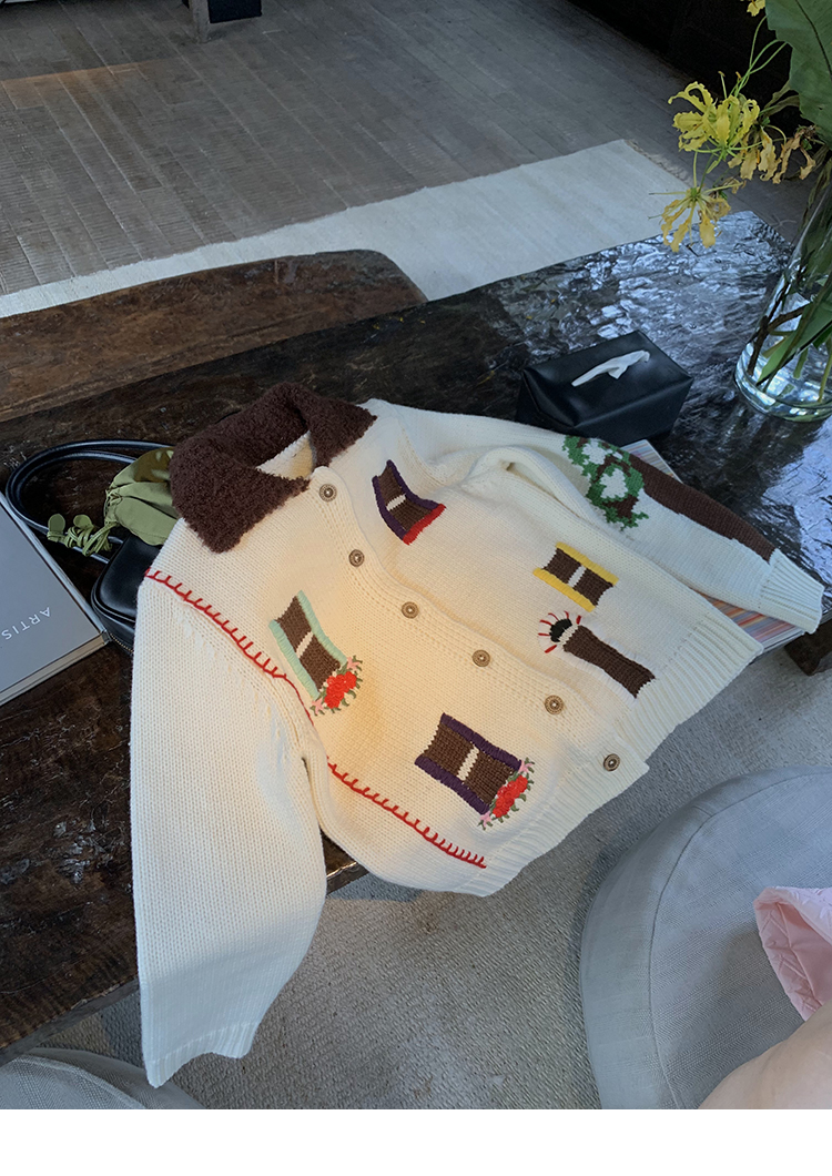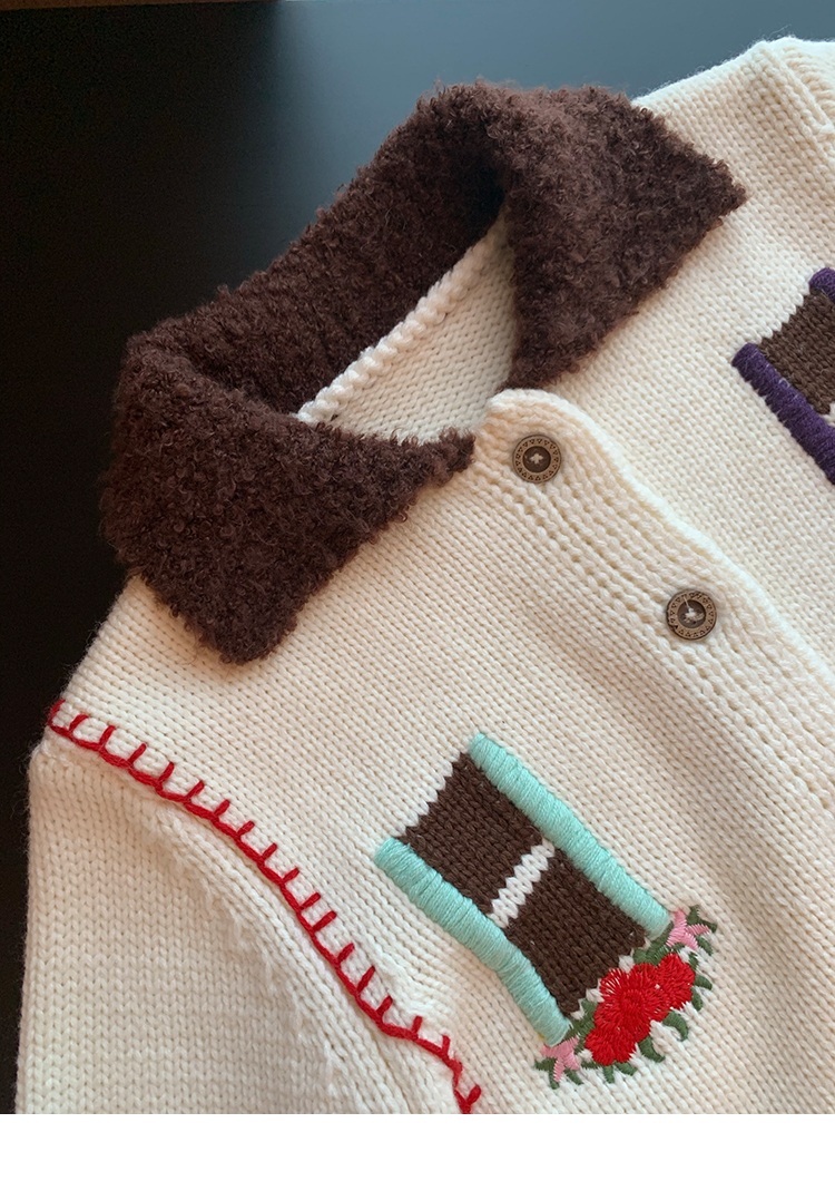 LRIB flower room lapel stitching sweater wool cardigan