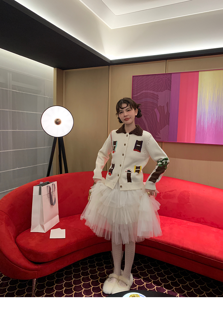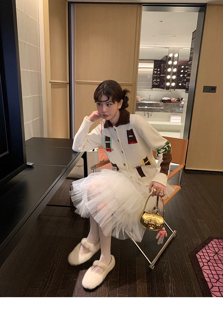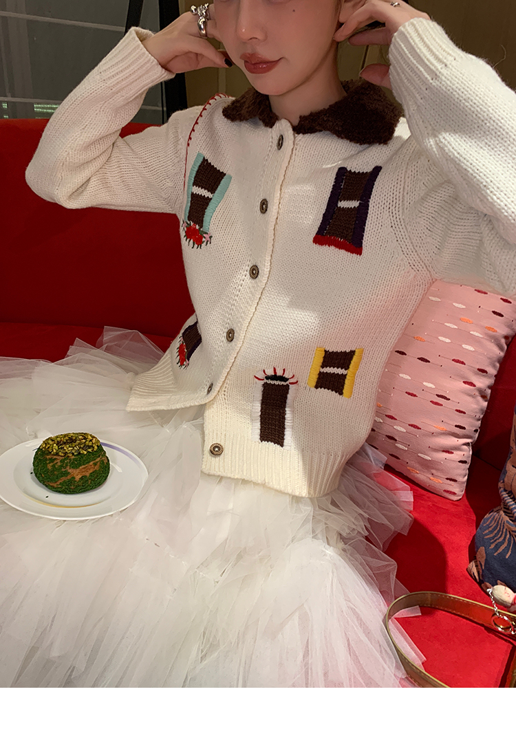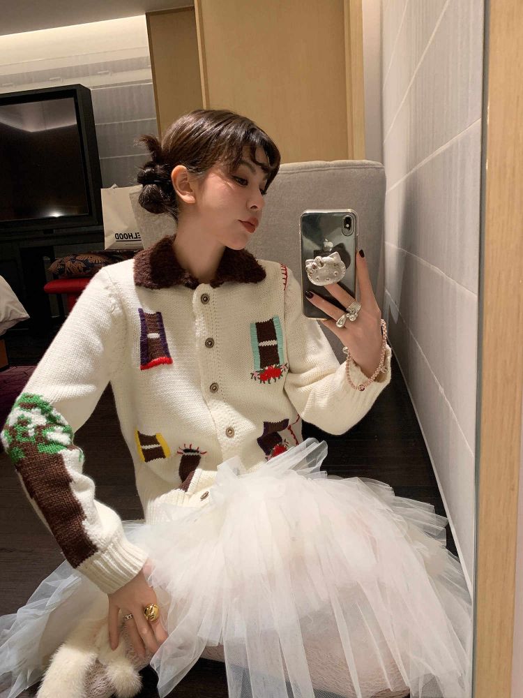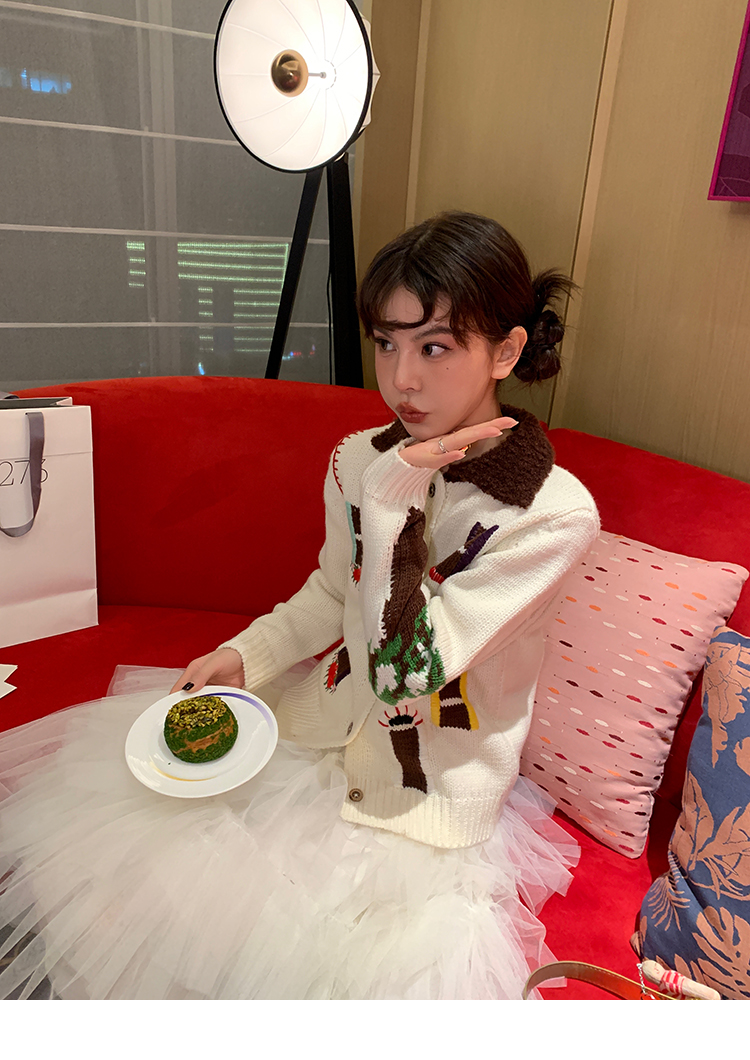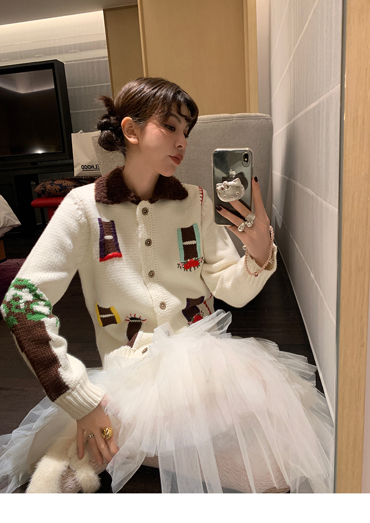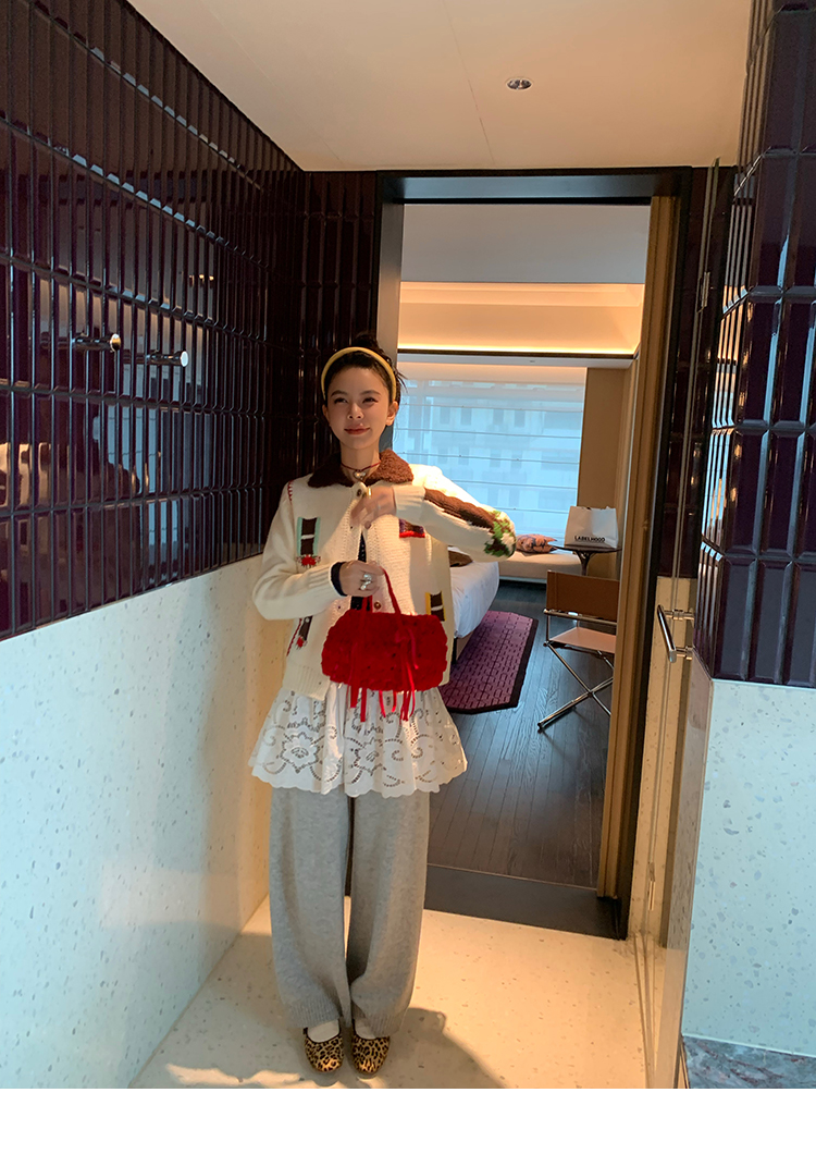 LRIB flower room lapel stitching sweater wool cardigan