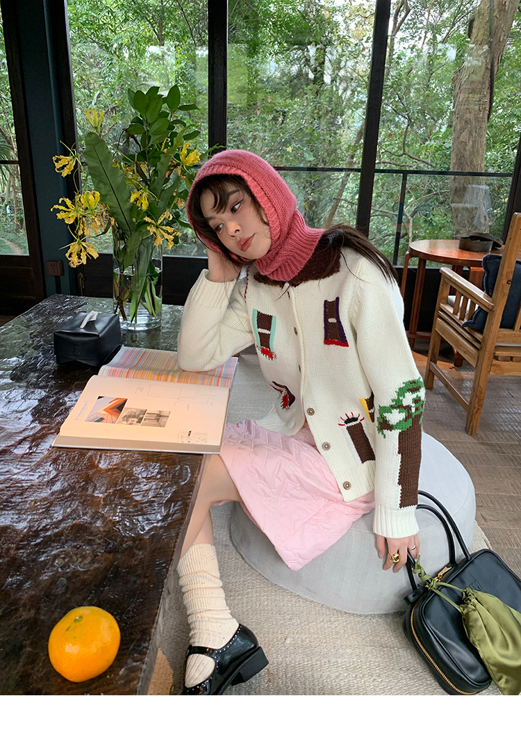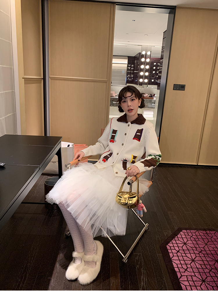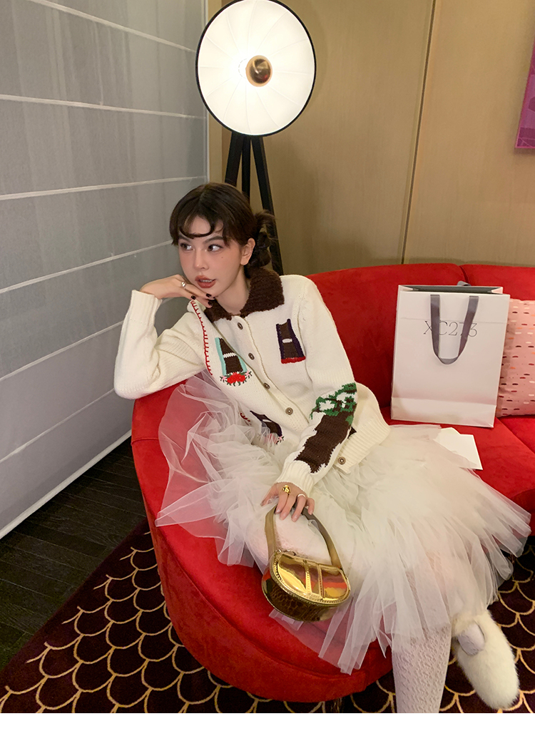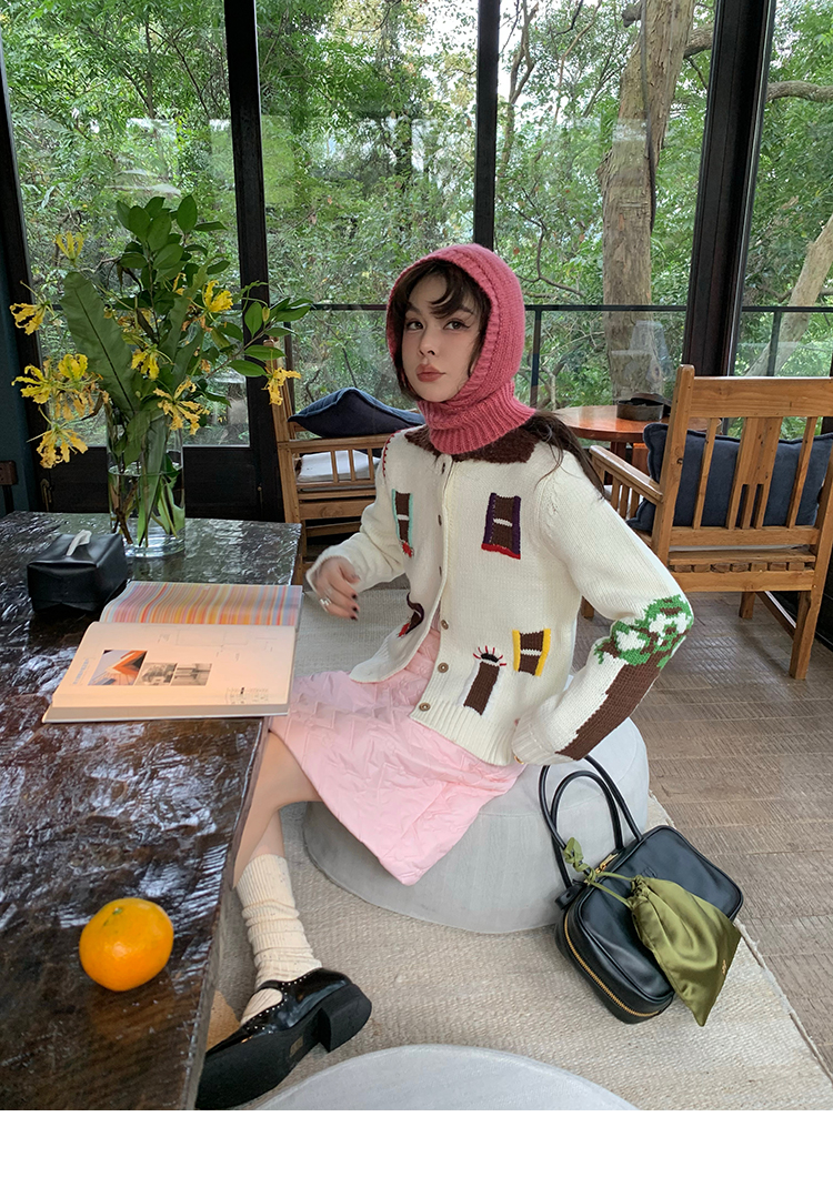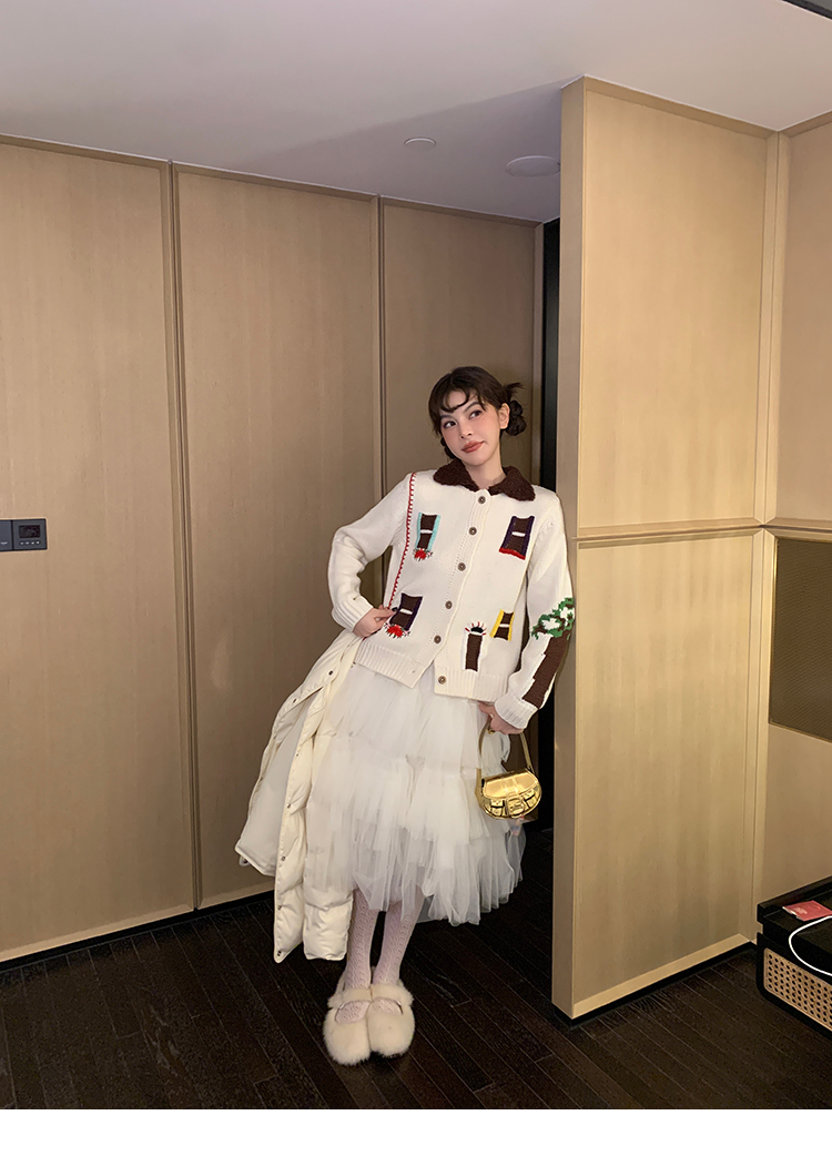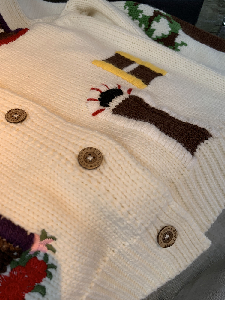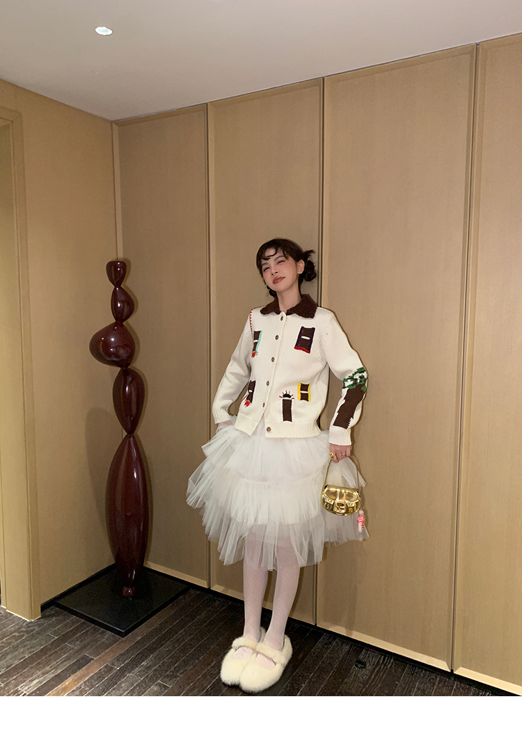 LRIB flower room lapel stitching sweater wool cardigan