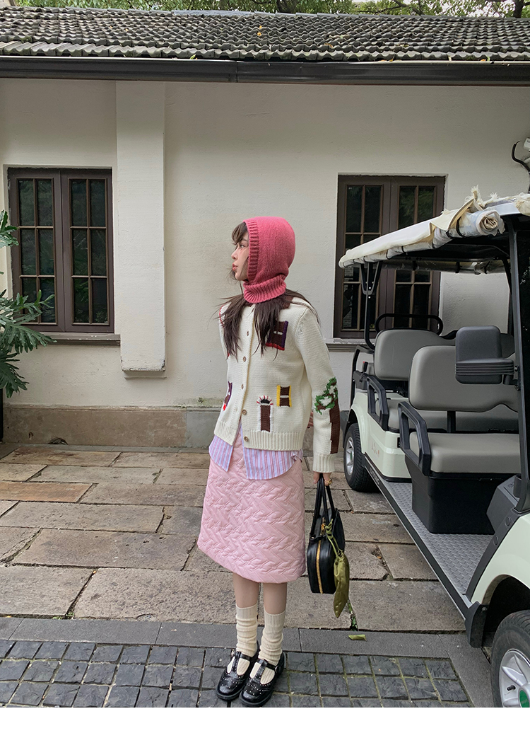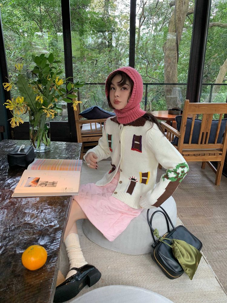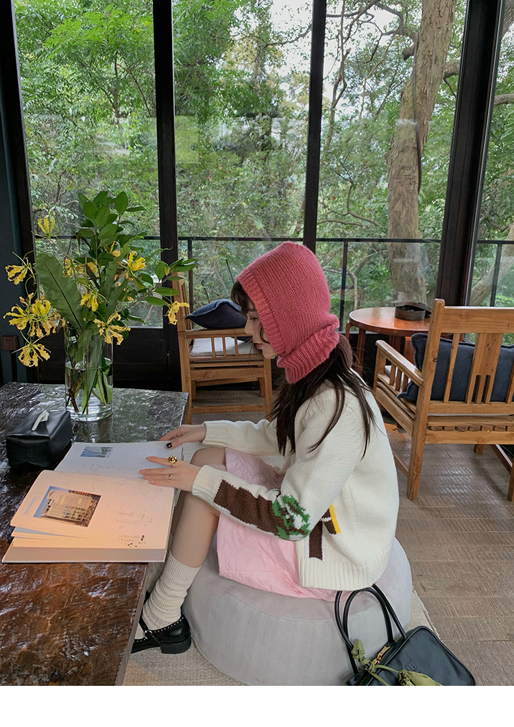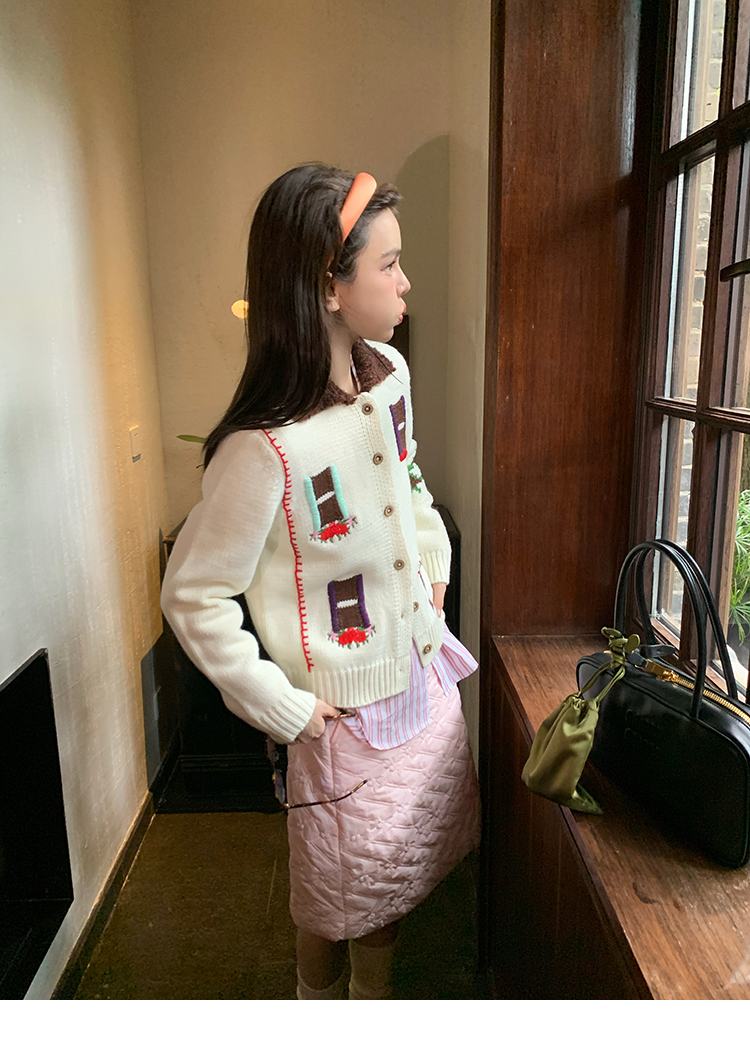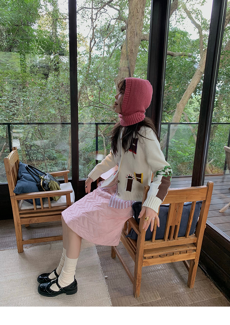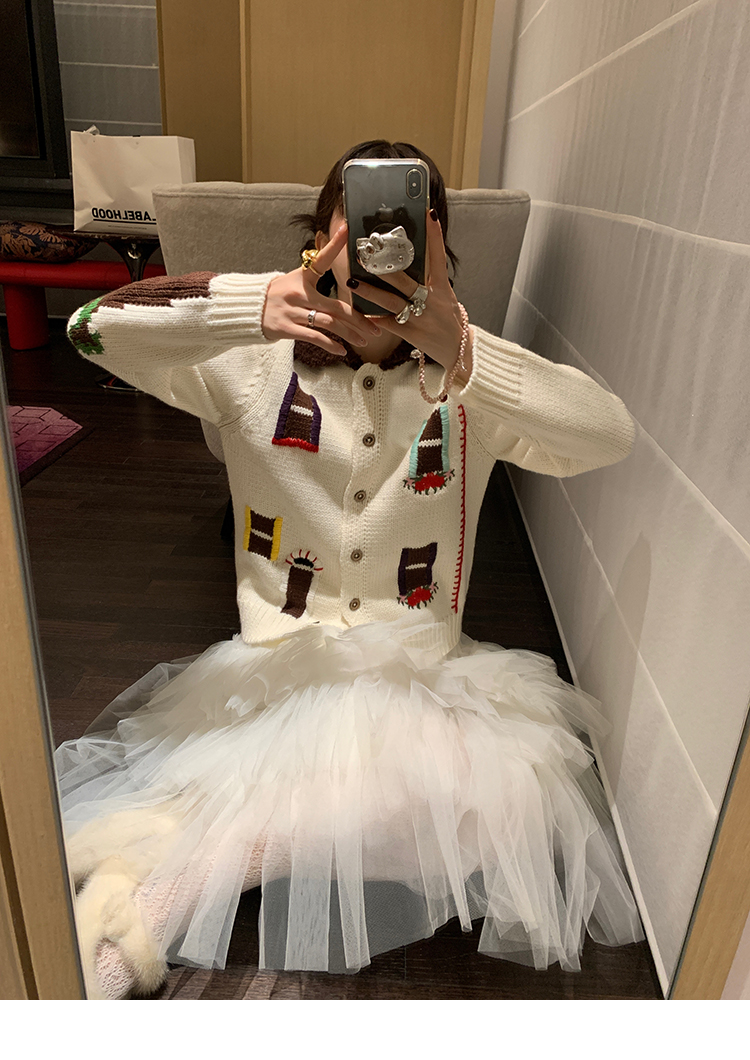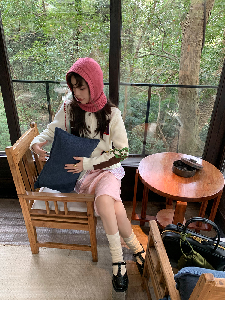 LRIB flower room lapel stitching sweater wool cardigan