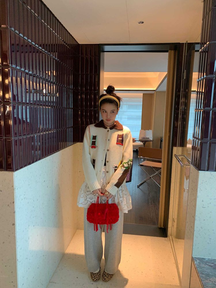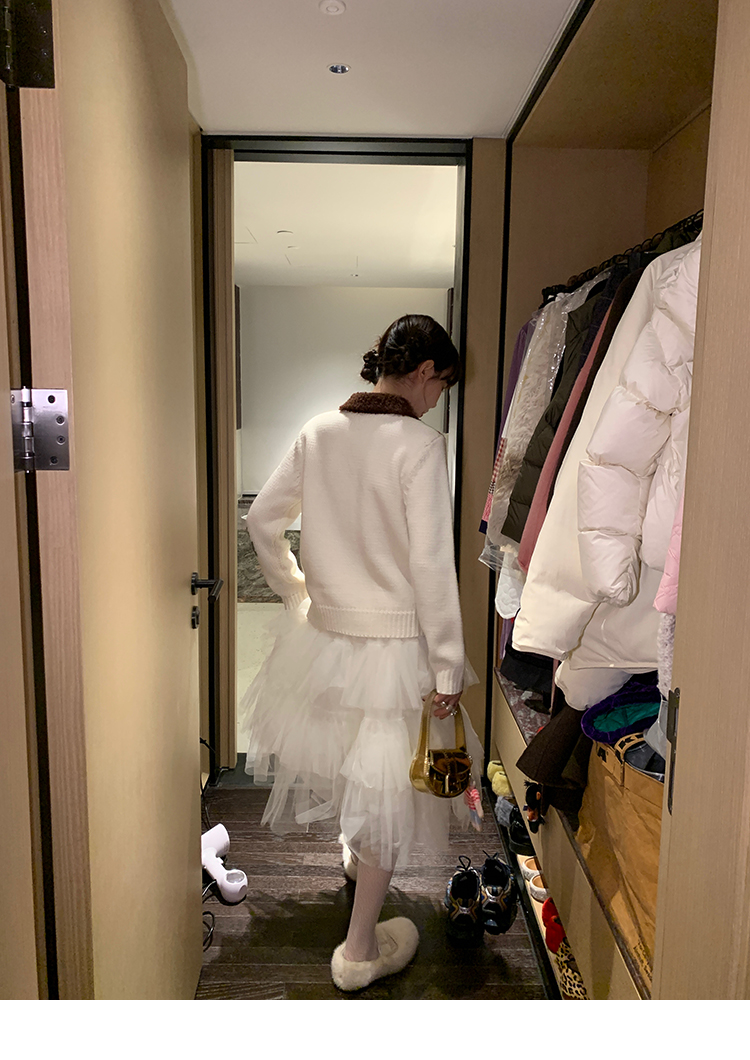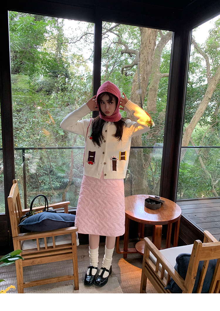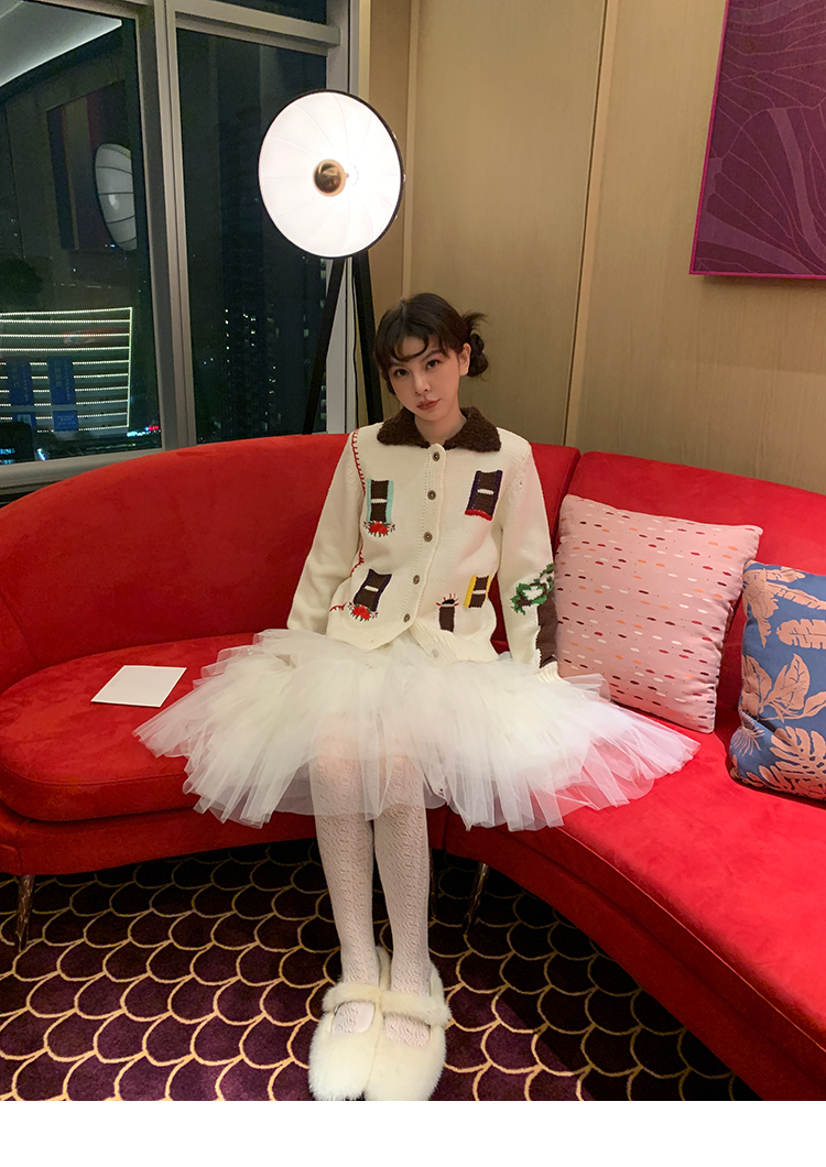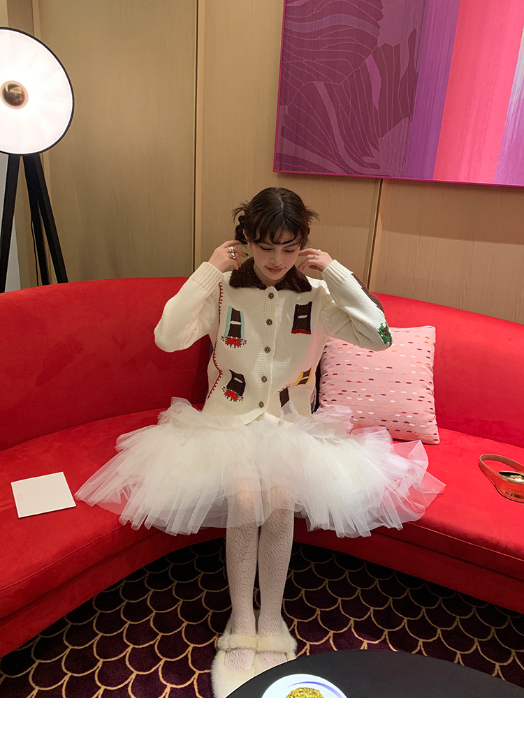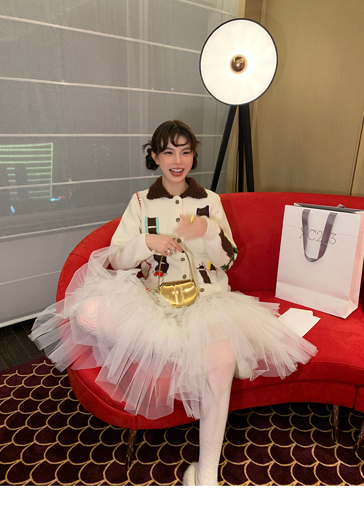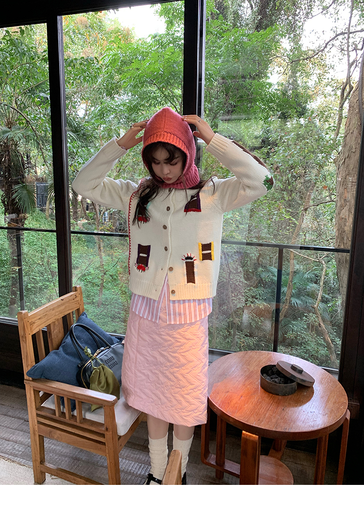 LRIB flower room lapel stitching sweater wool cardigan