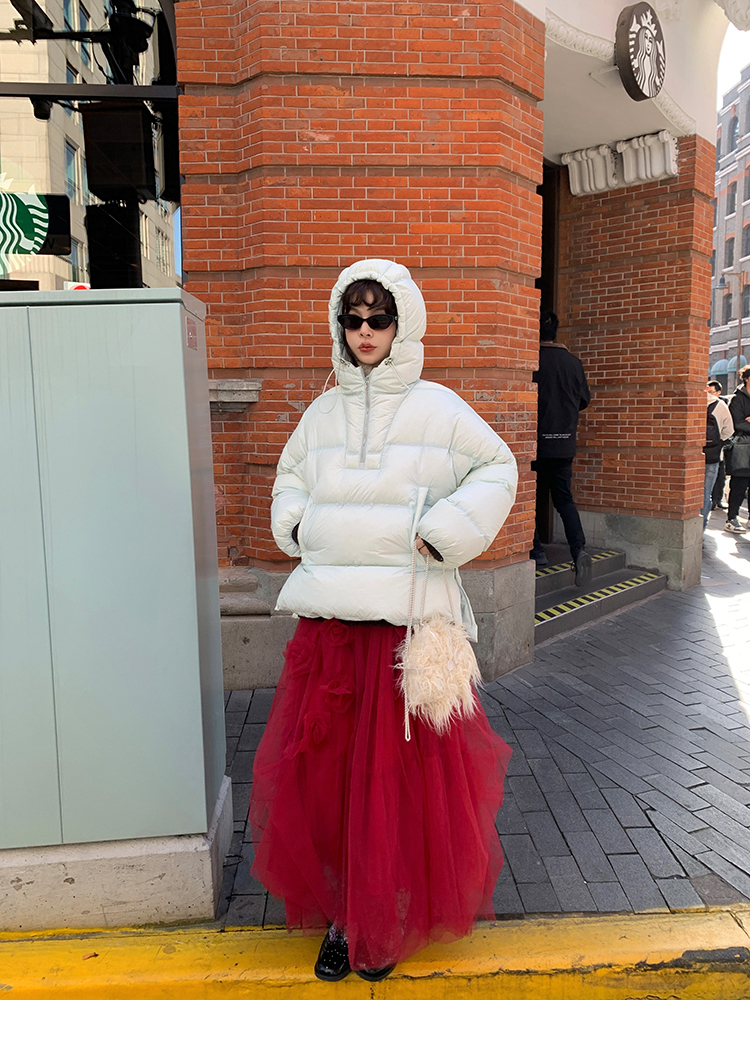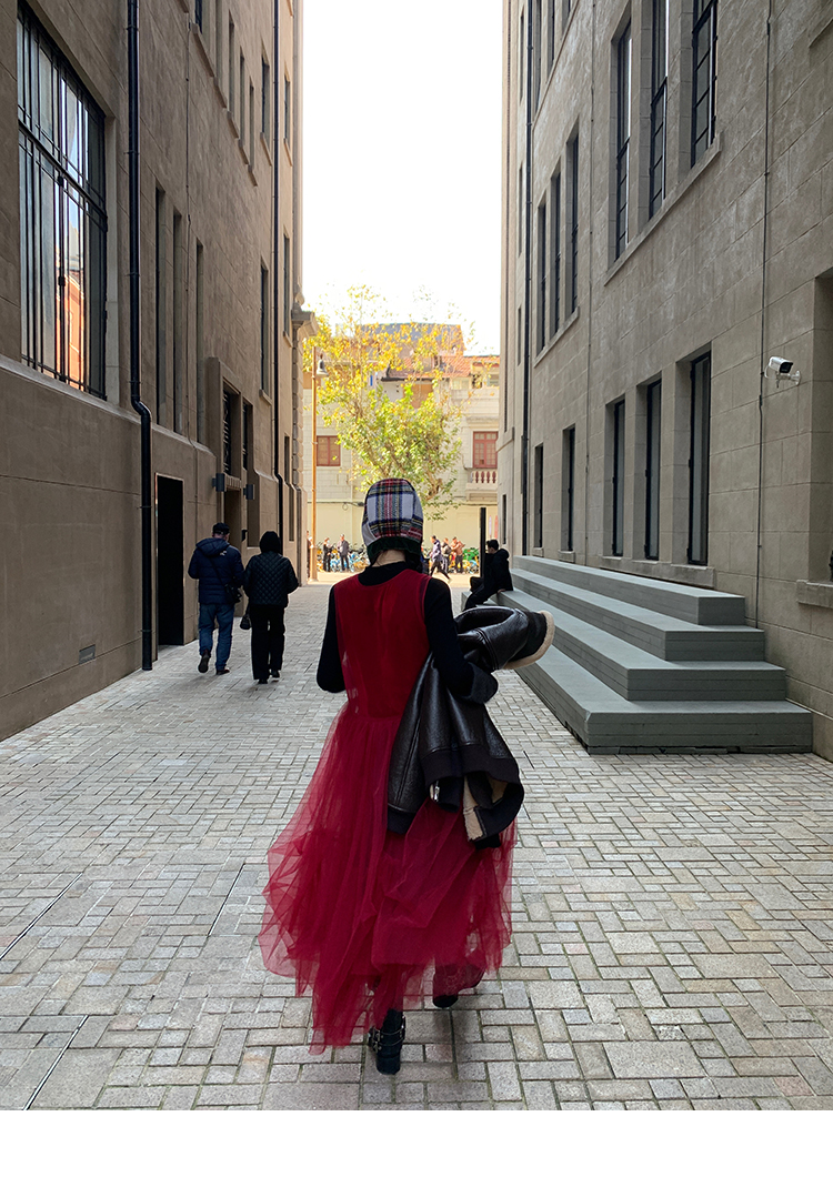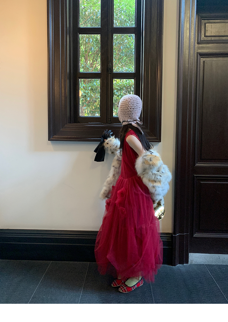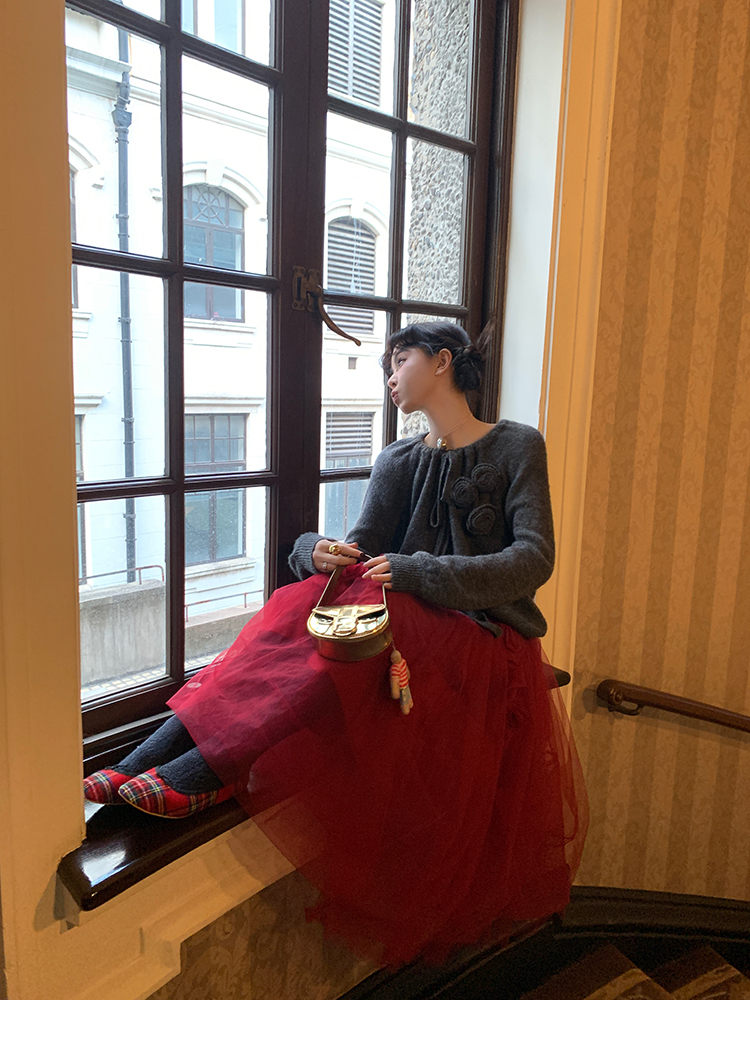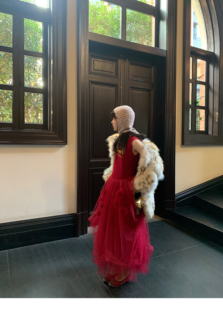 LRIB Red Flower Complex Layered Mesh Velvet Skirt / Dress