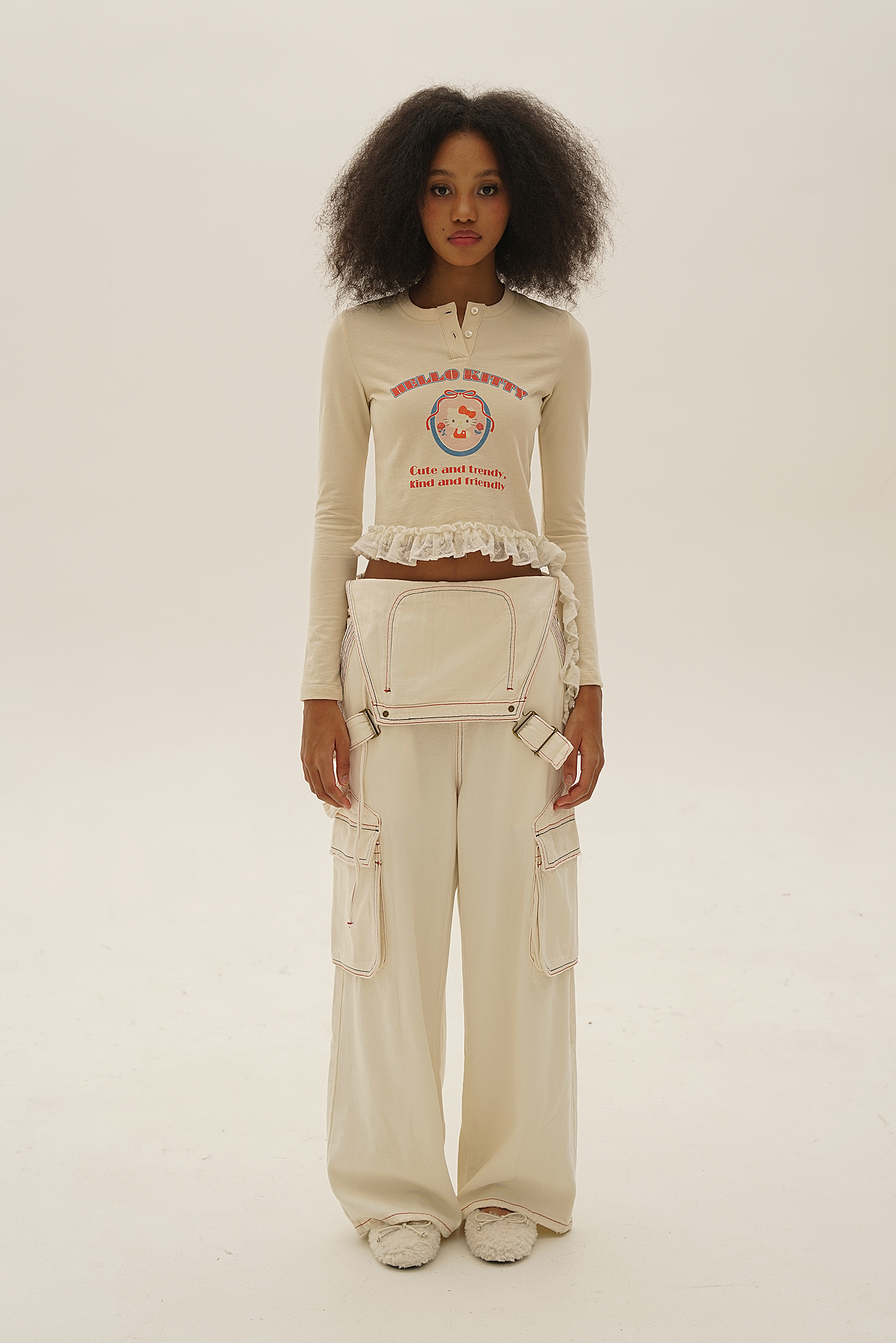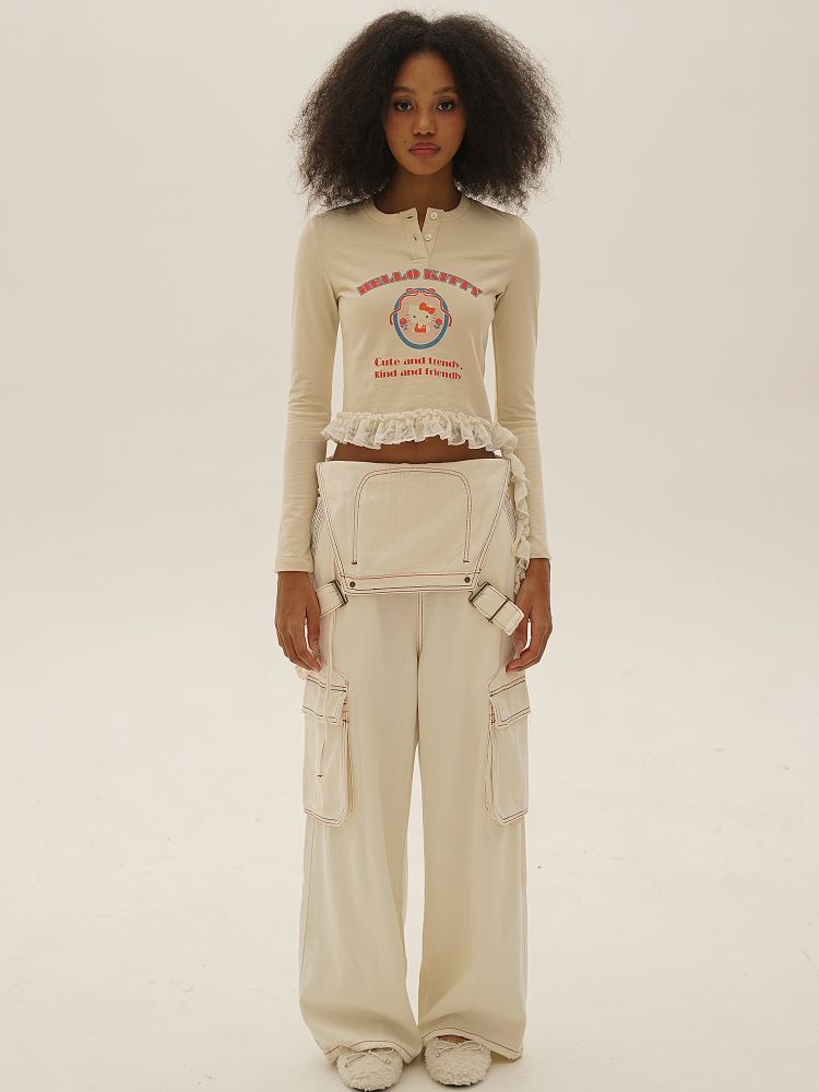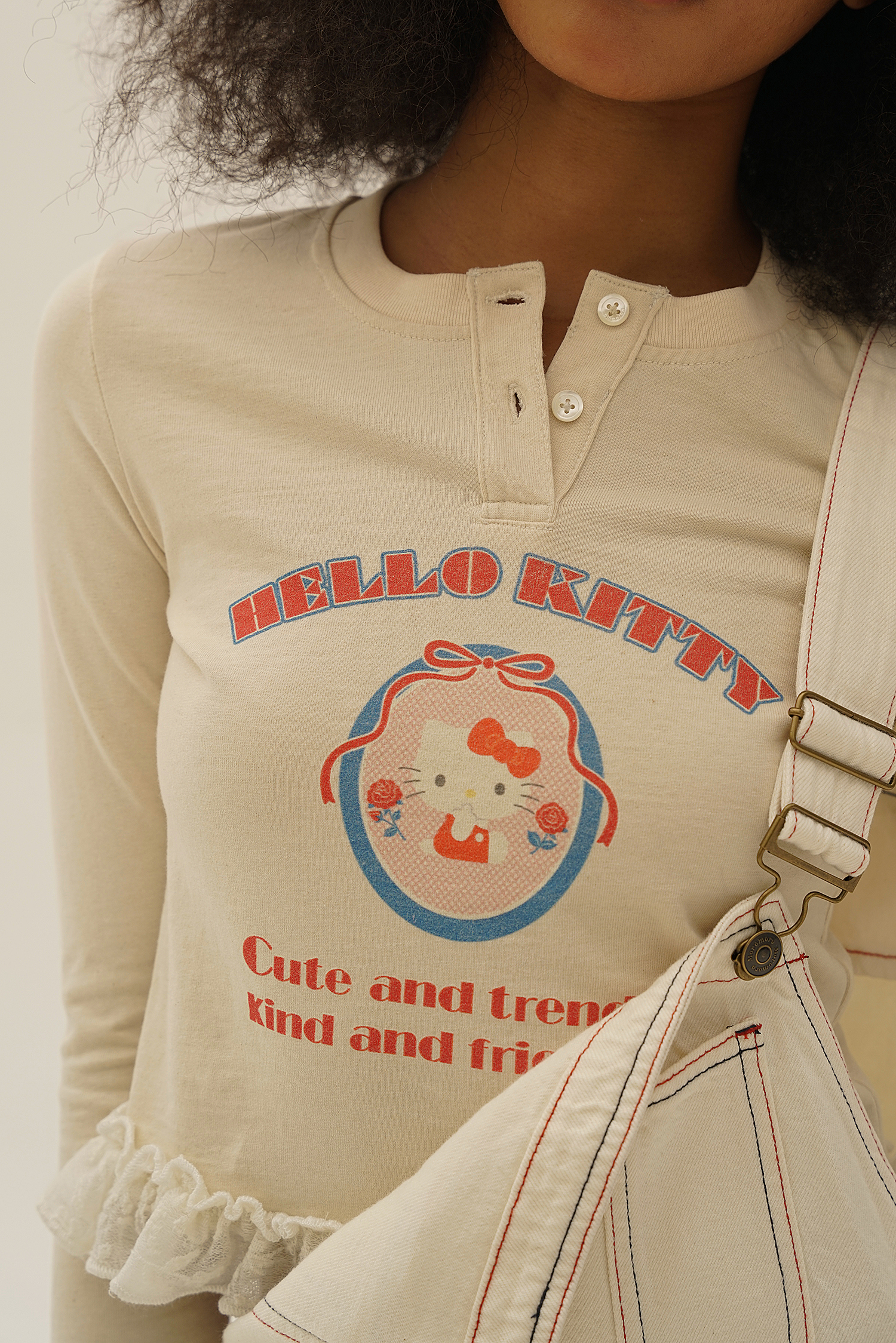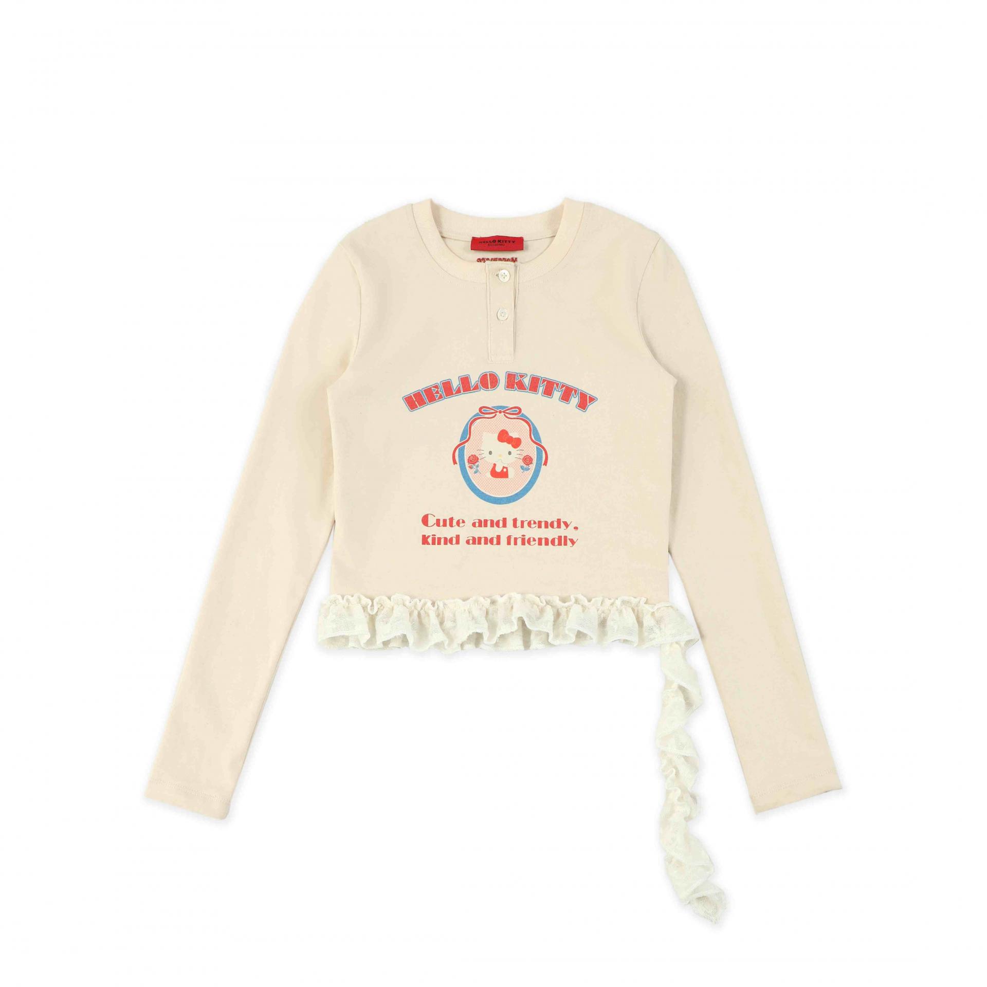 Moromoro Hellokitty Lace rose print half open long sleeve T-shirt