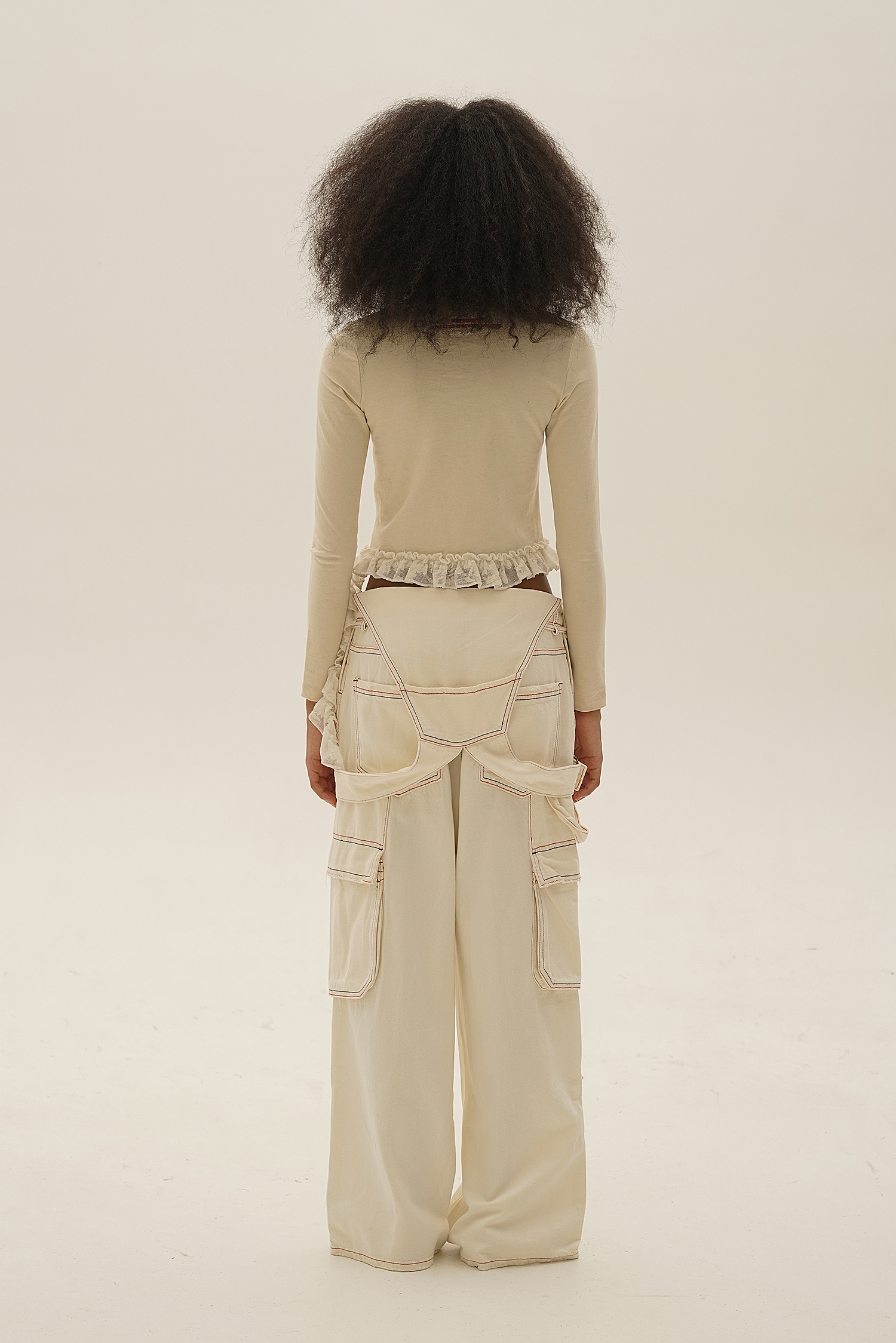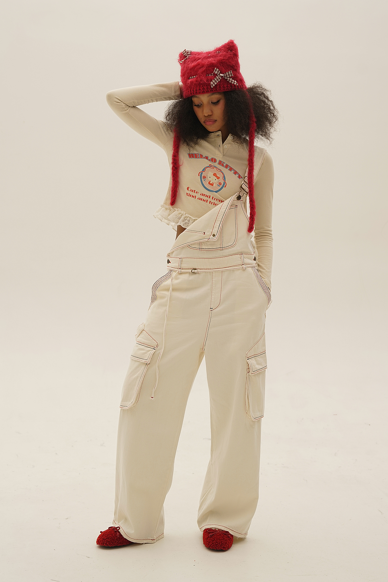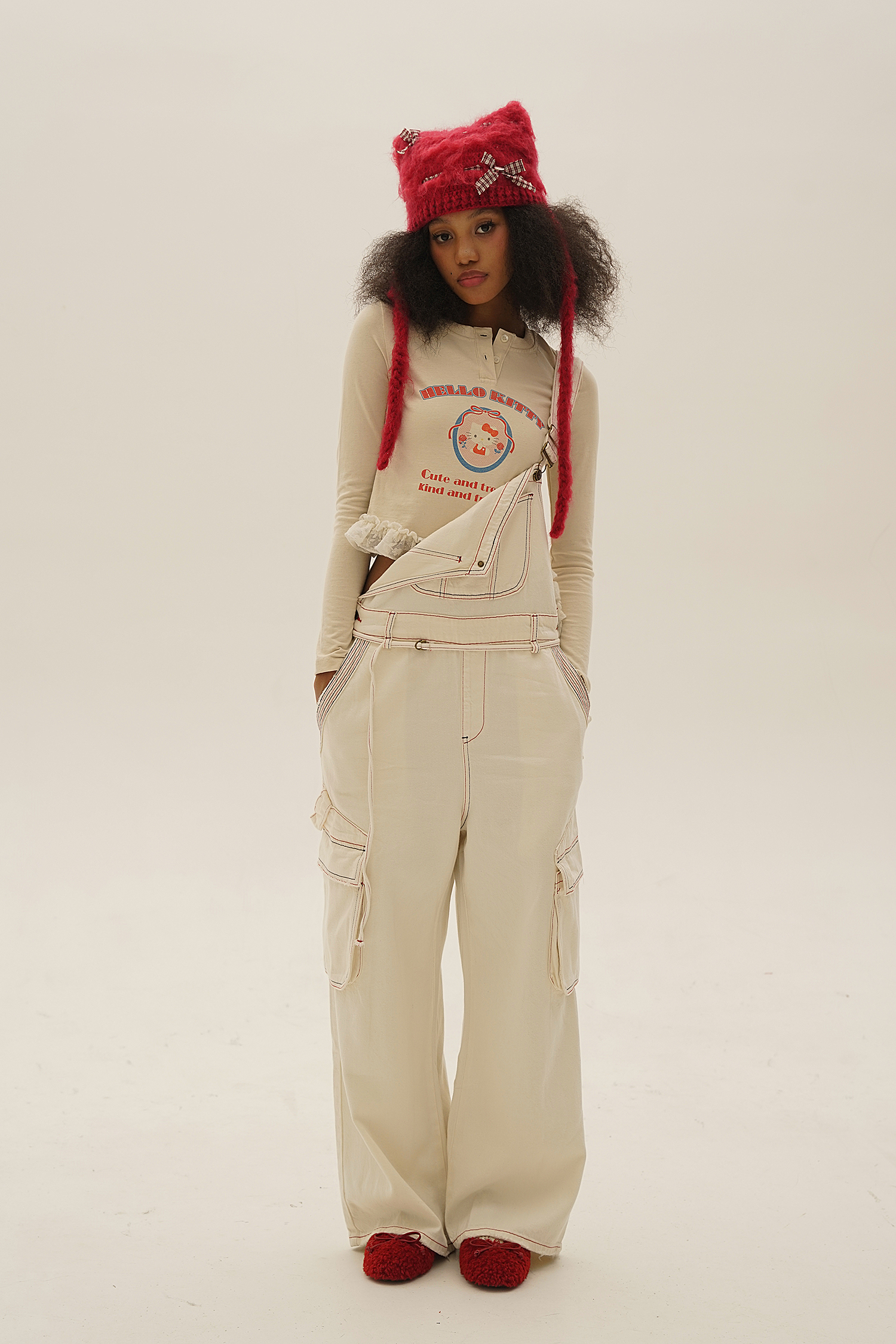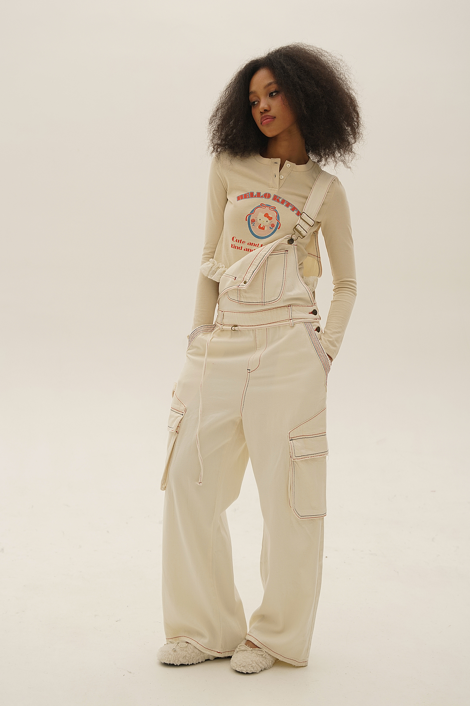 Moromoro Hellokitty Lace rose print half open long sleeve T-shirt