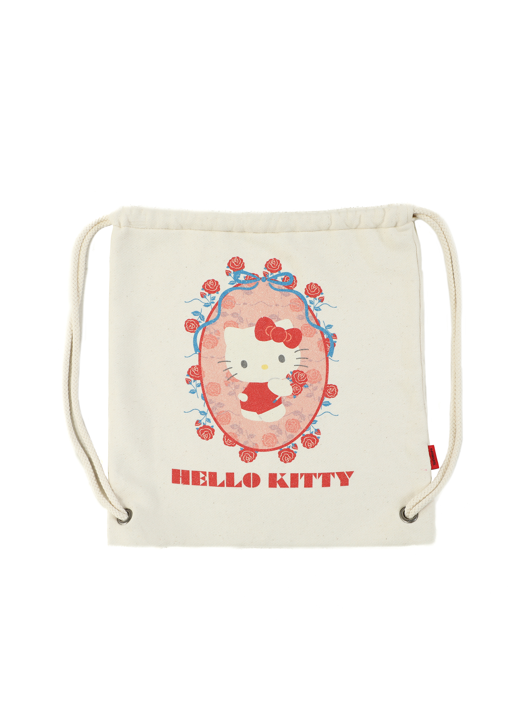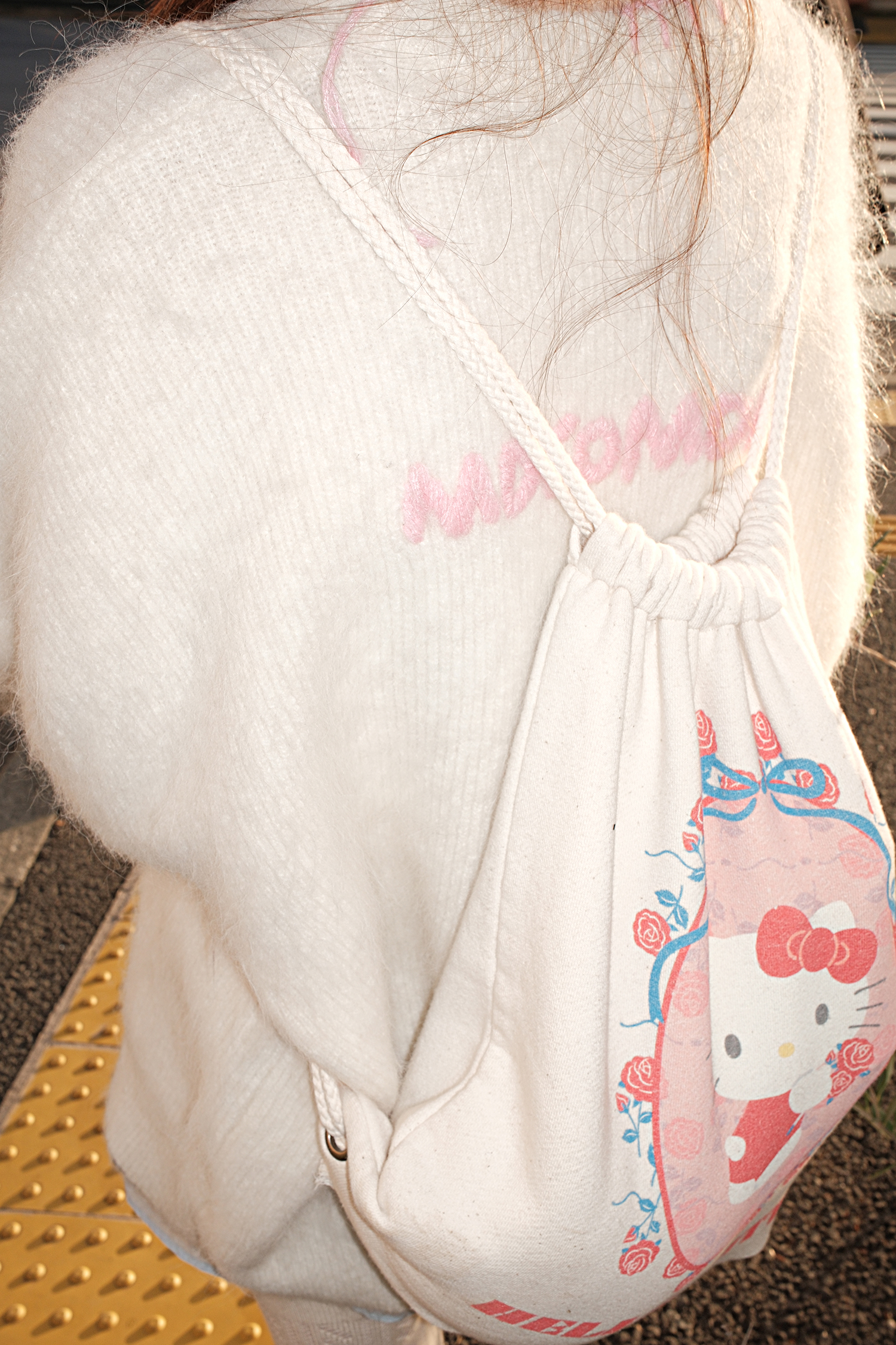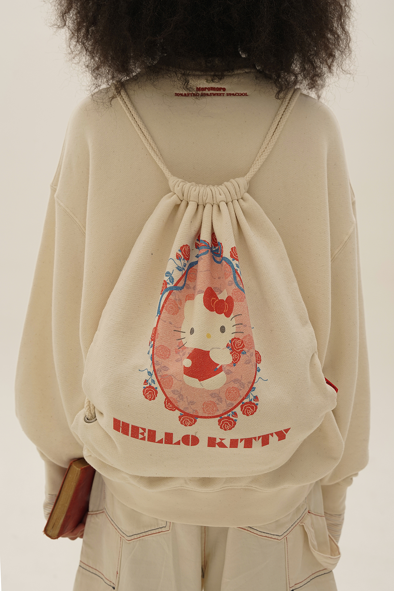Moromoro Hellokitty Rose printed woven cotton rope sweatshirt backpack