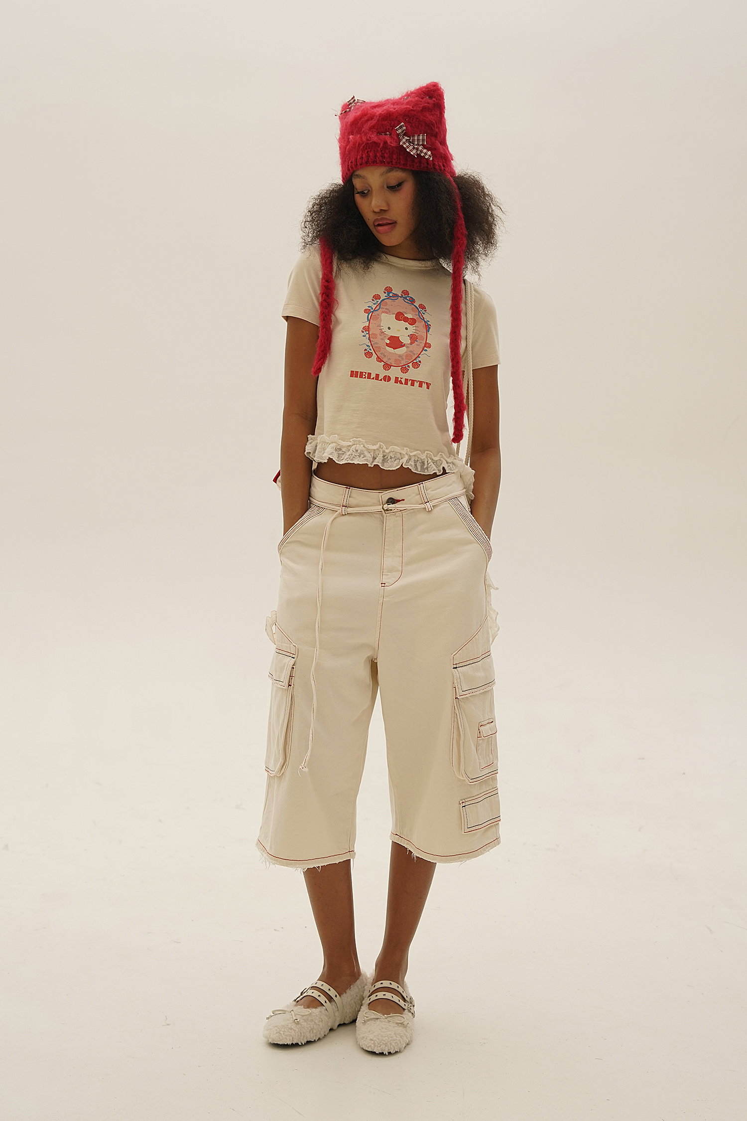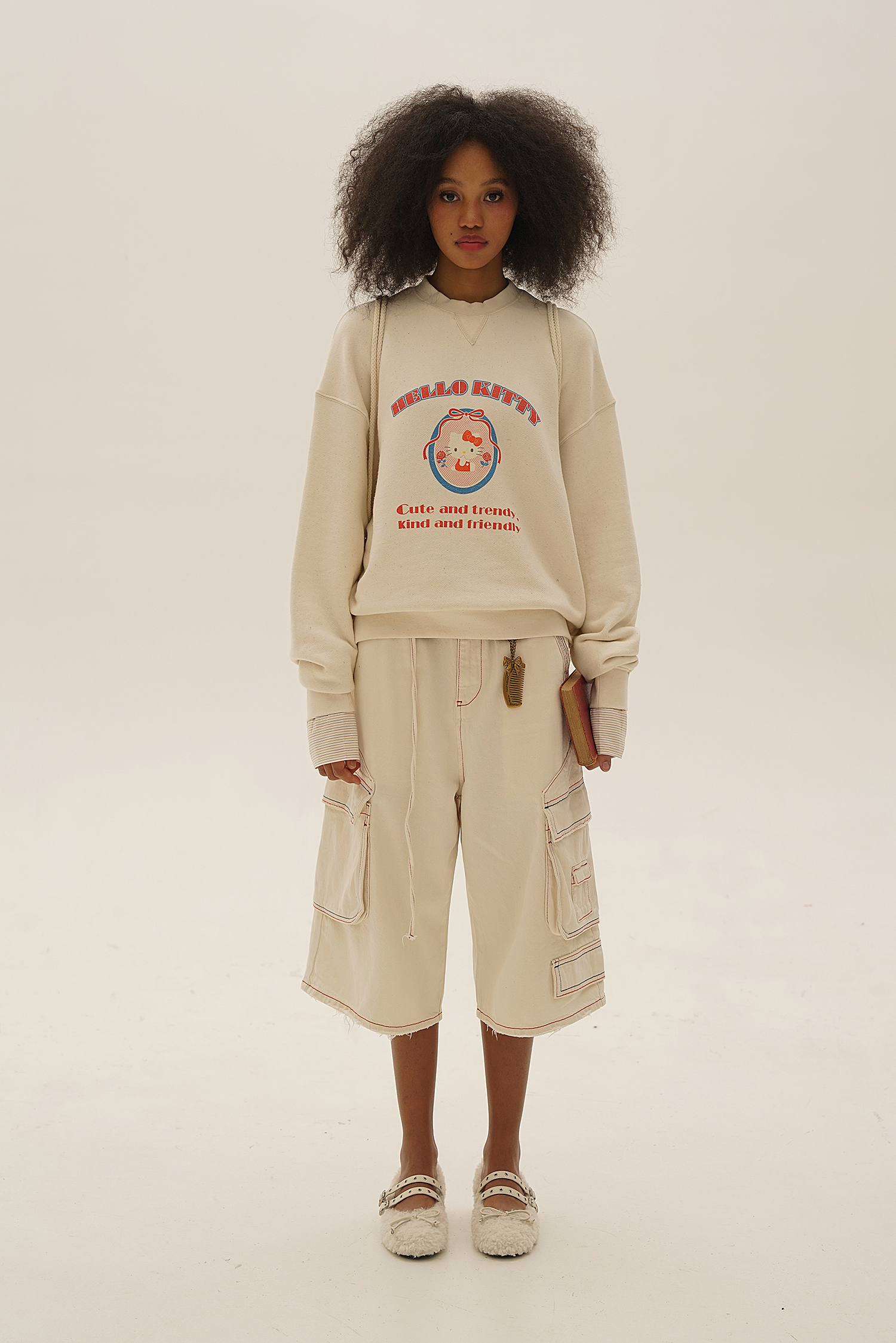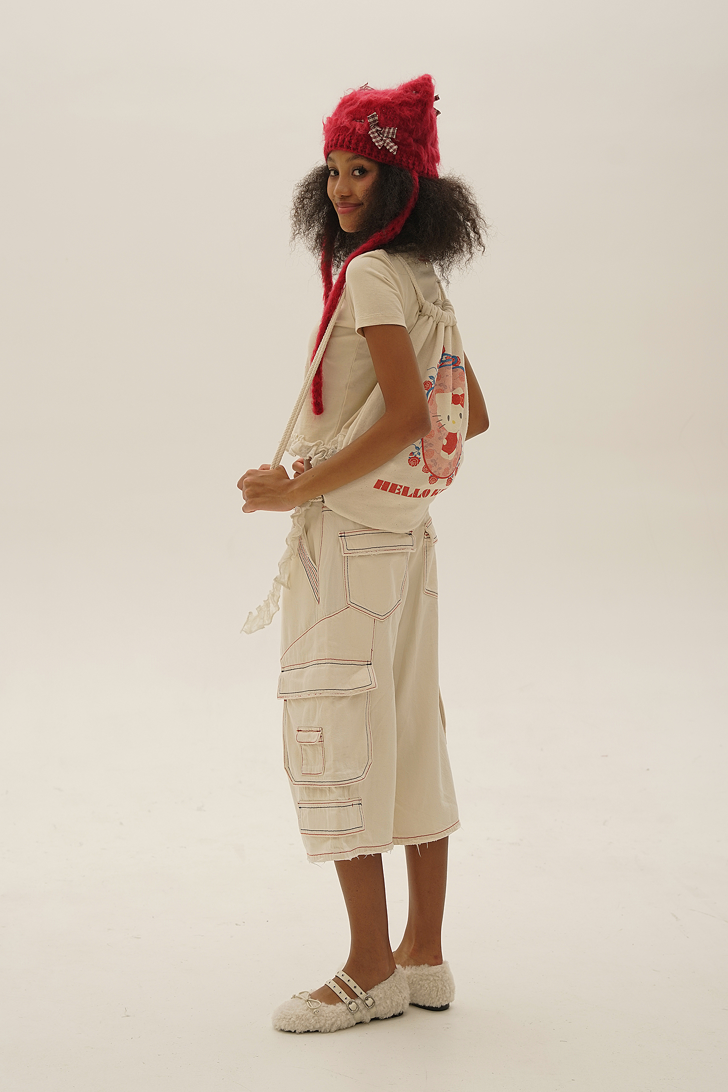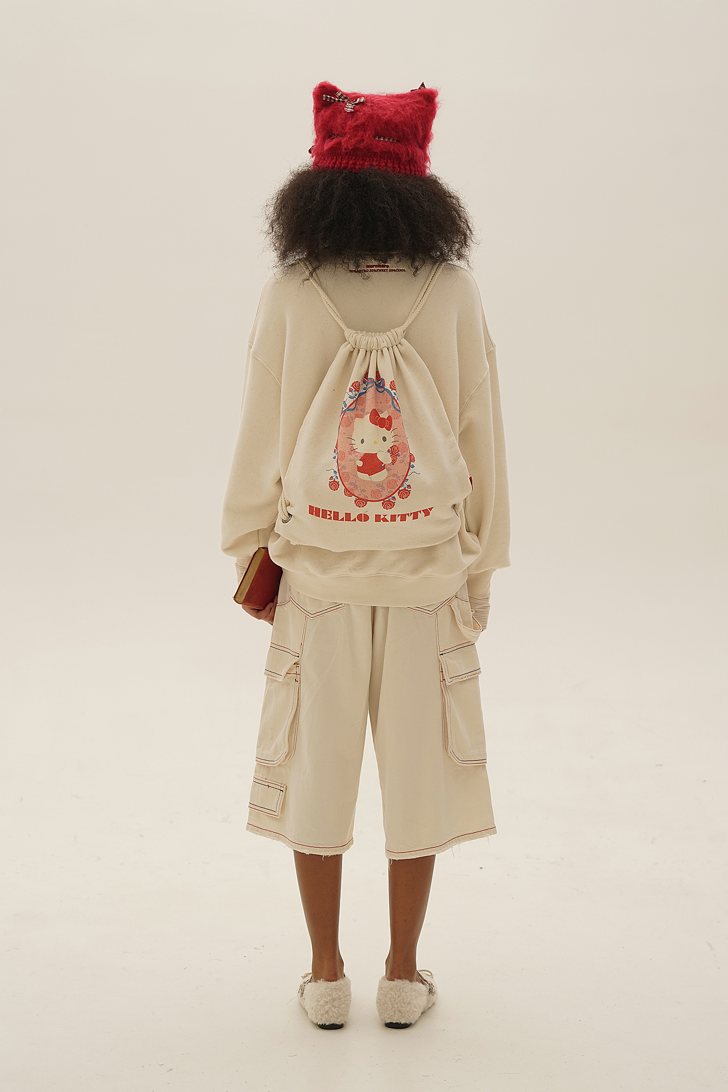 Moromoro Hellokitty Rose printed woven cotton rope sweatshirt backpack