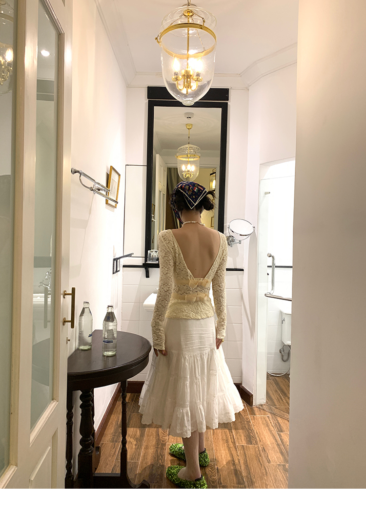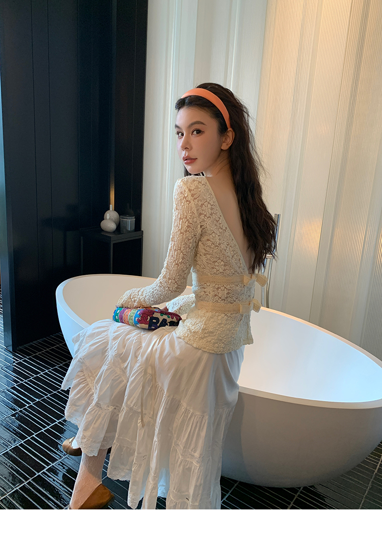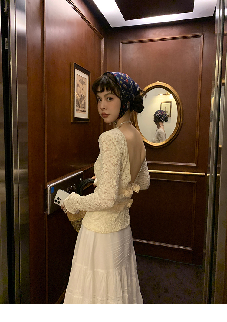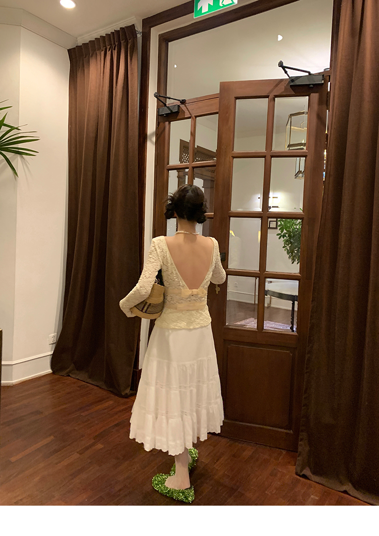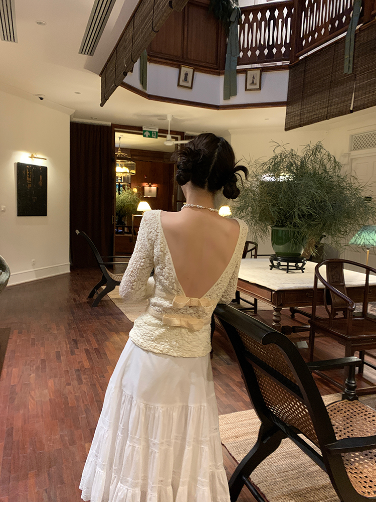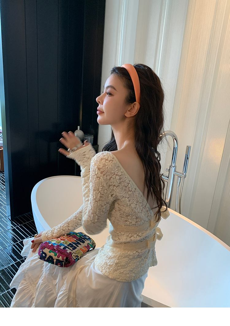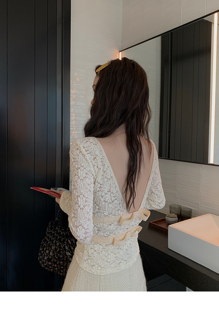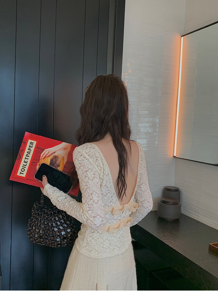 LRIB Lace Jacquard Ribbon Strap Micro-disclosure Back Top