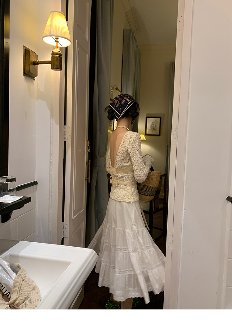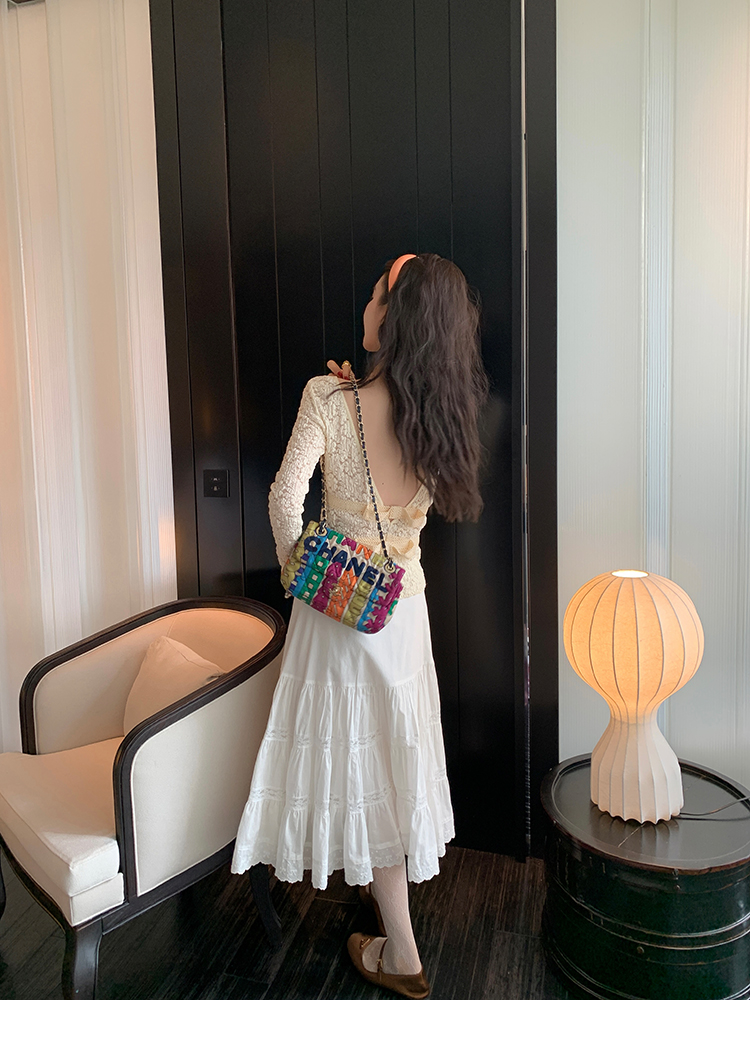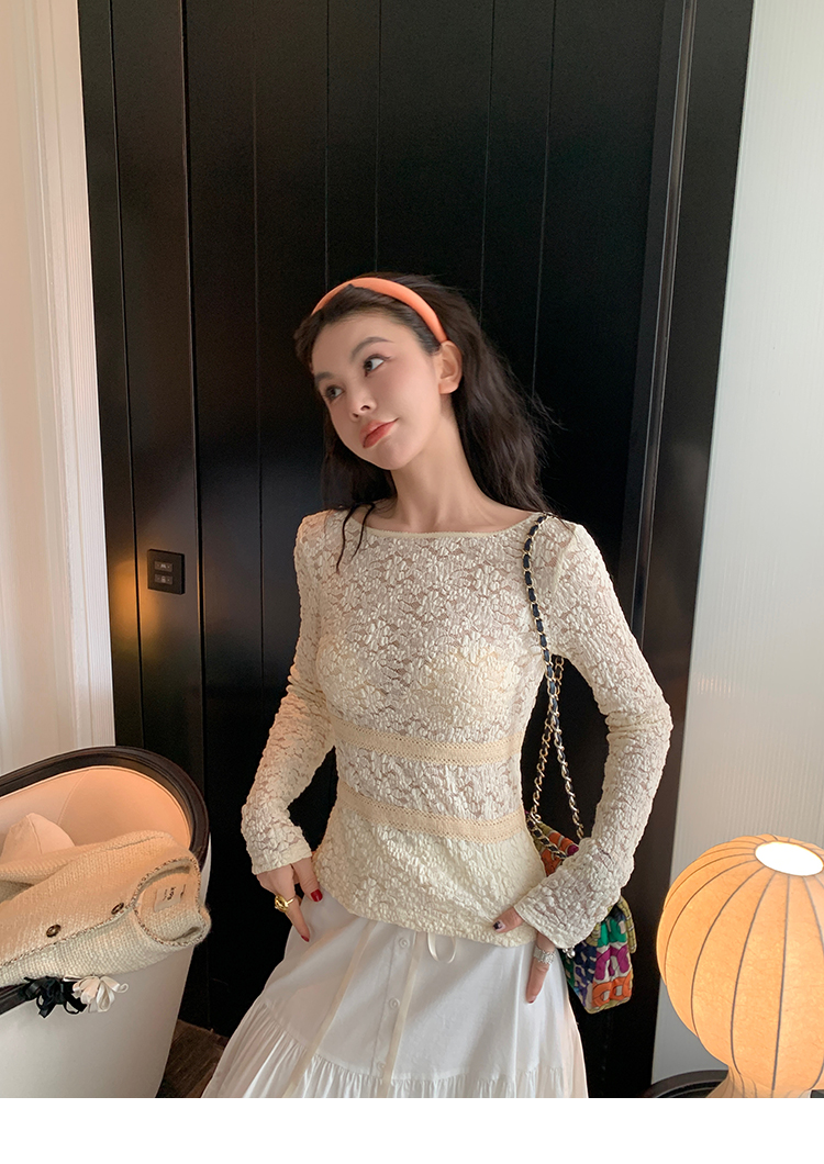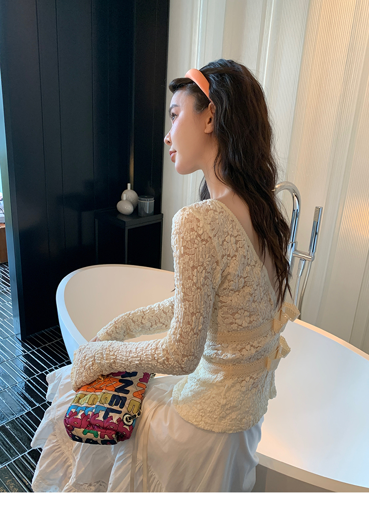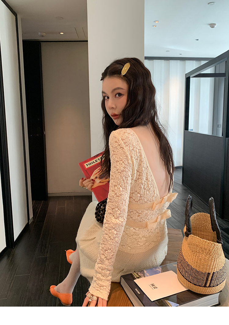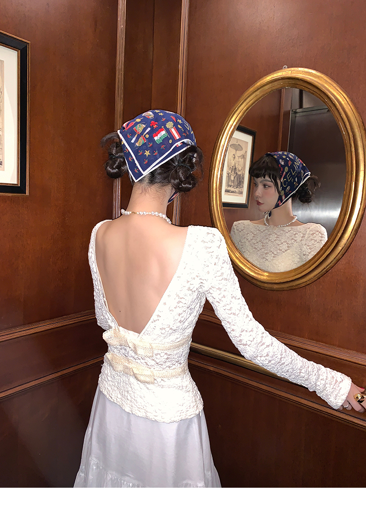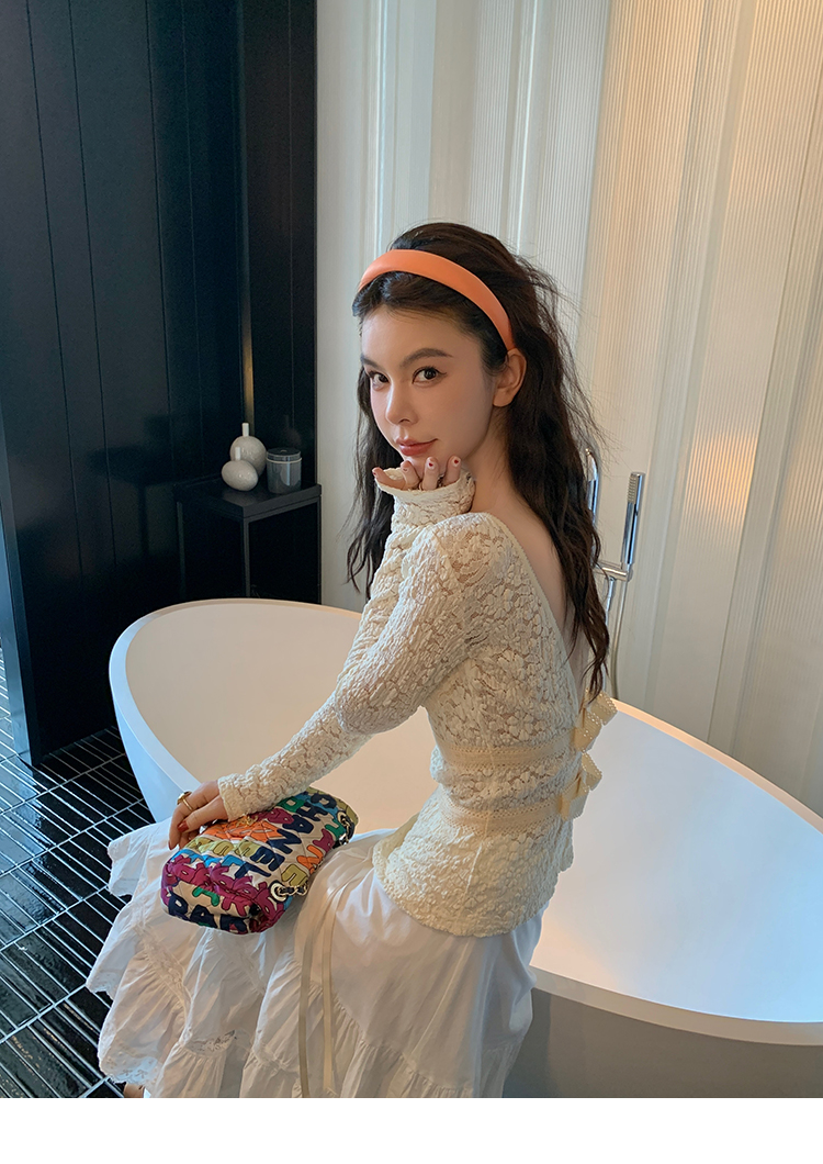 LRIB Lace Jacquard Ribbon Strap Micro-disclosure Back Top