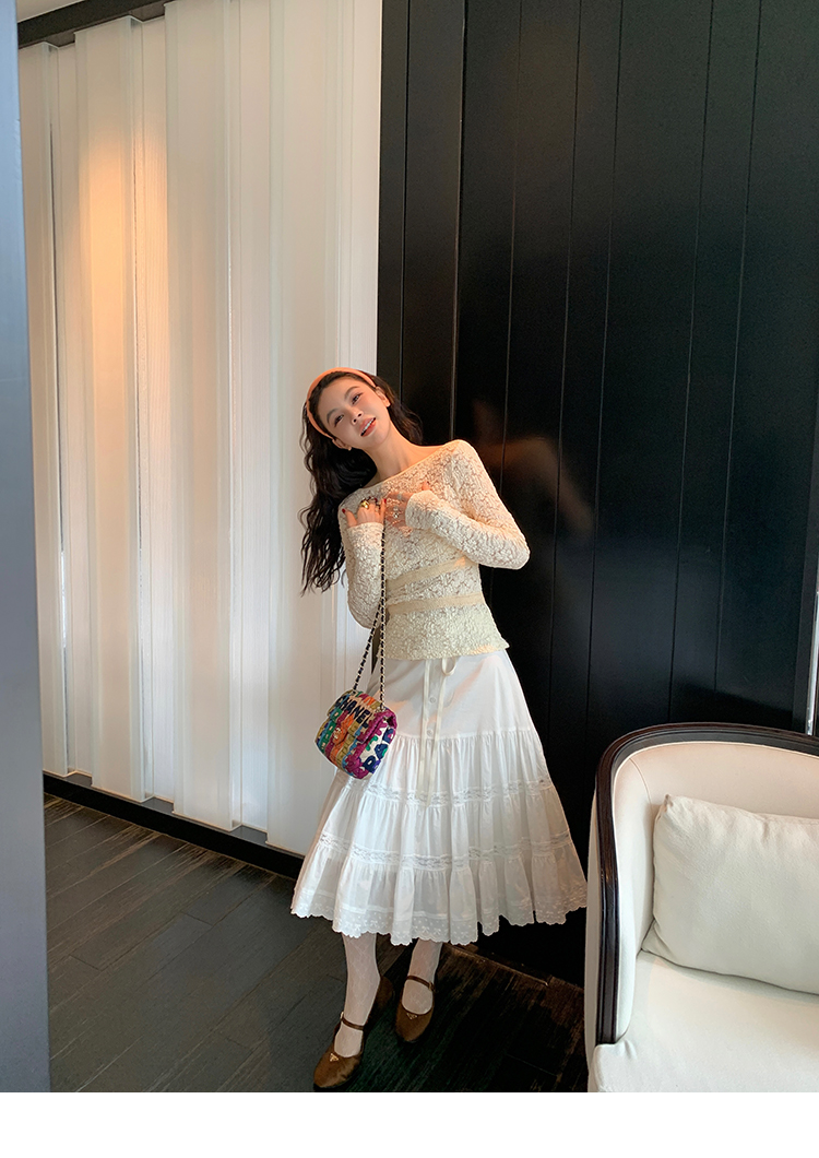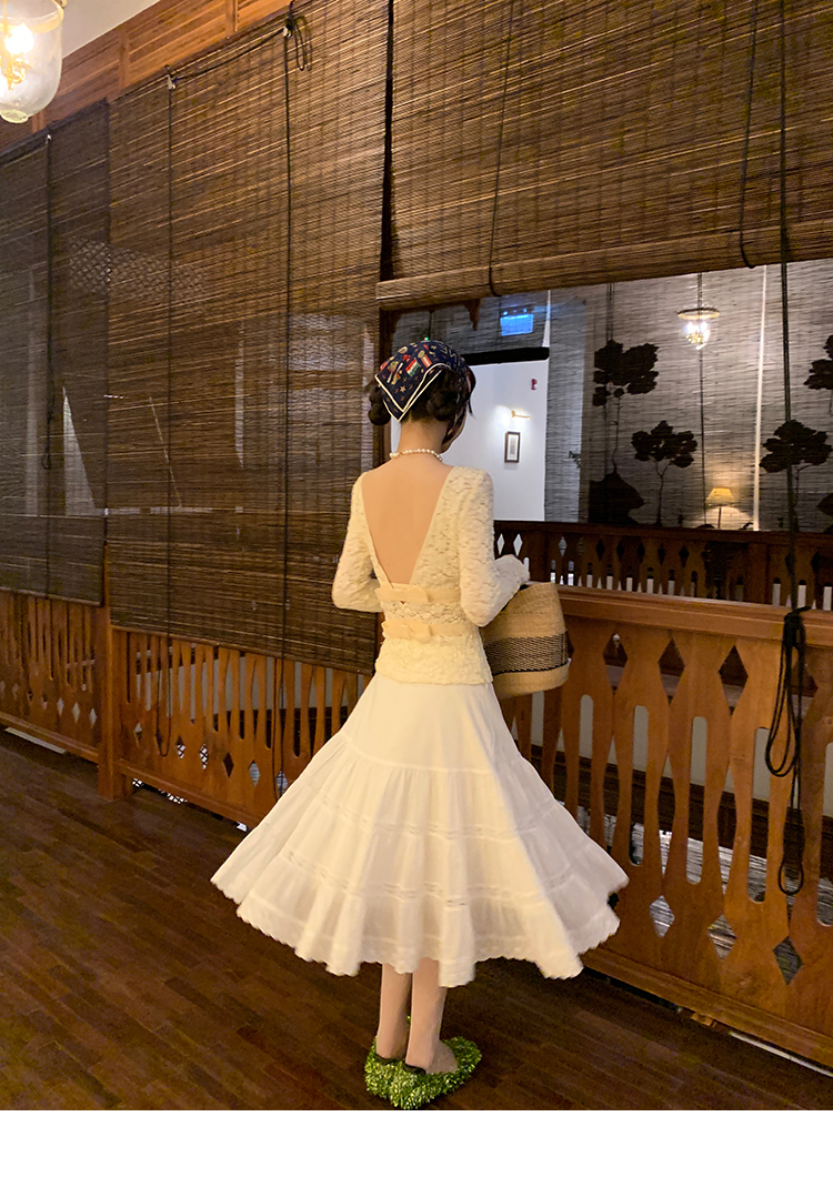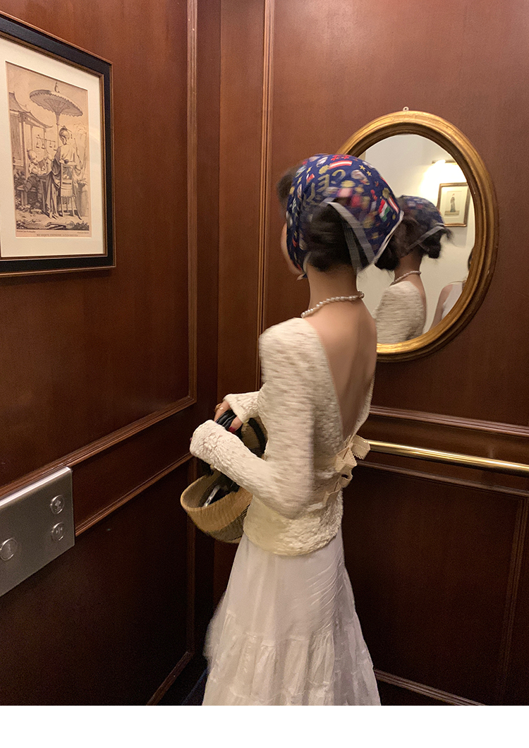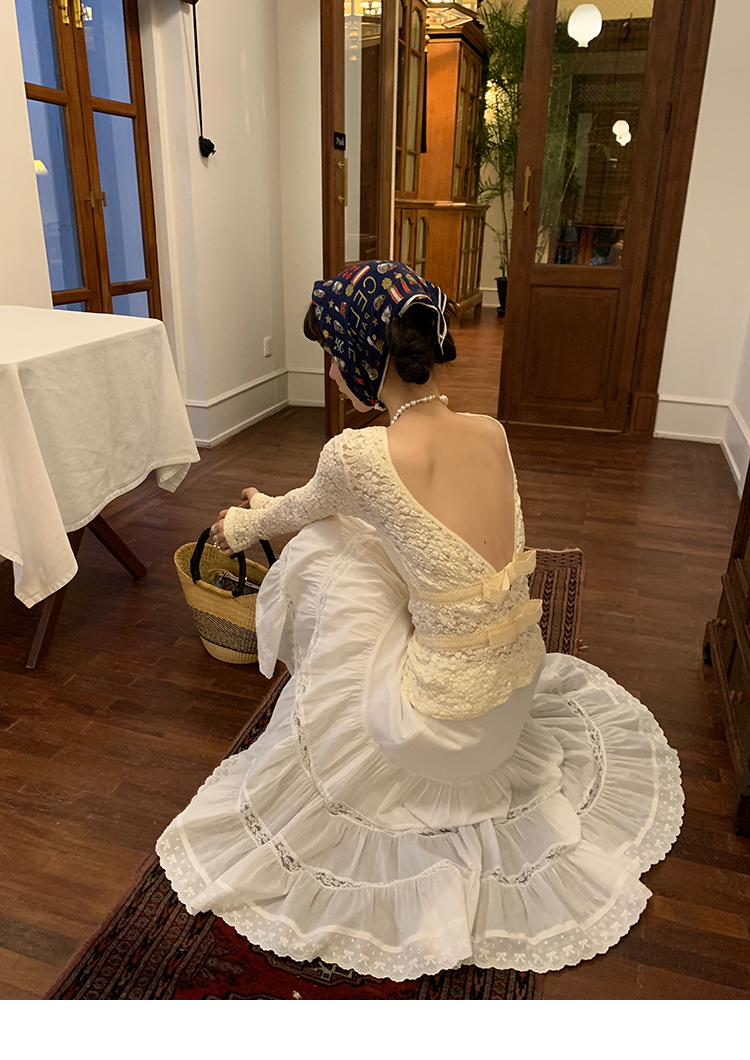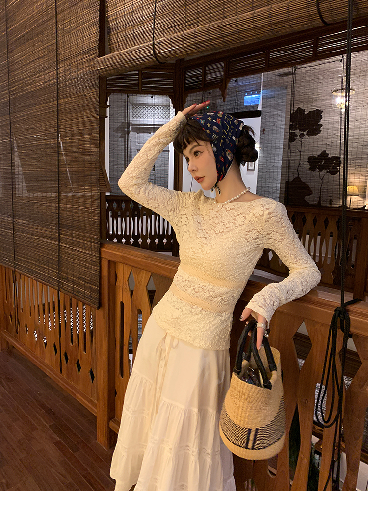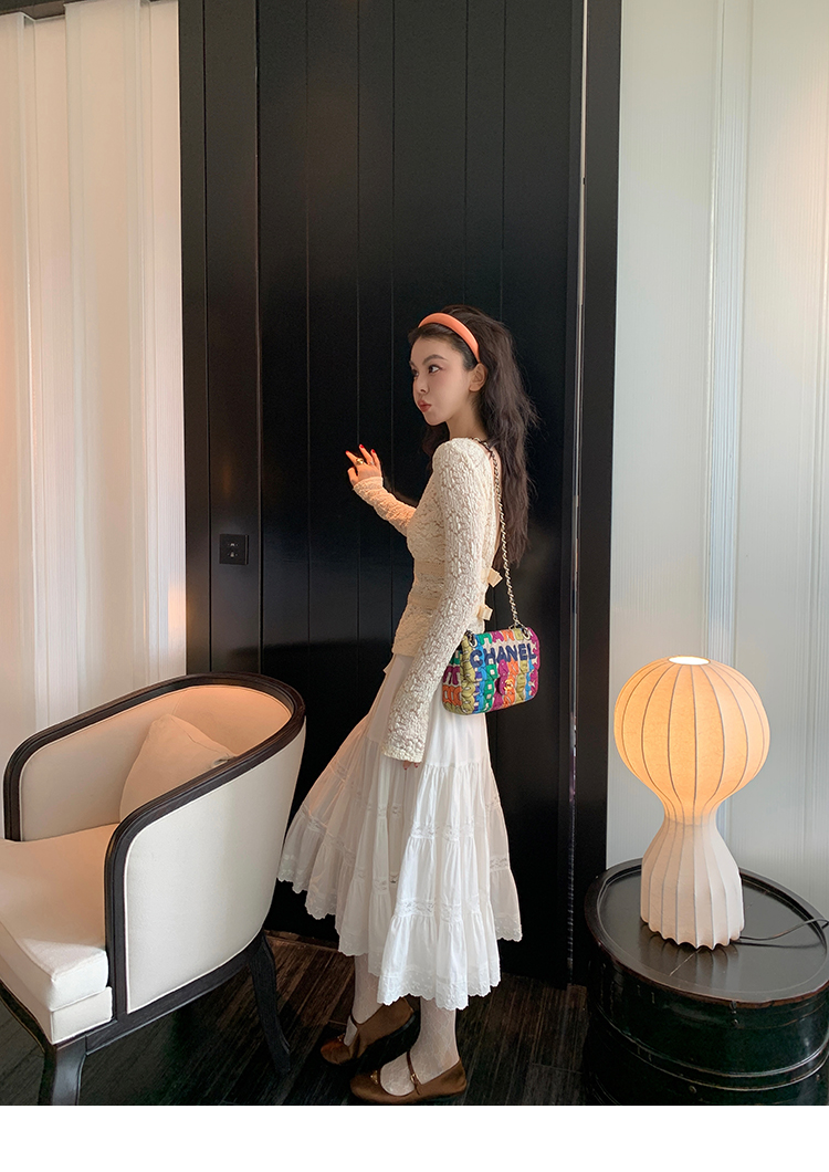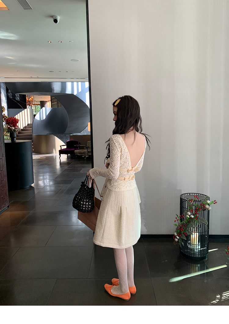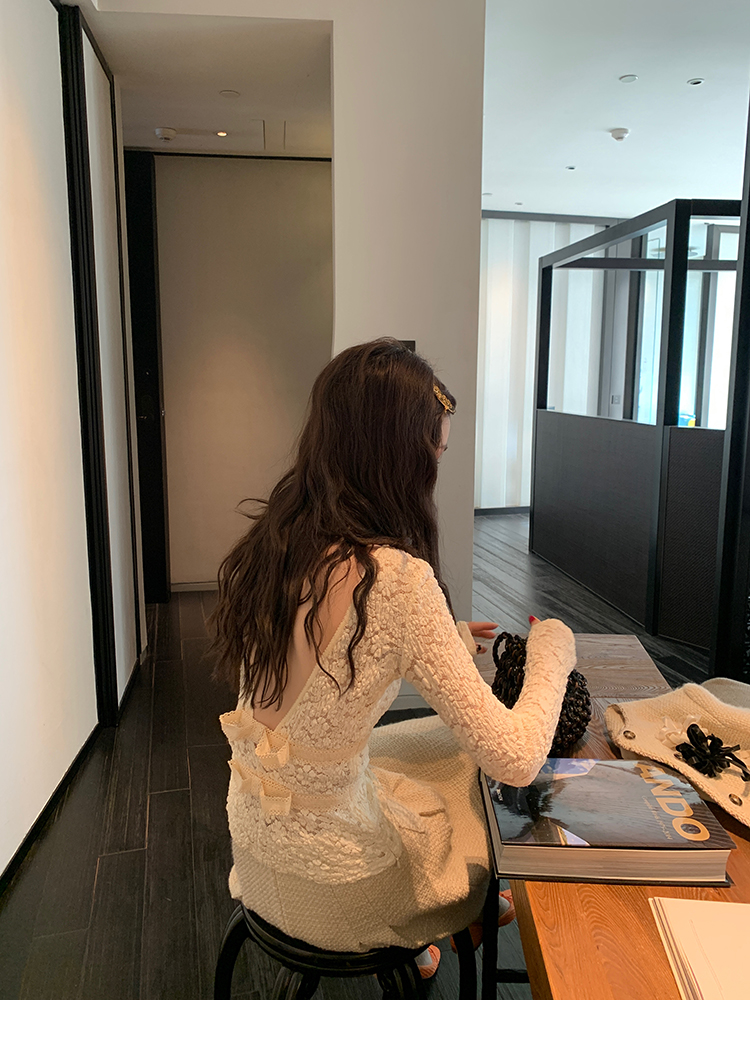 LRIB Lace Jacquard Ribbon Strap Micro-disclosure Back Top