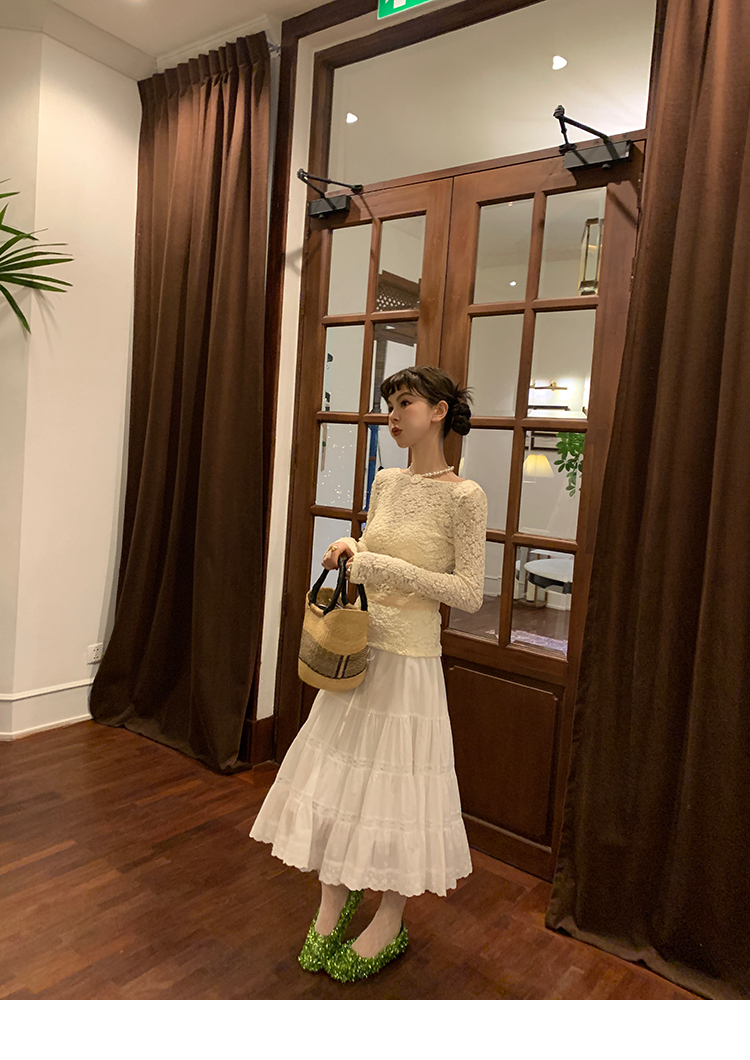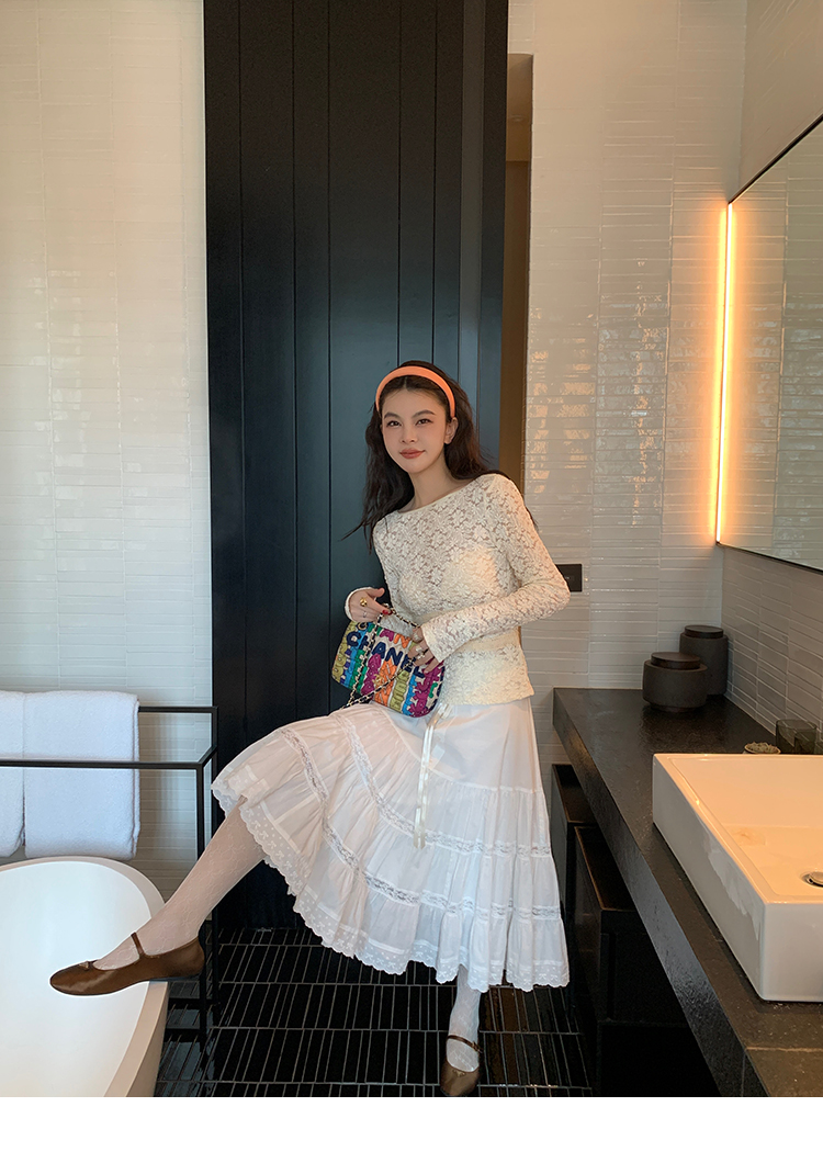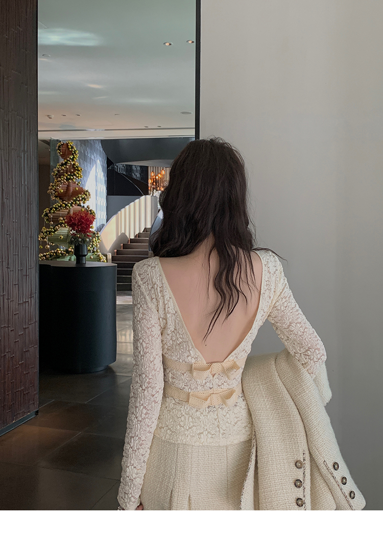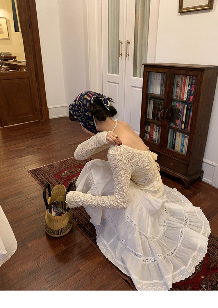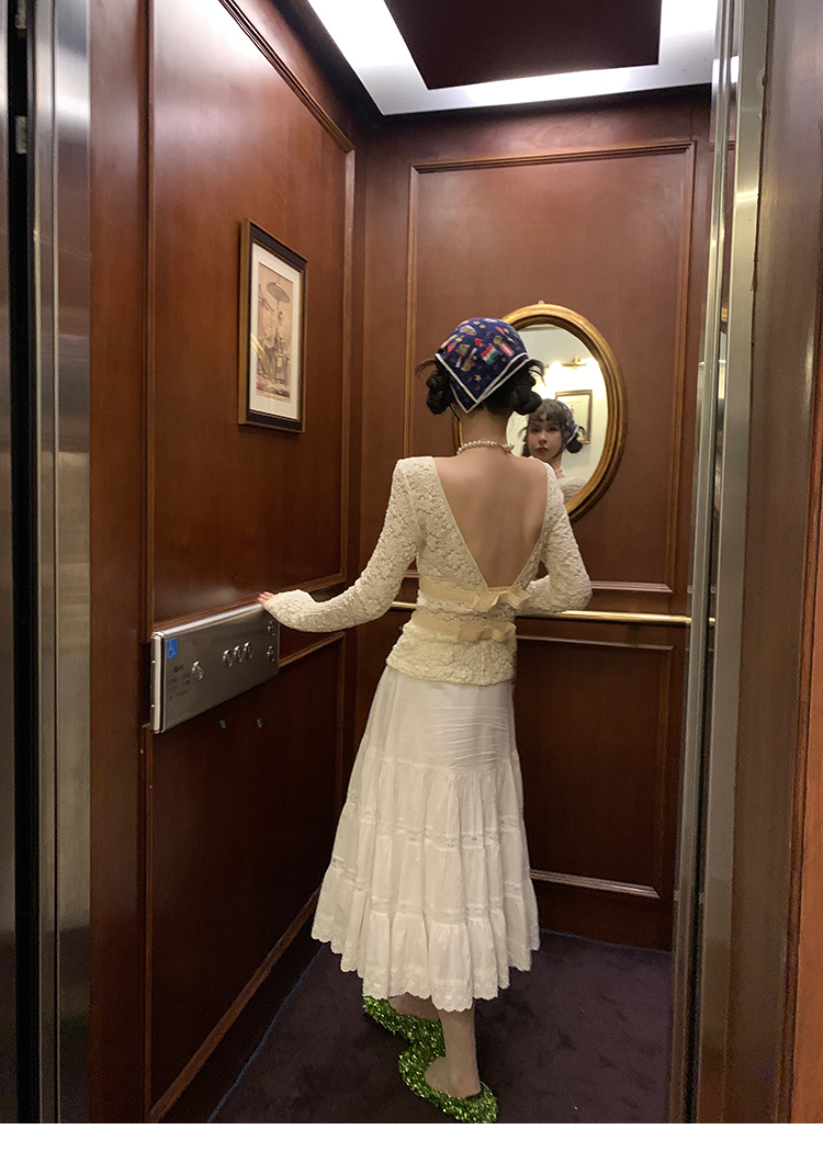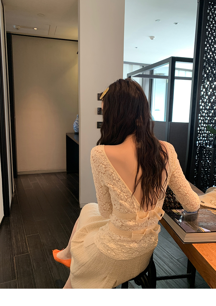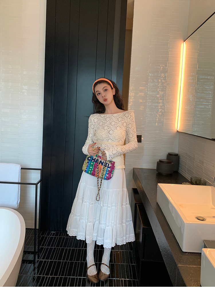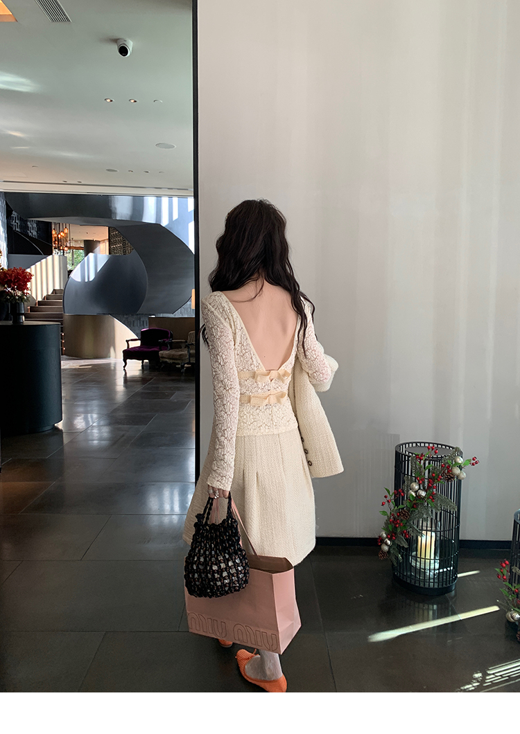 LRIB Lace Jacquard Ribbon Strap Micro-disclosure Back Top