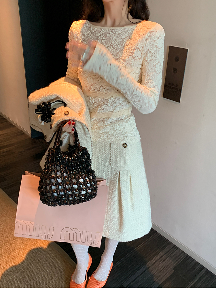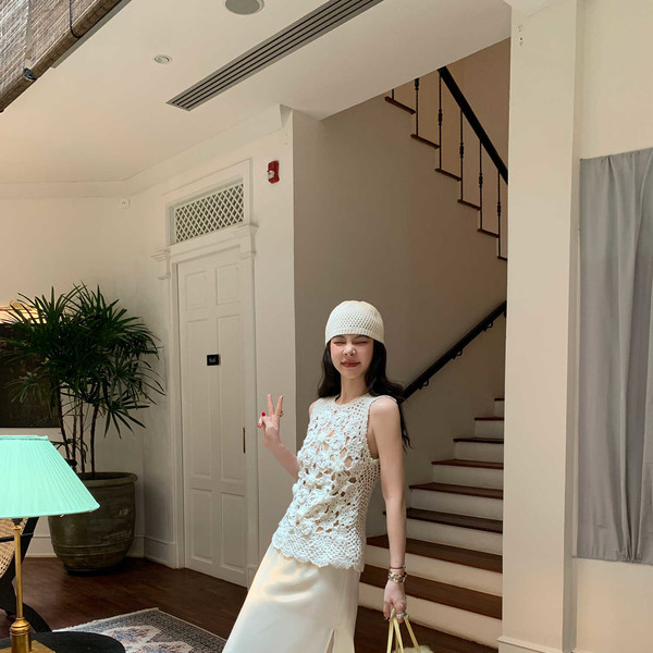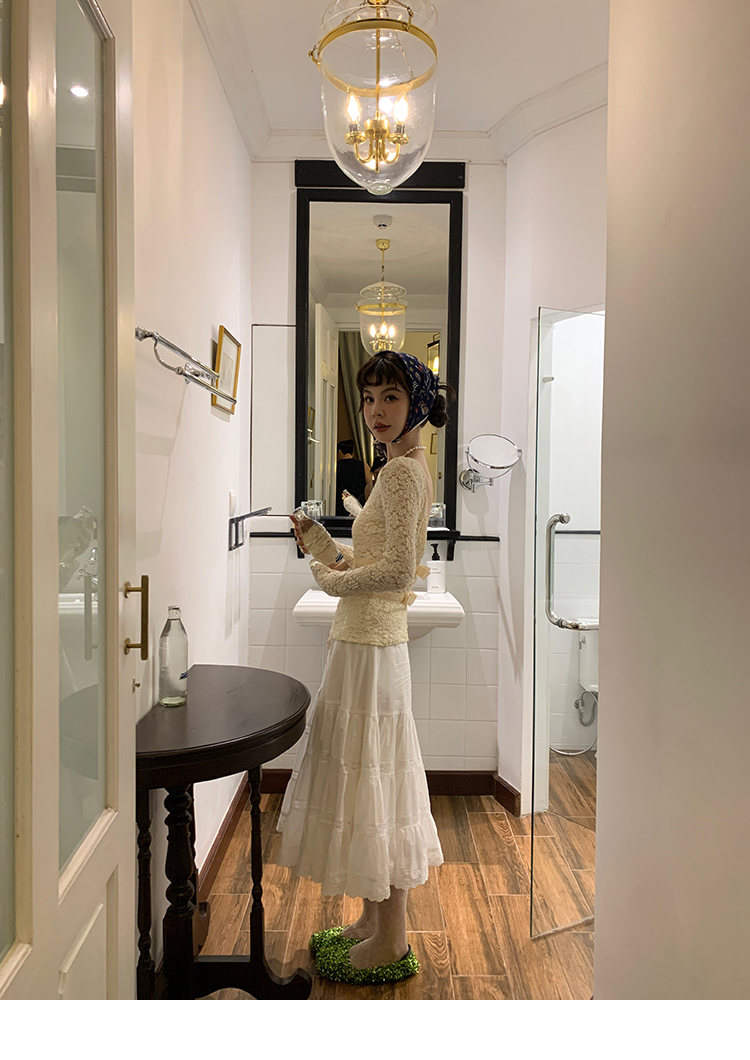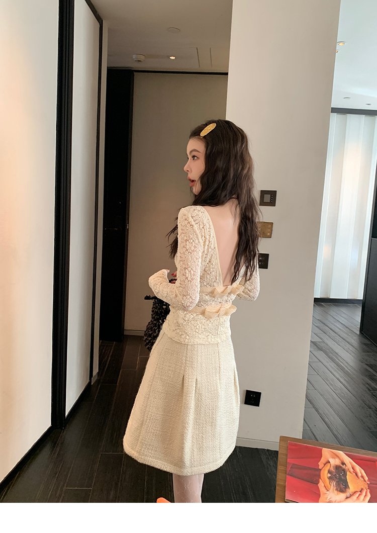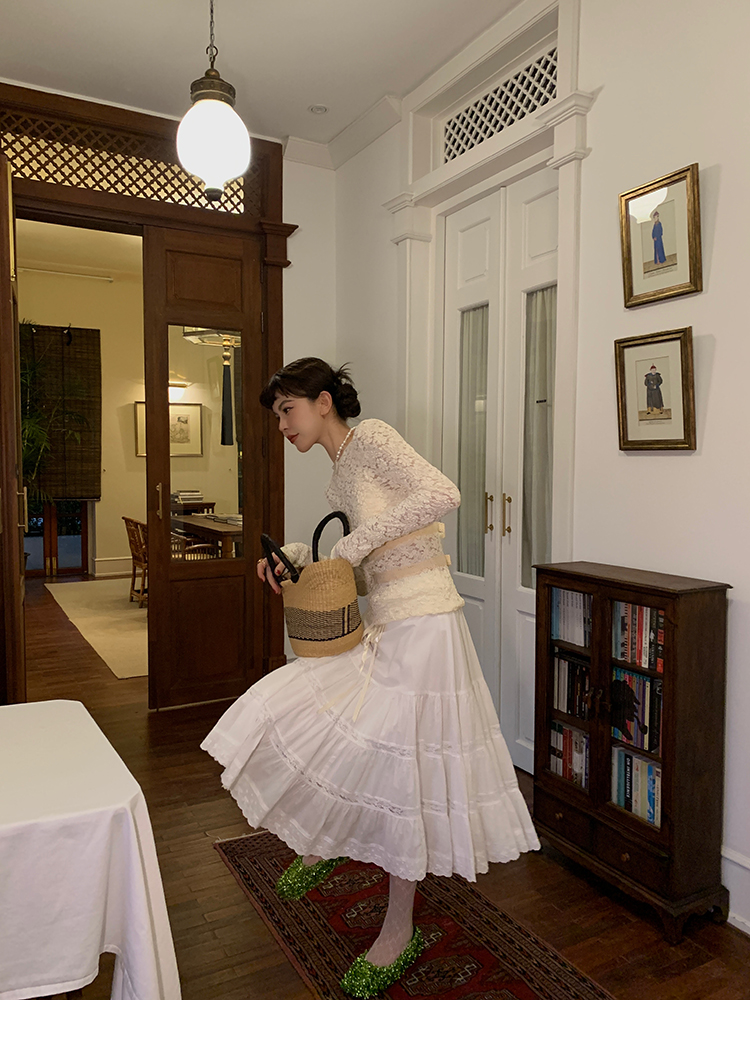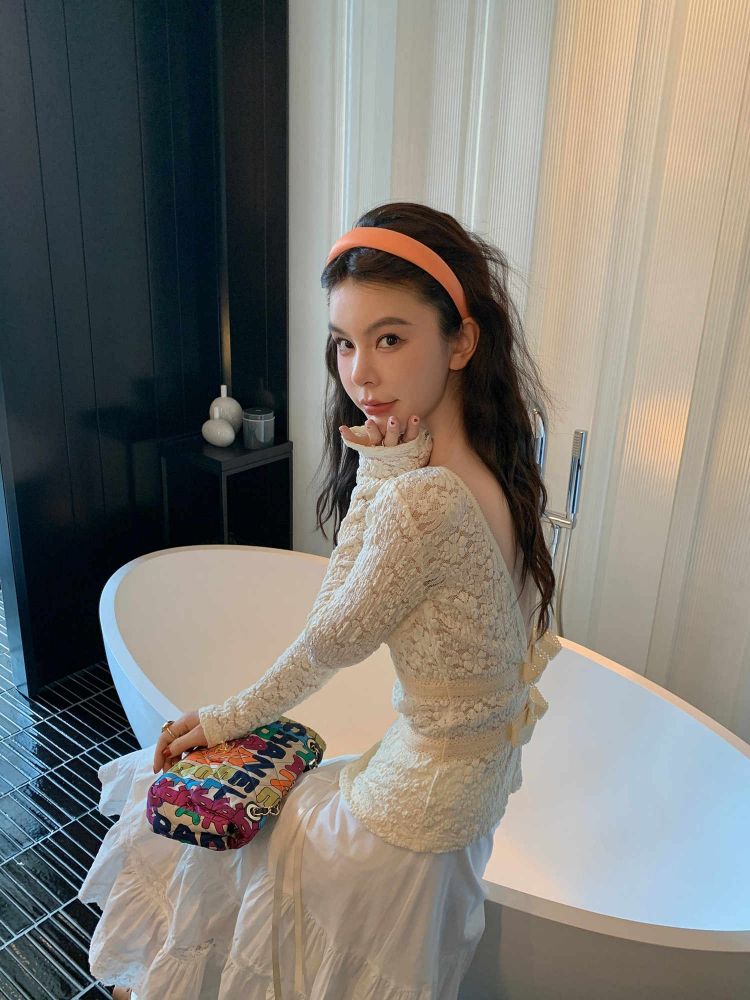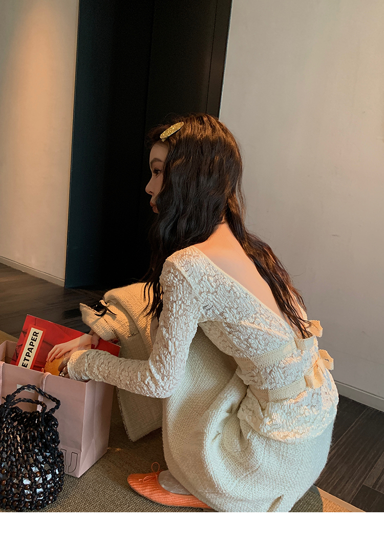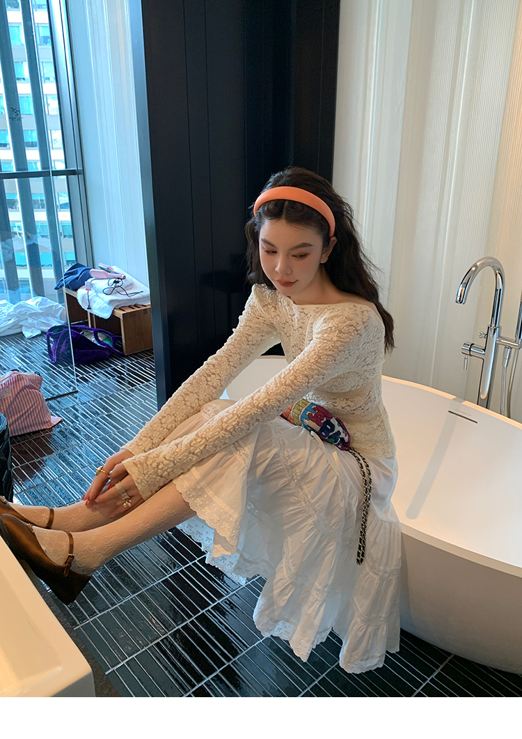 LRIB Lace Jacquard Ribbon Strap Micro-disclosure Back Top