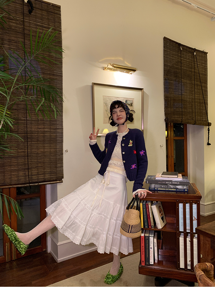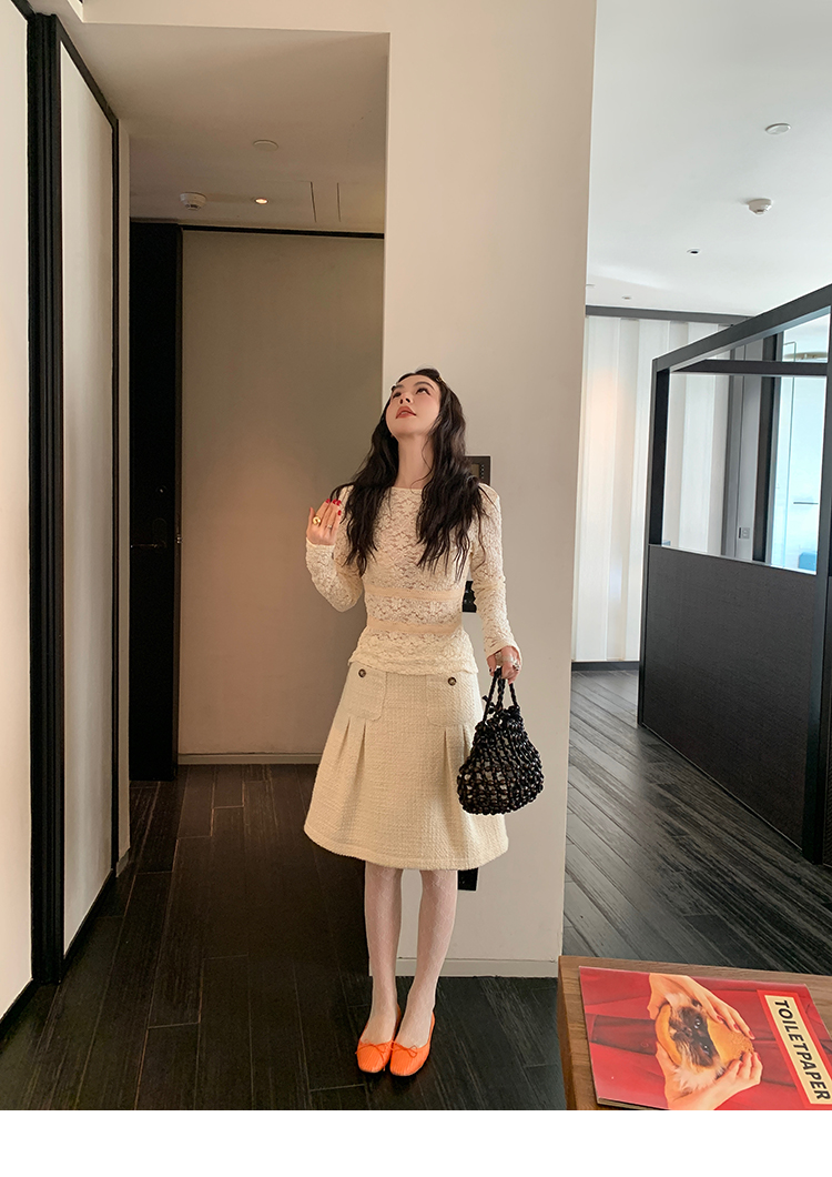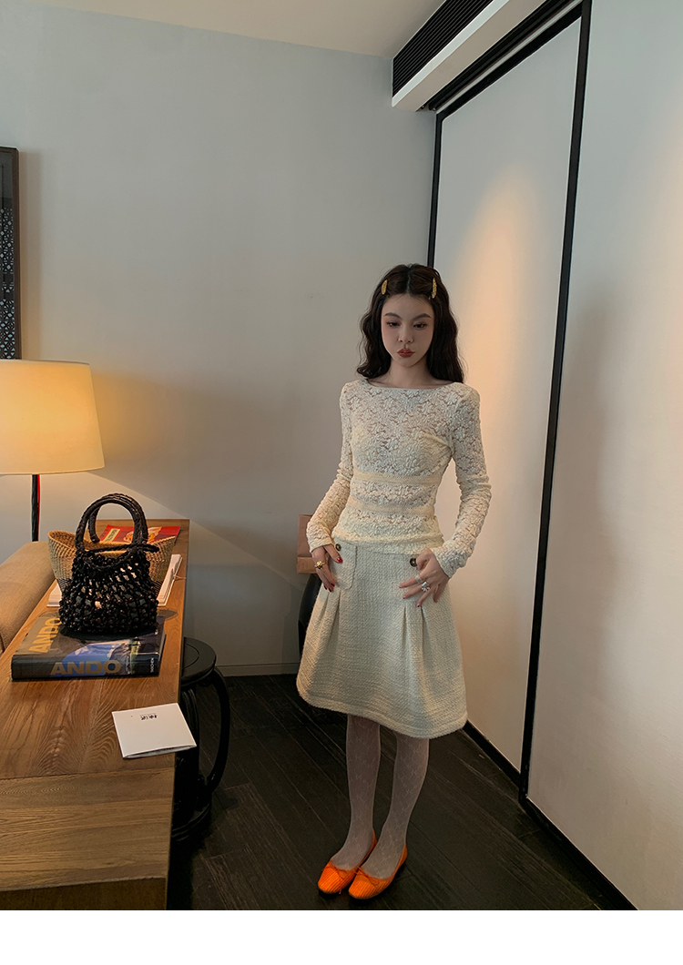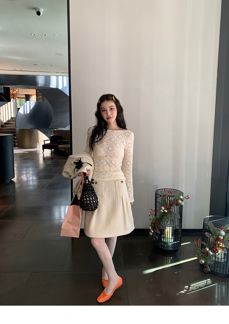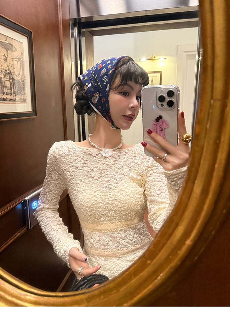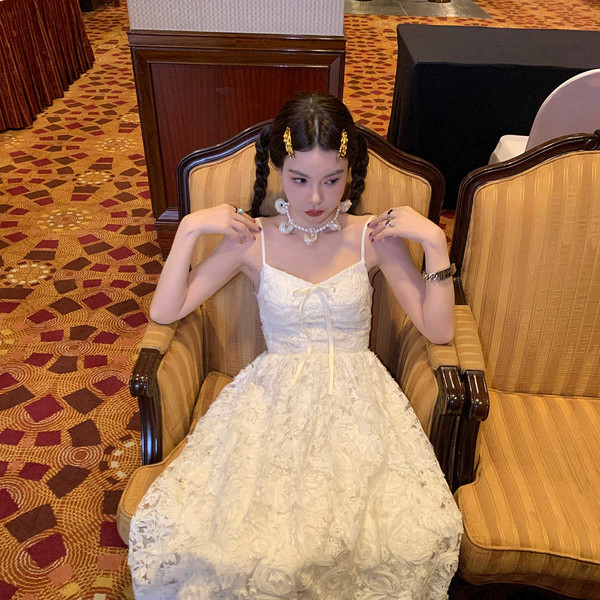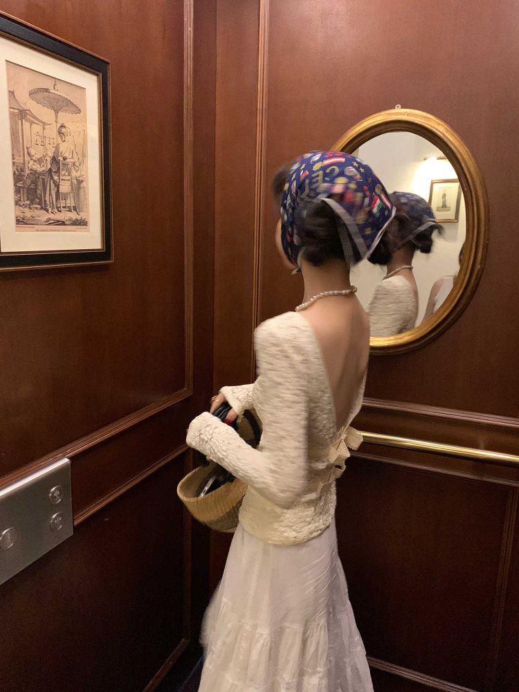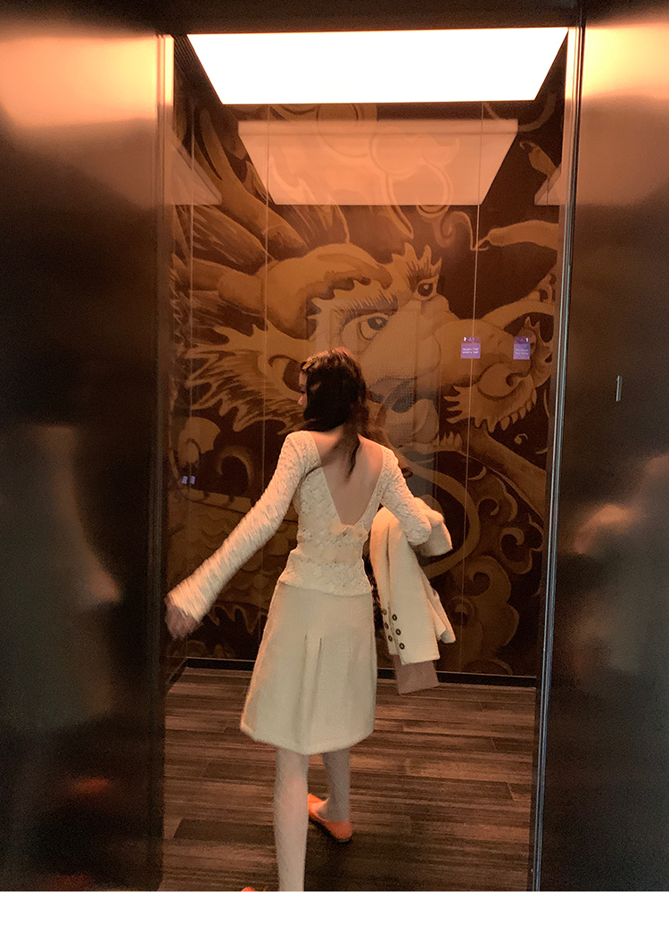 LRIB Lace Jacquard Ribbon Strap Micro-disclosure Back Top