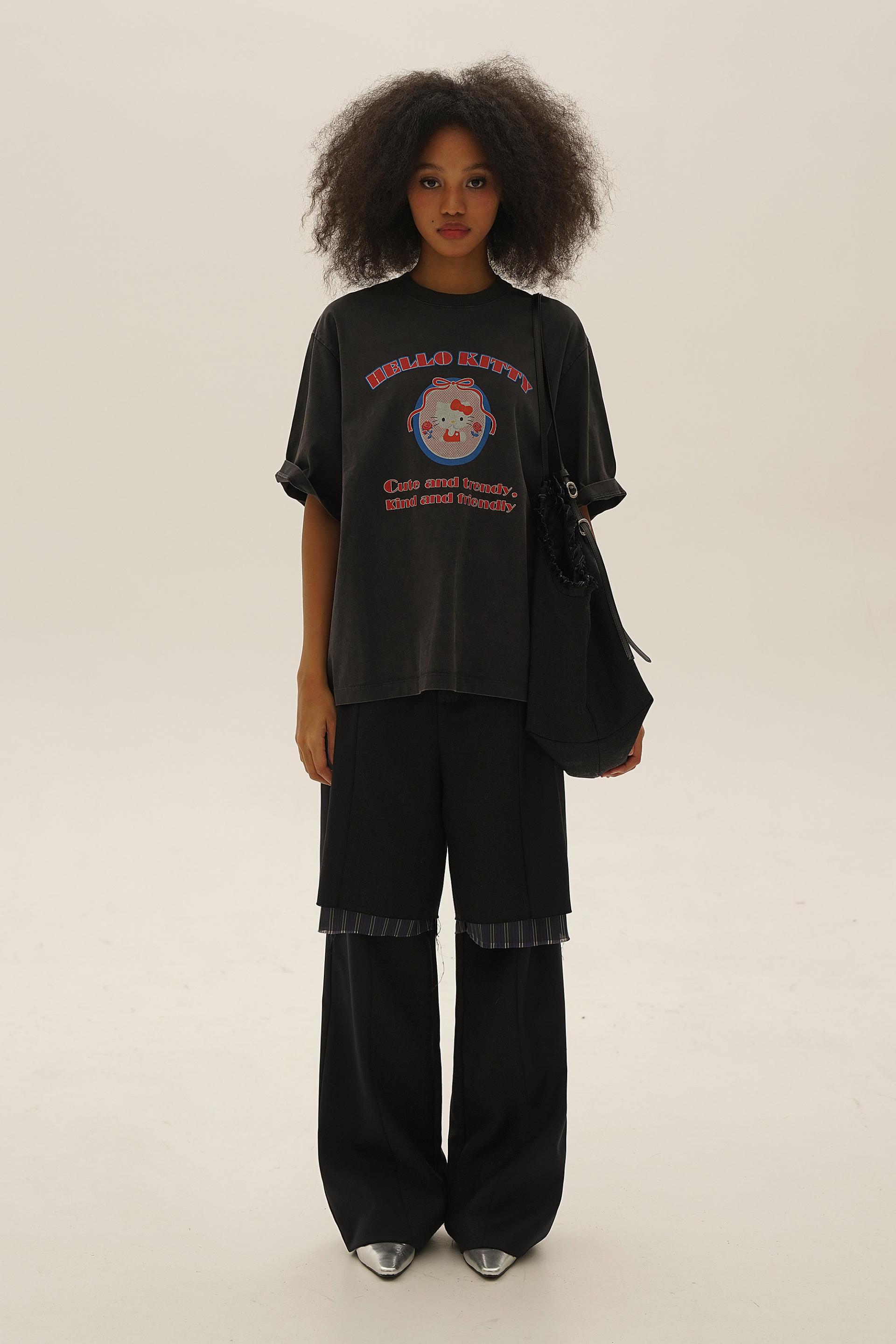 Moromoro Hellokitty Rose Printed Embroidery Loose Round Neck T-shirt