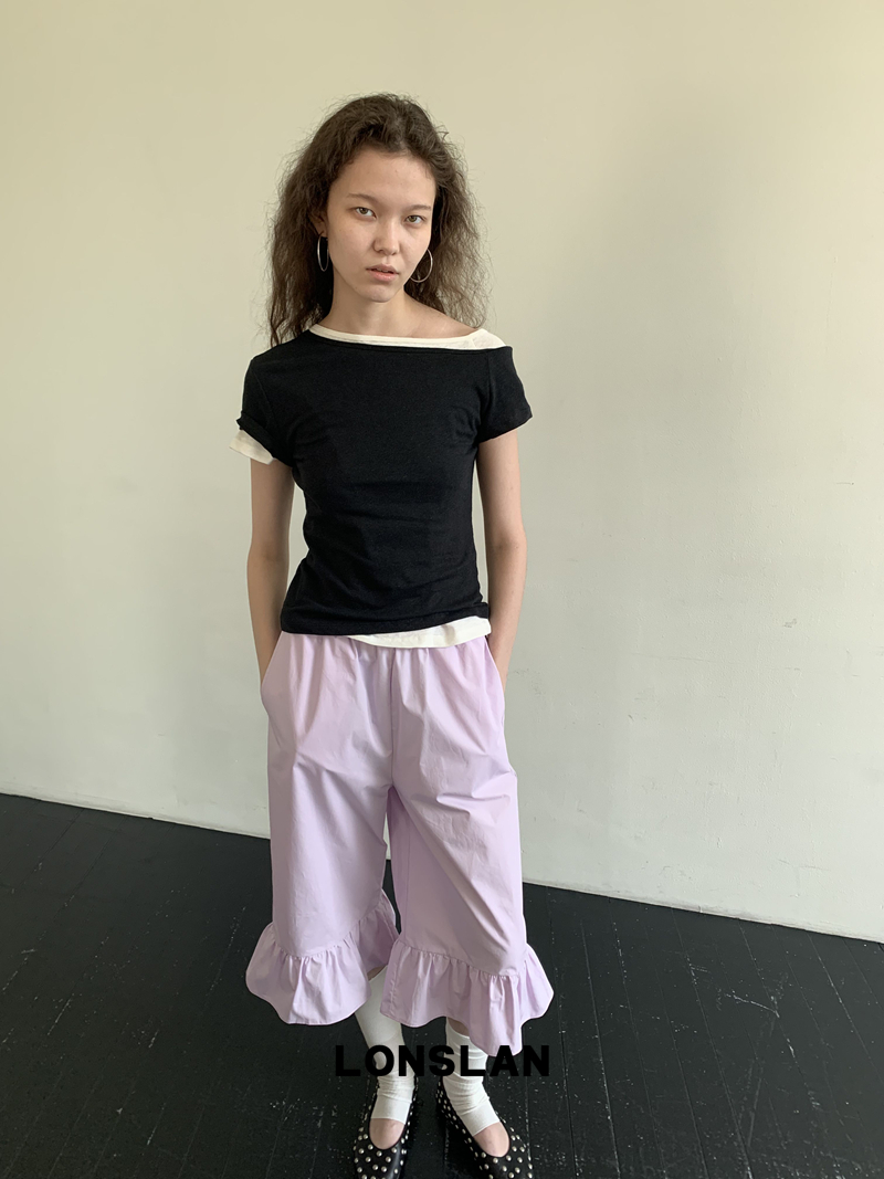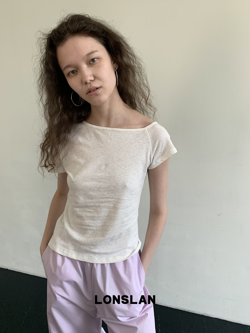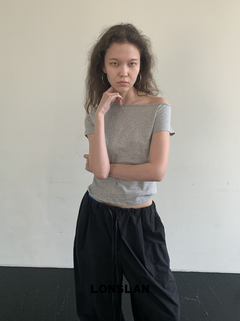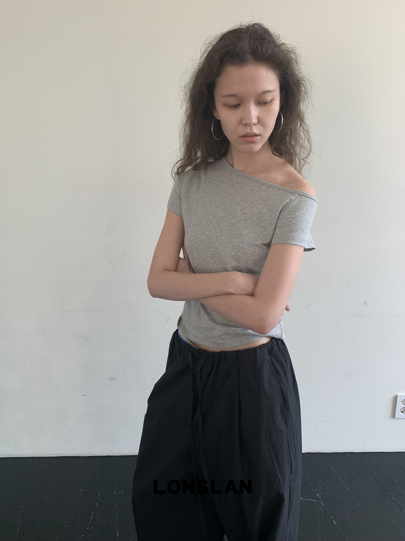 LONSLAN Slanted Shoulder Piece Slimming Short Sleeve T-shirt