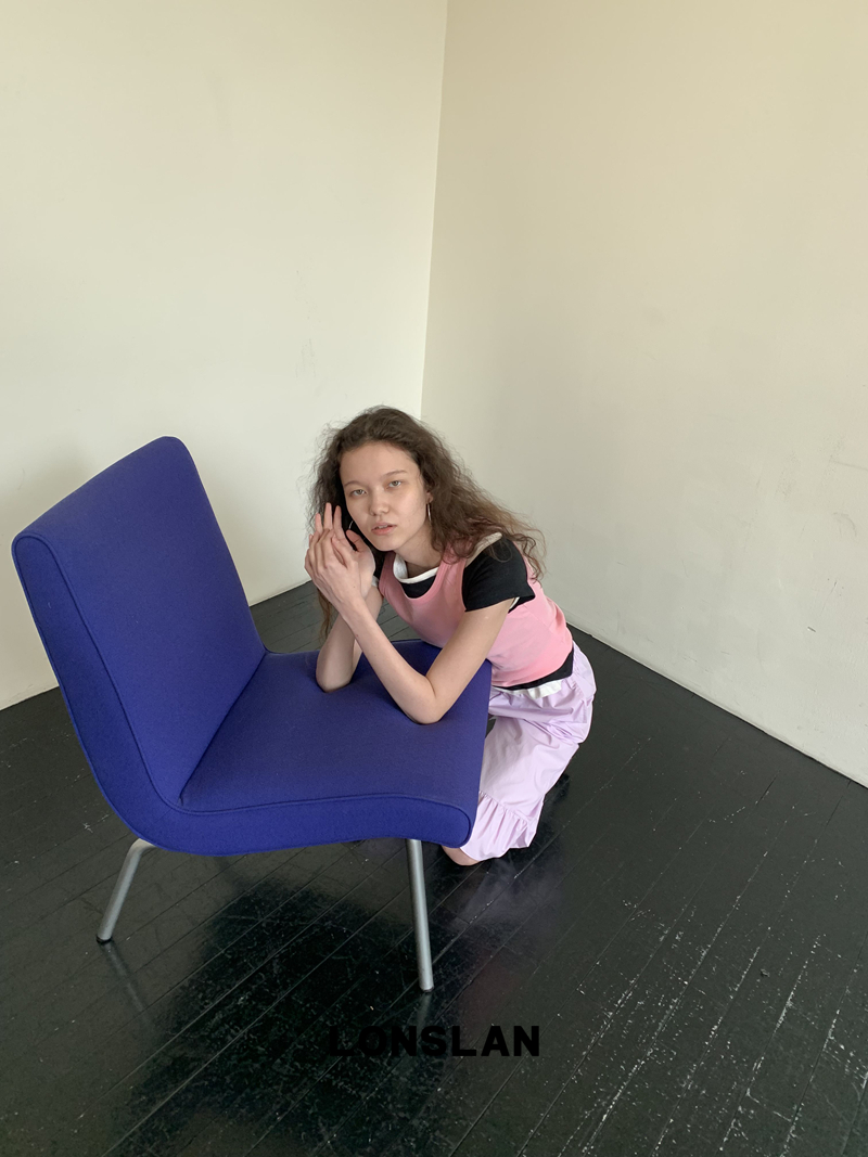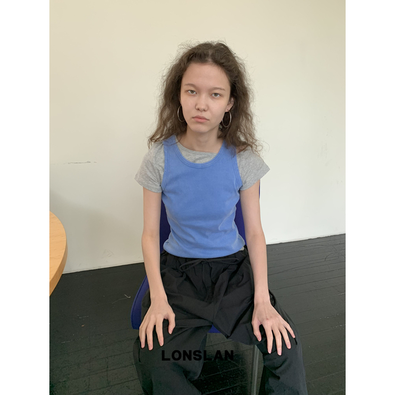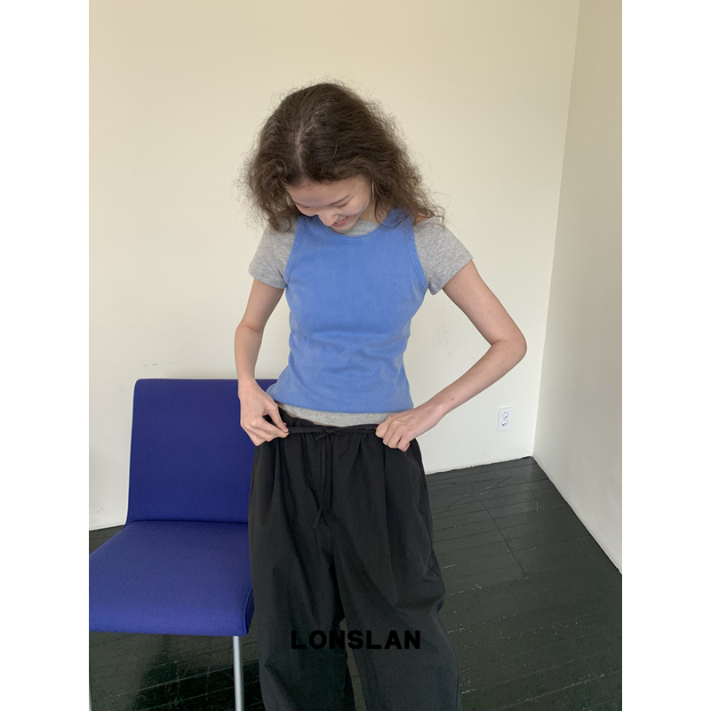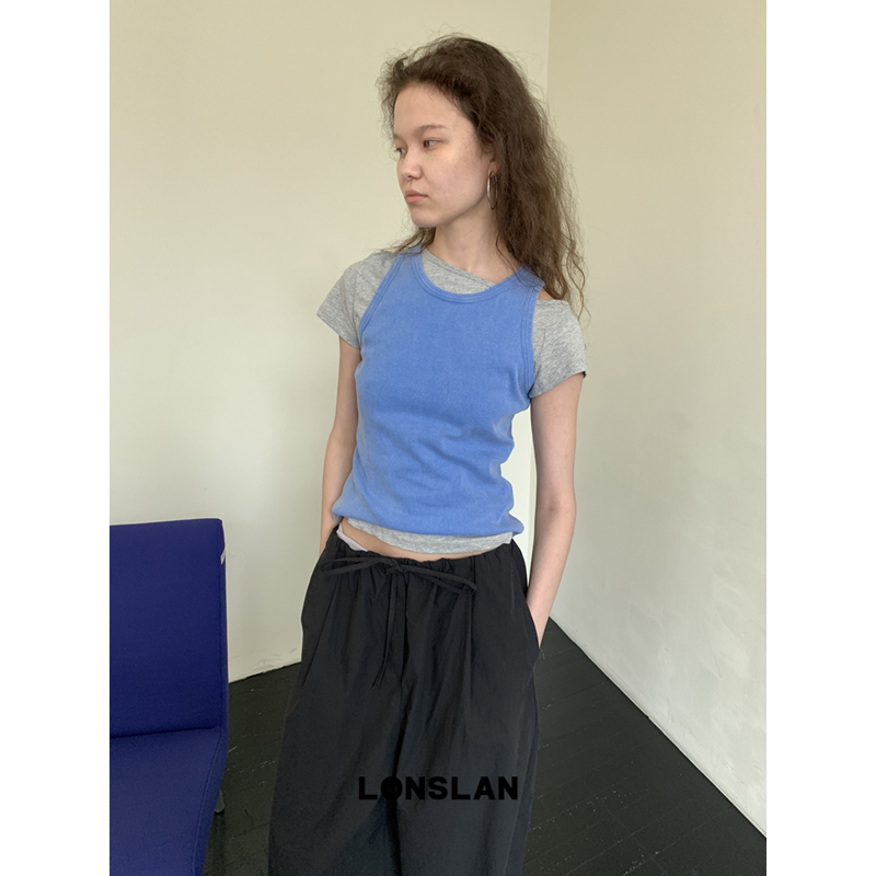 LONSLAN Slanted Shoulder Piece Slimming Short Sleeve T-shirt