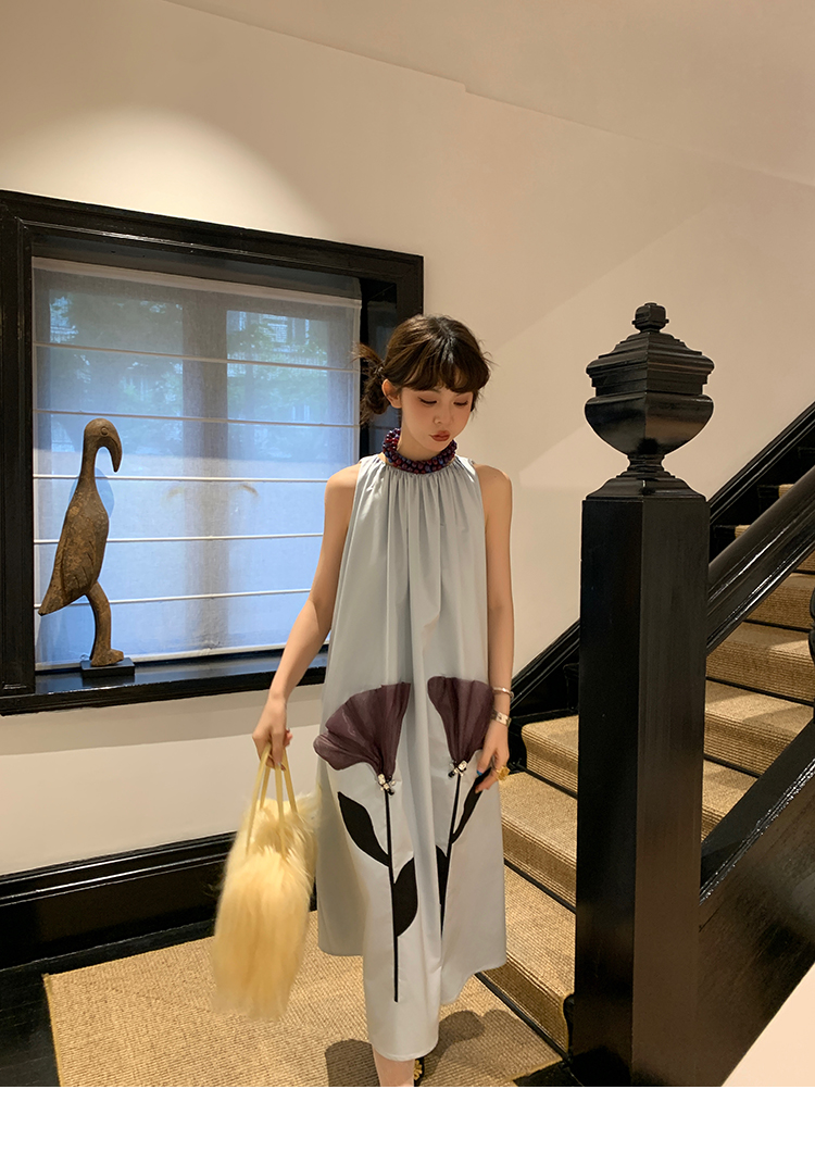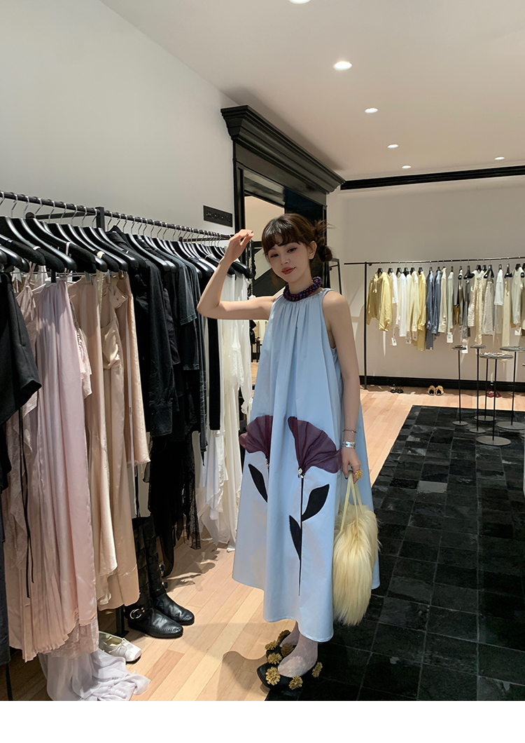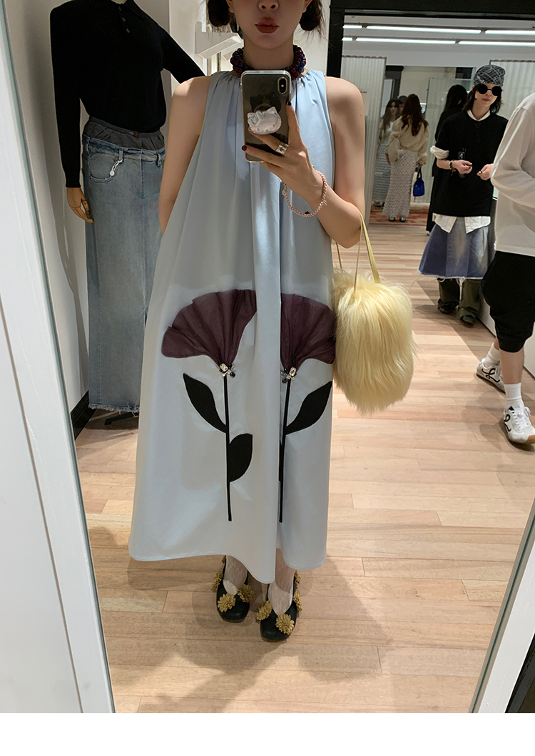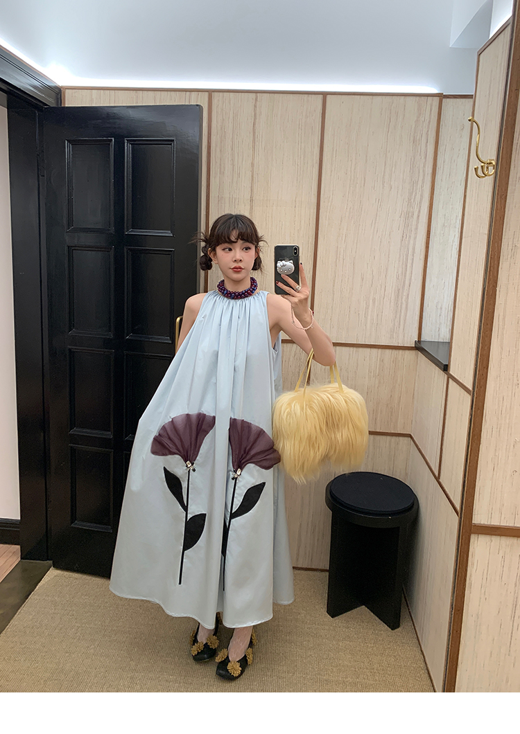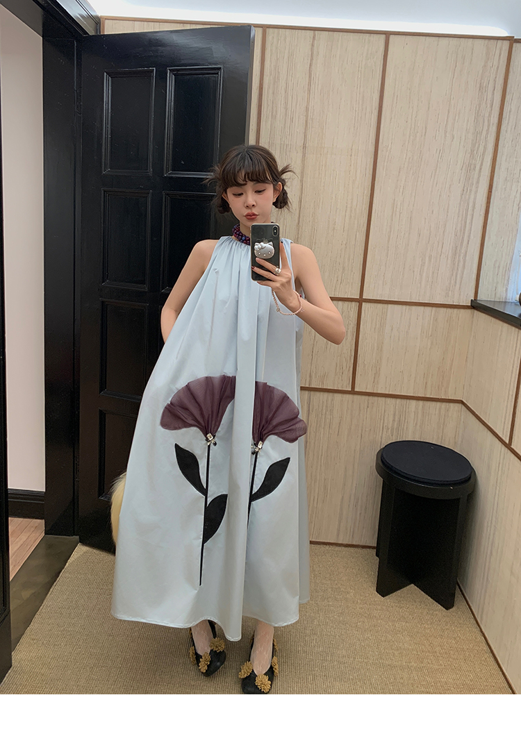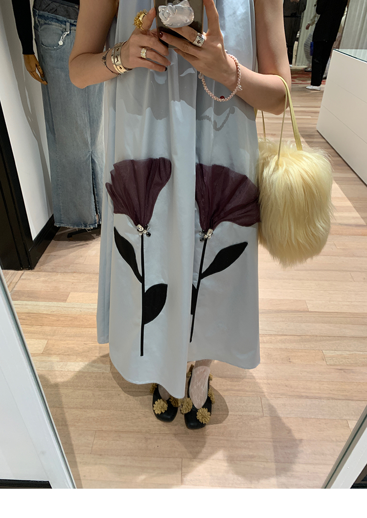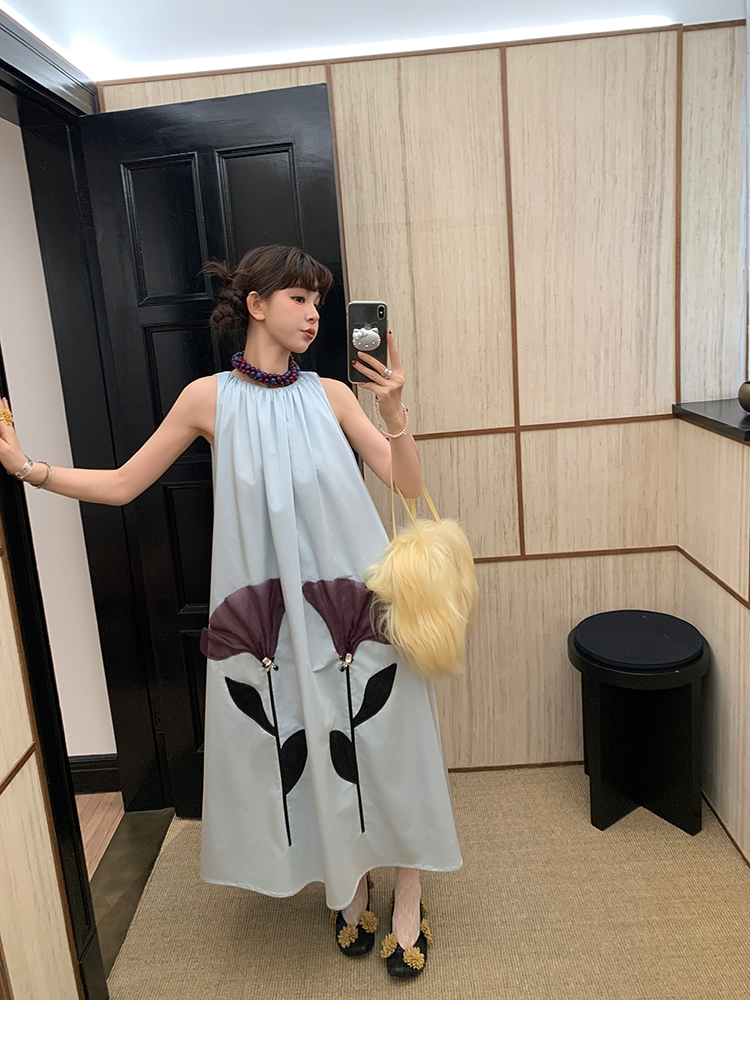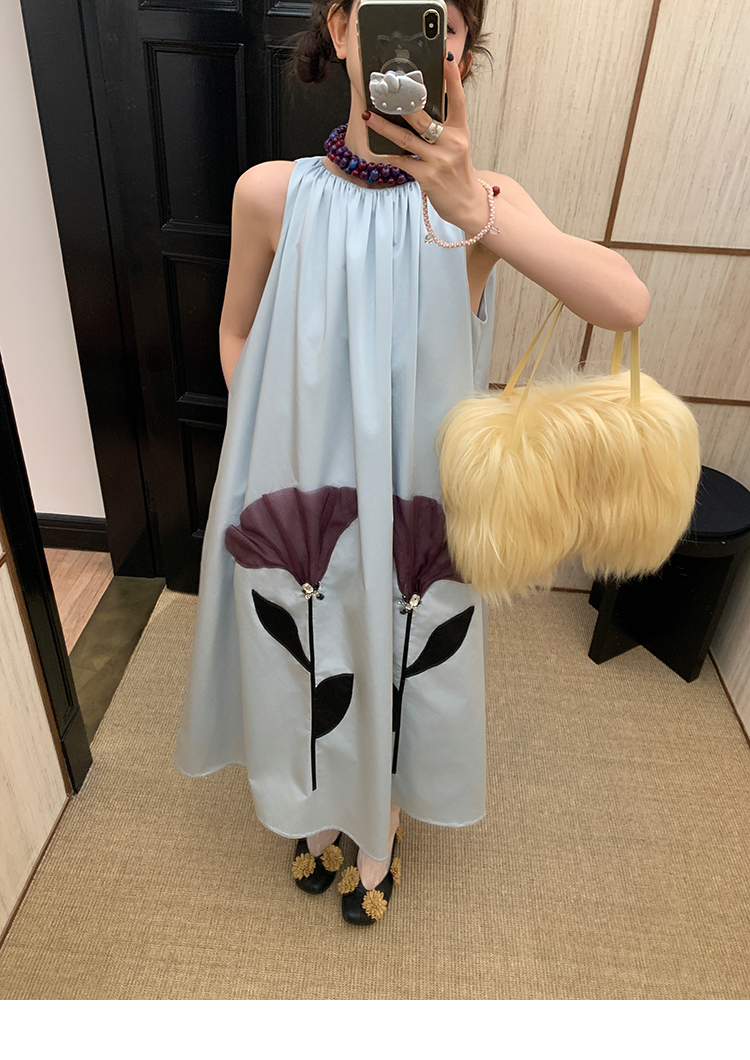 LRIB Vine Flower High-Quality Nail Diamond Mesh Blue Dress
