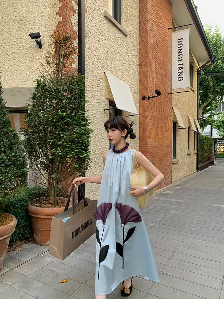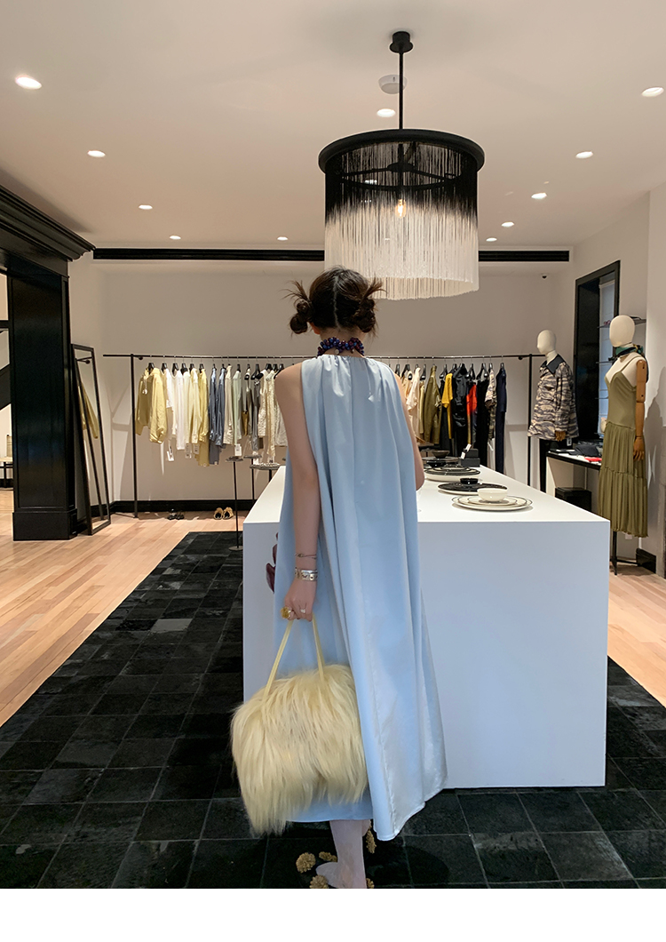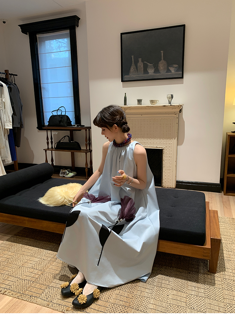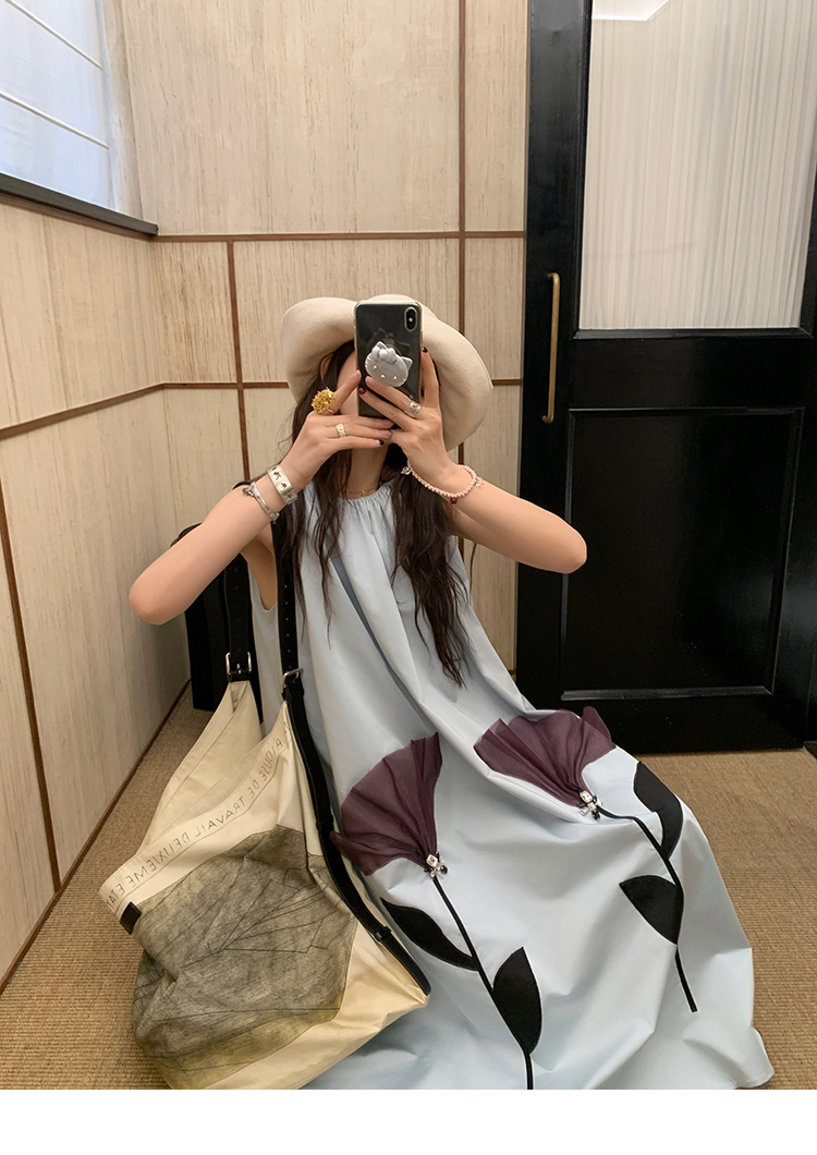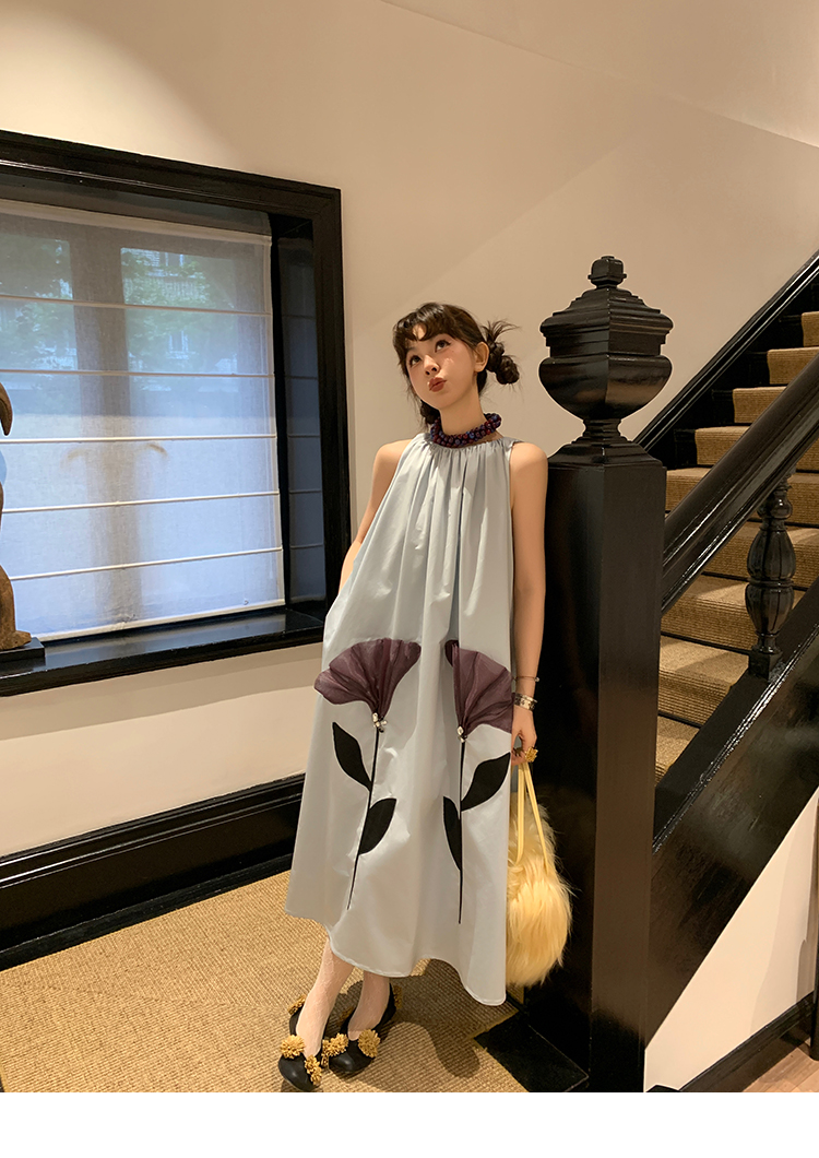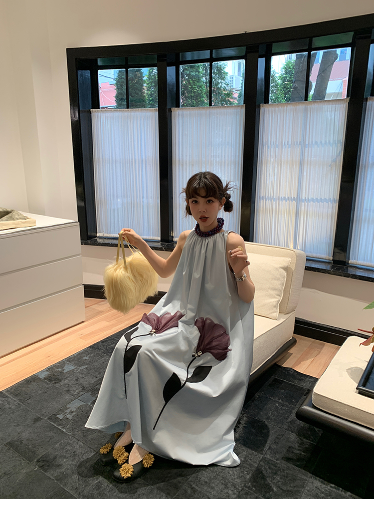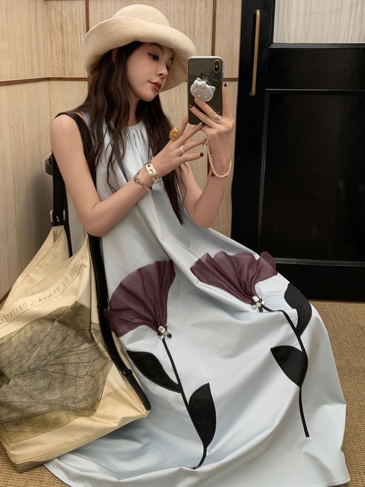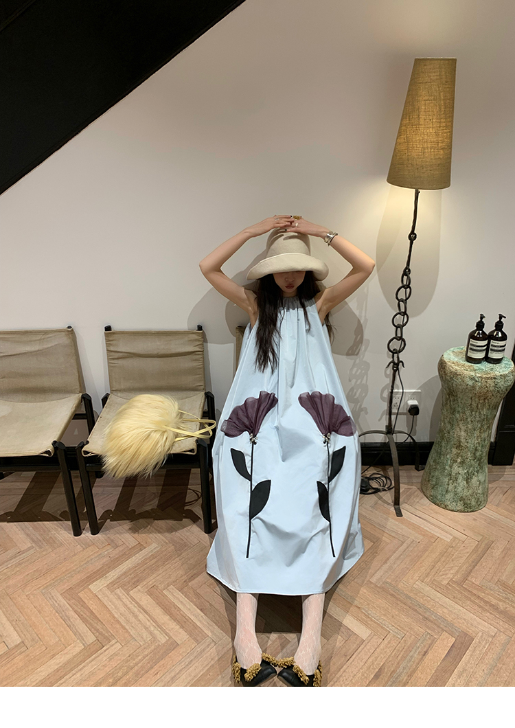 LRIB Vine Flower High-Quality Nail Diamond Mesh Blue Dress