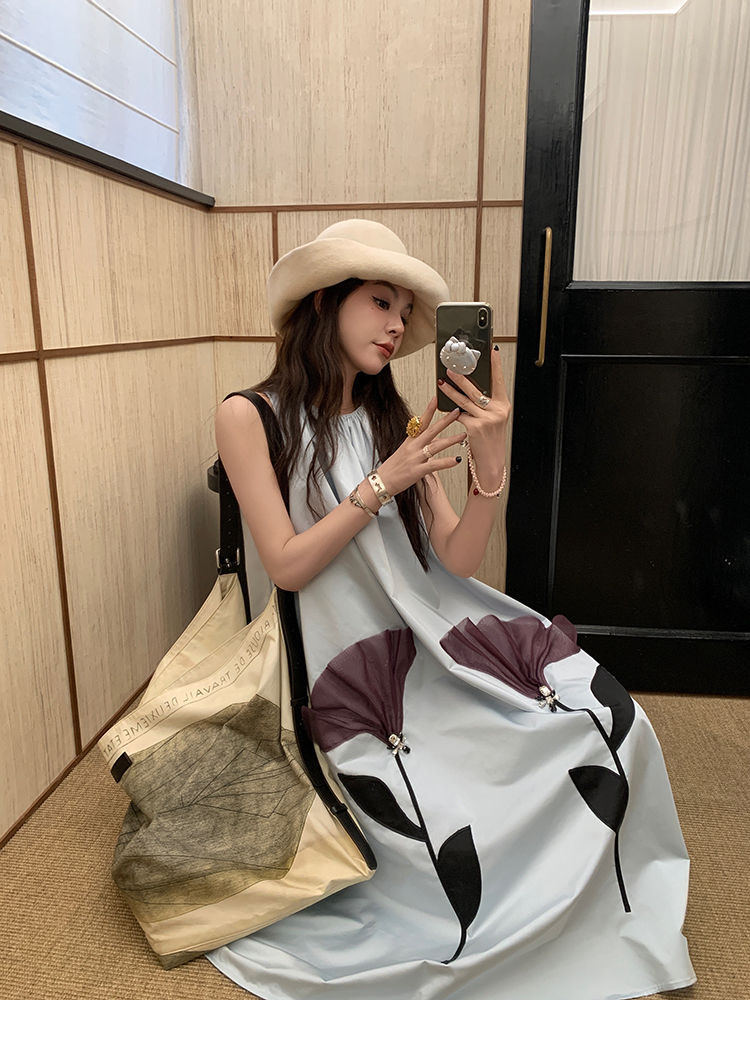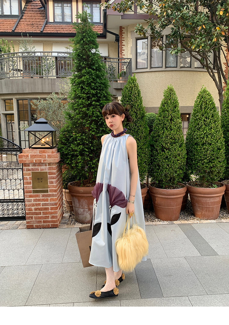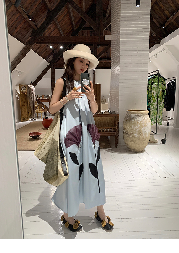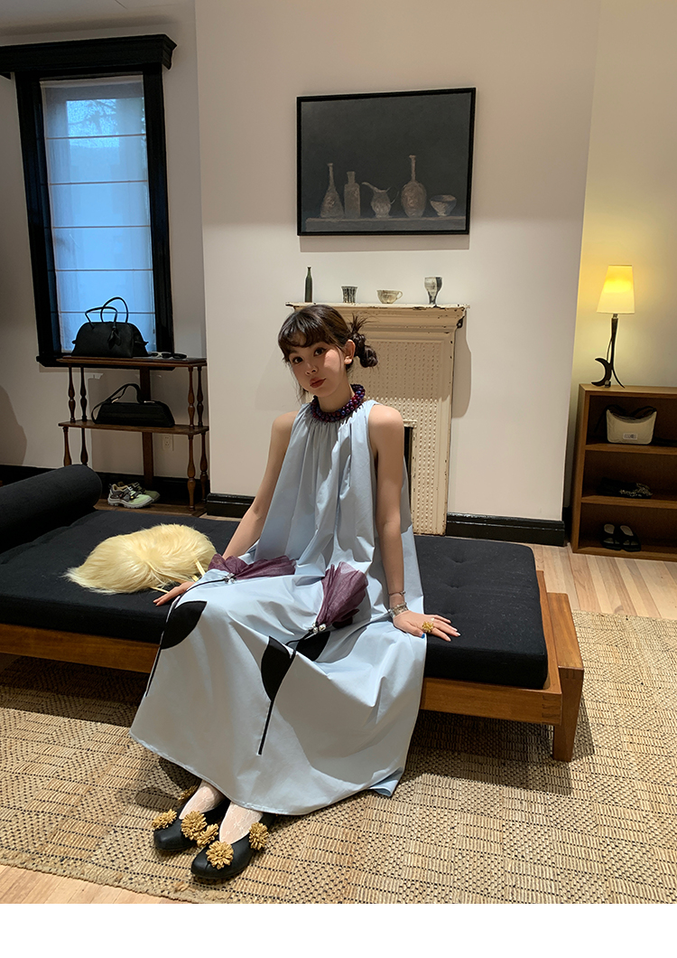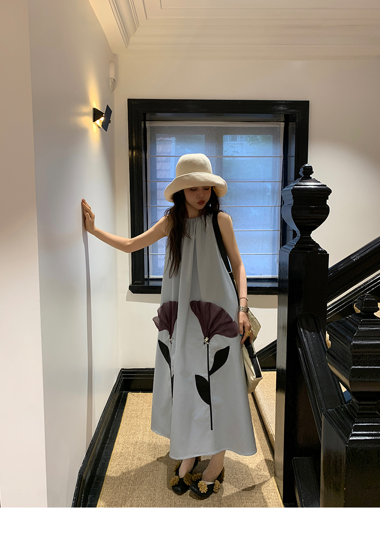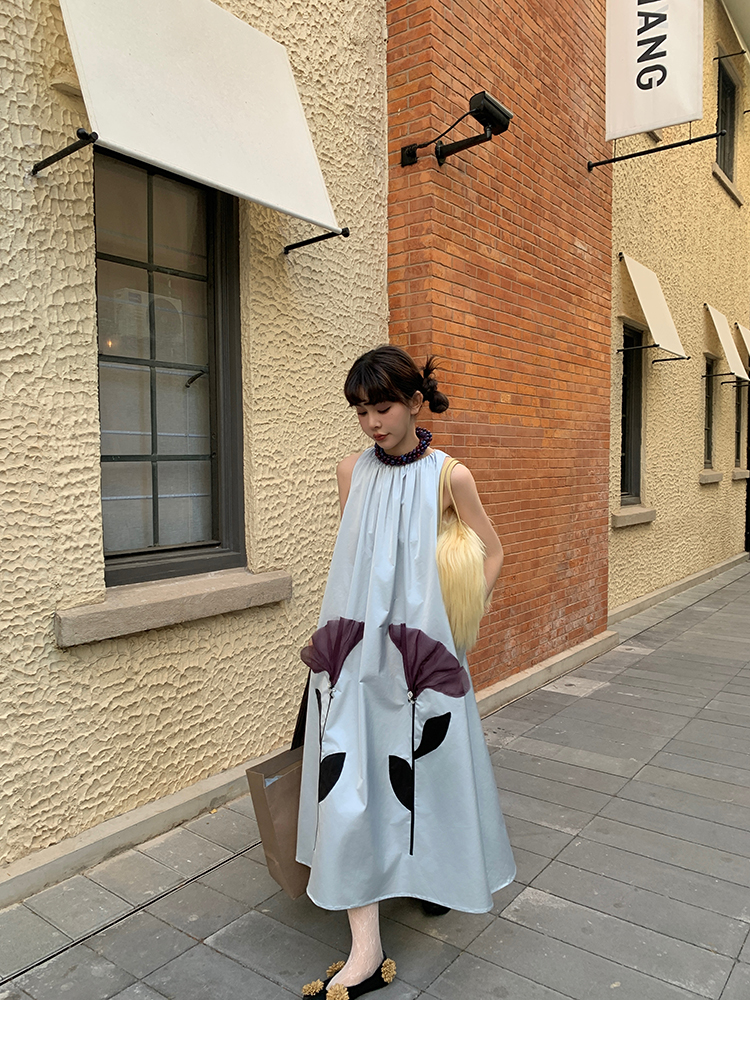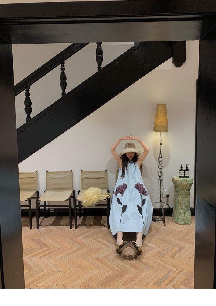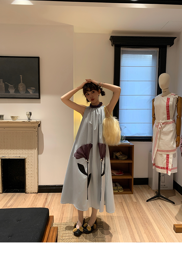 LRIB Vine Flower High-Quality Nail Diamond Mesh Blue Dress
