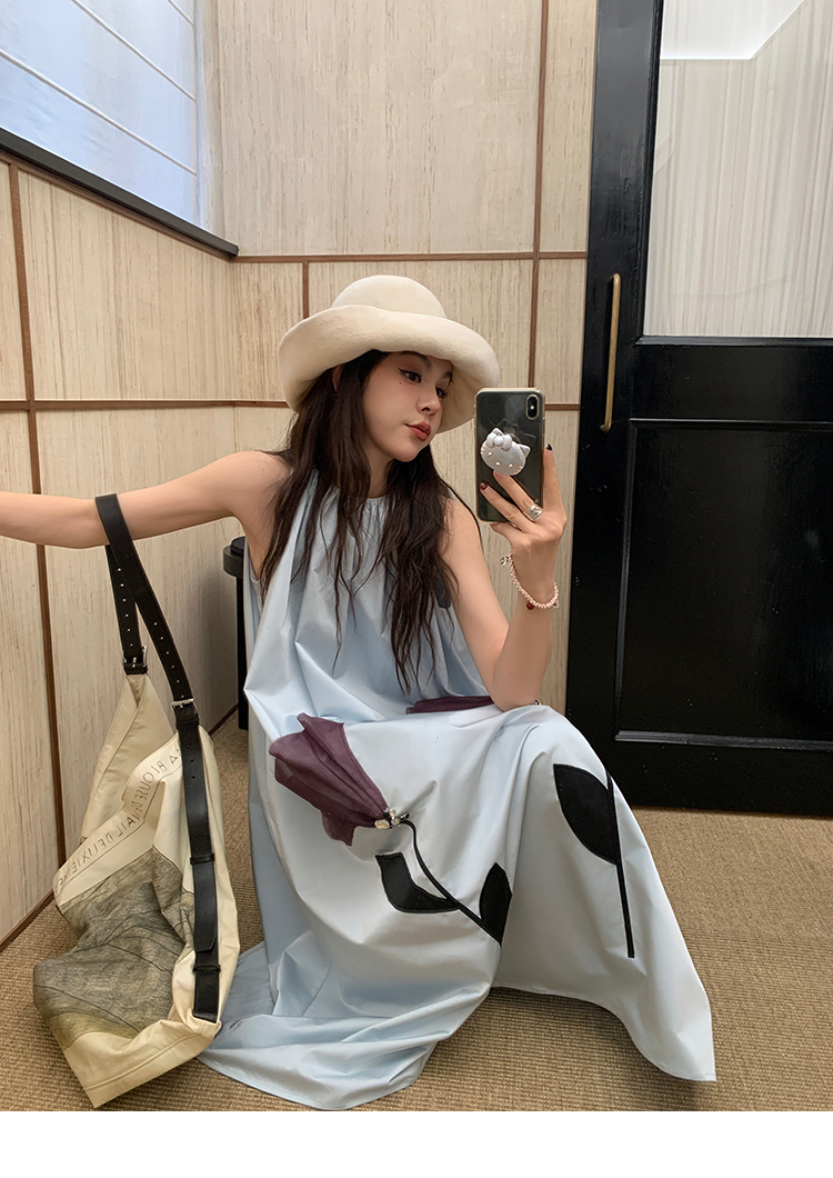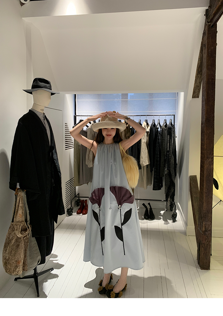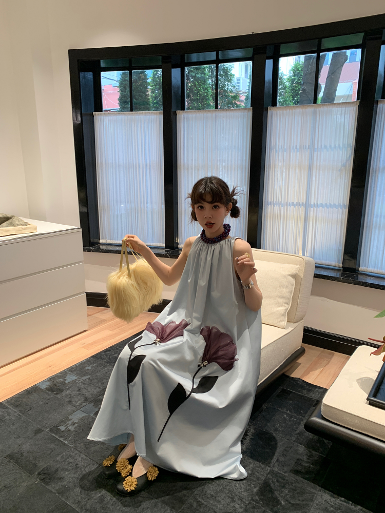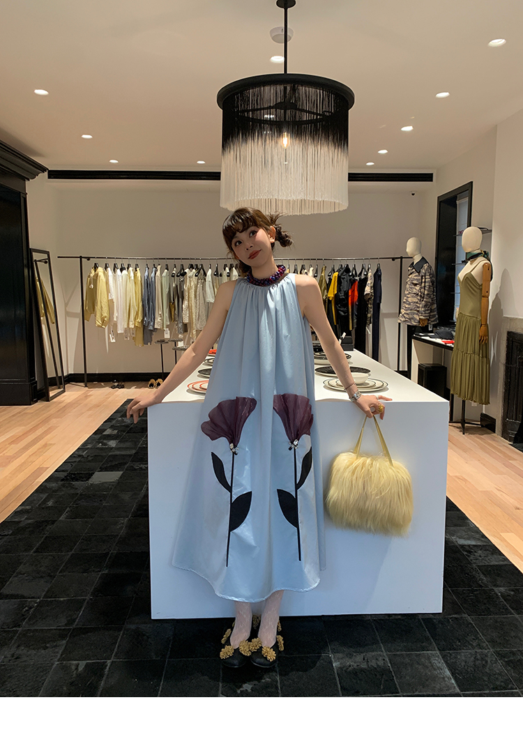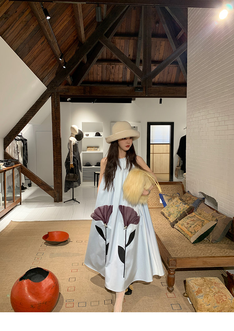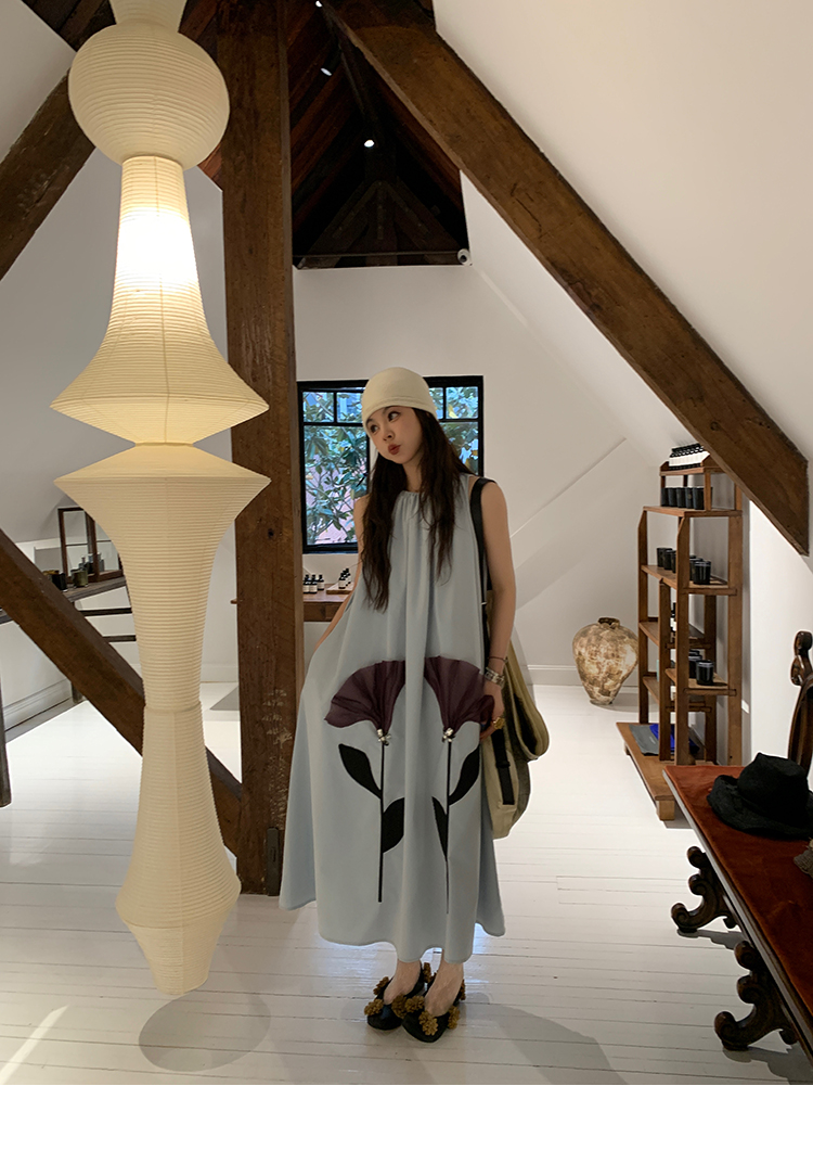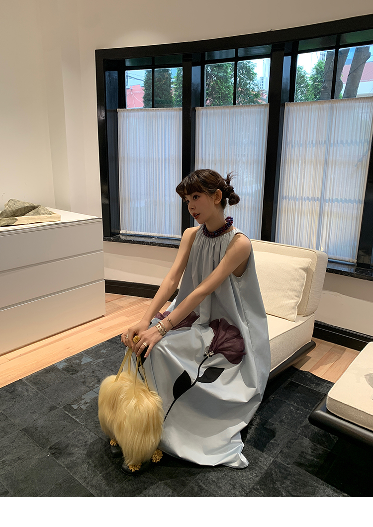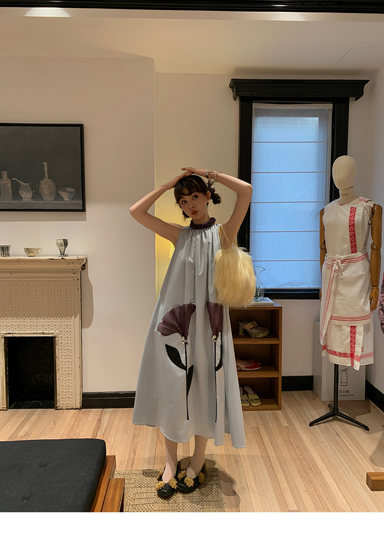 LRIB Vine Flower High-Quality Nail Diamond Mesh Blue Dress