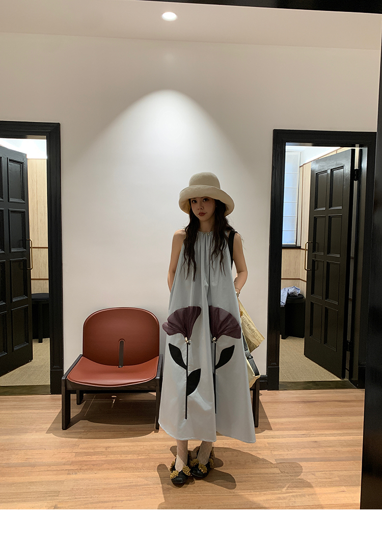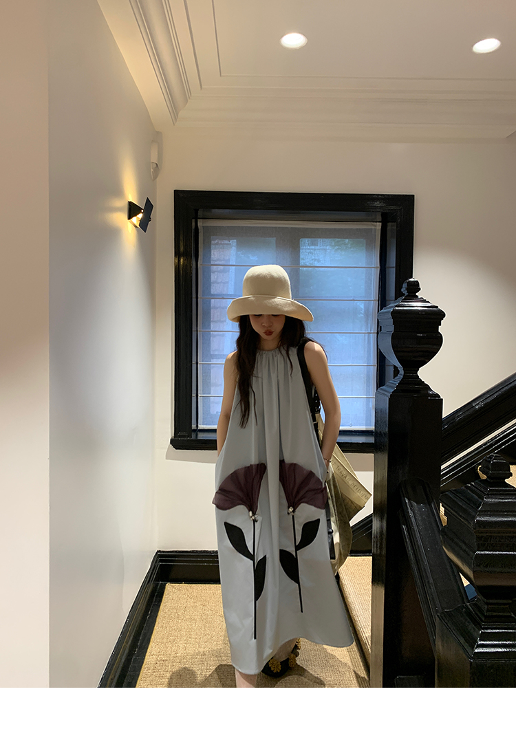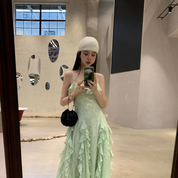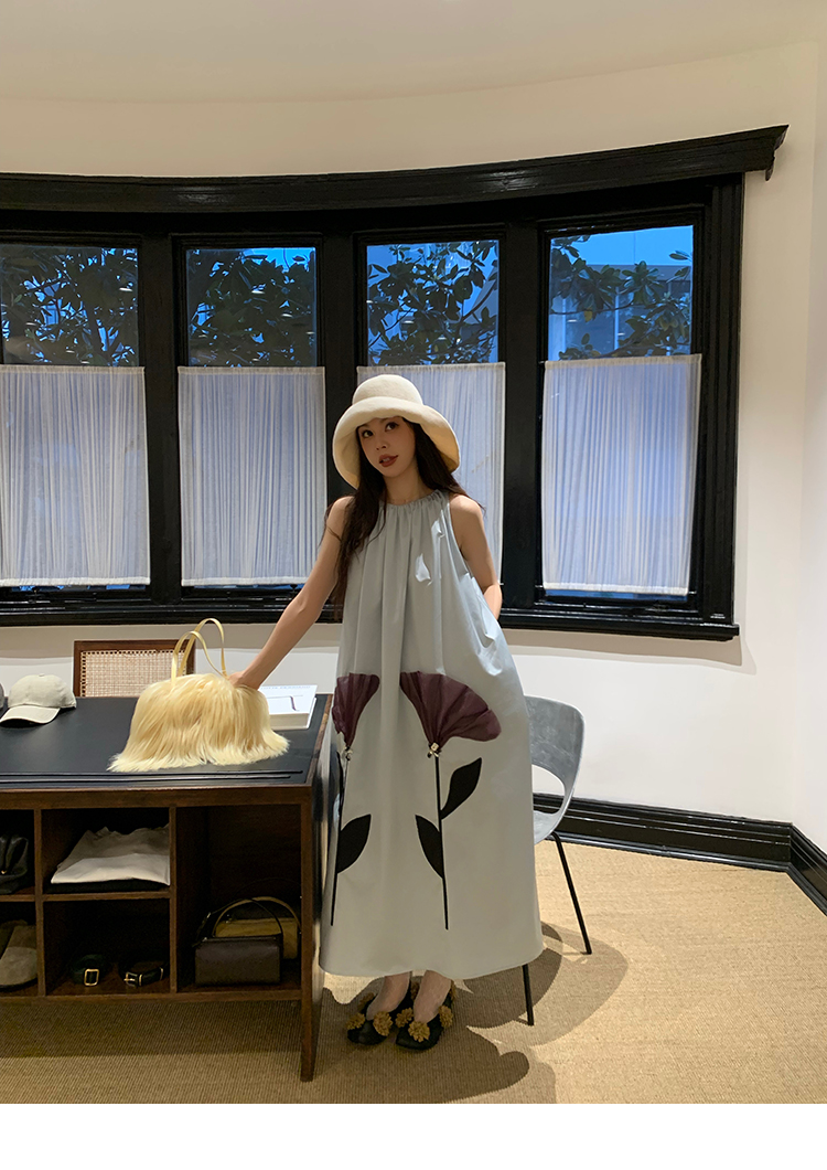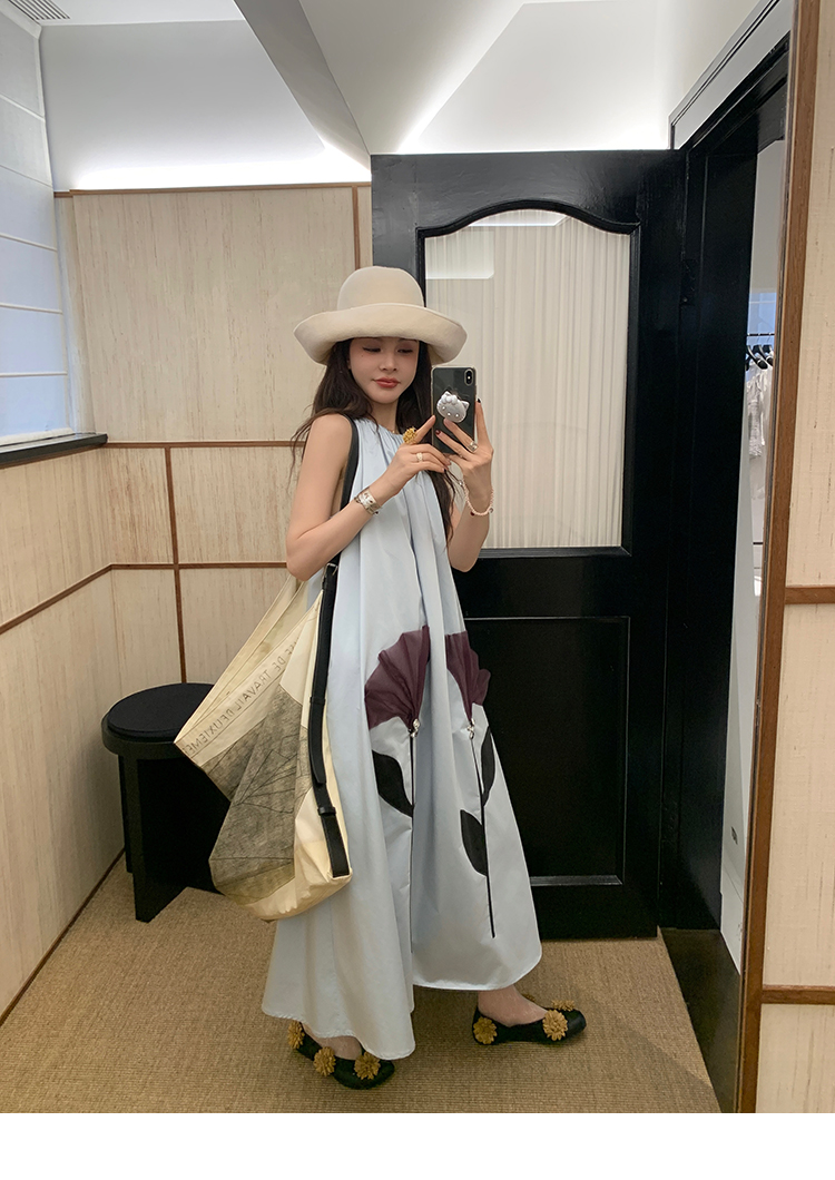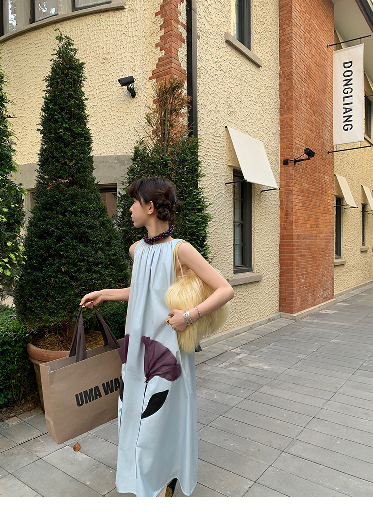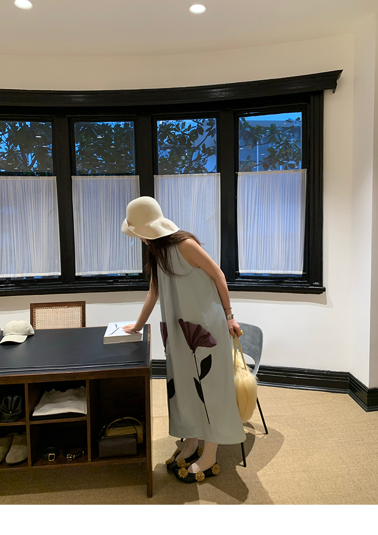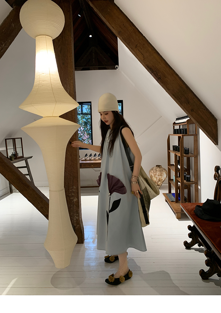 LRIB Vine Flower High-Quality Nail Diamond Mesh Blue Dress