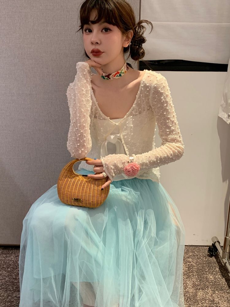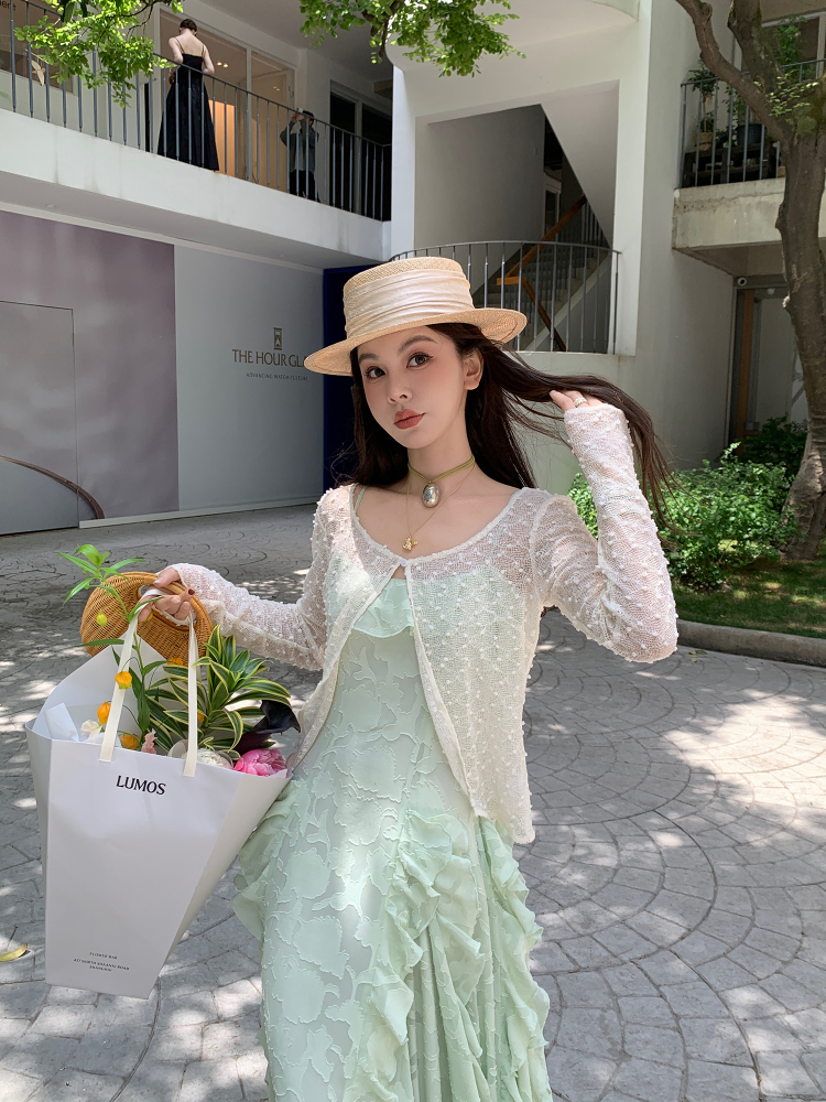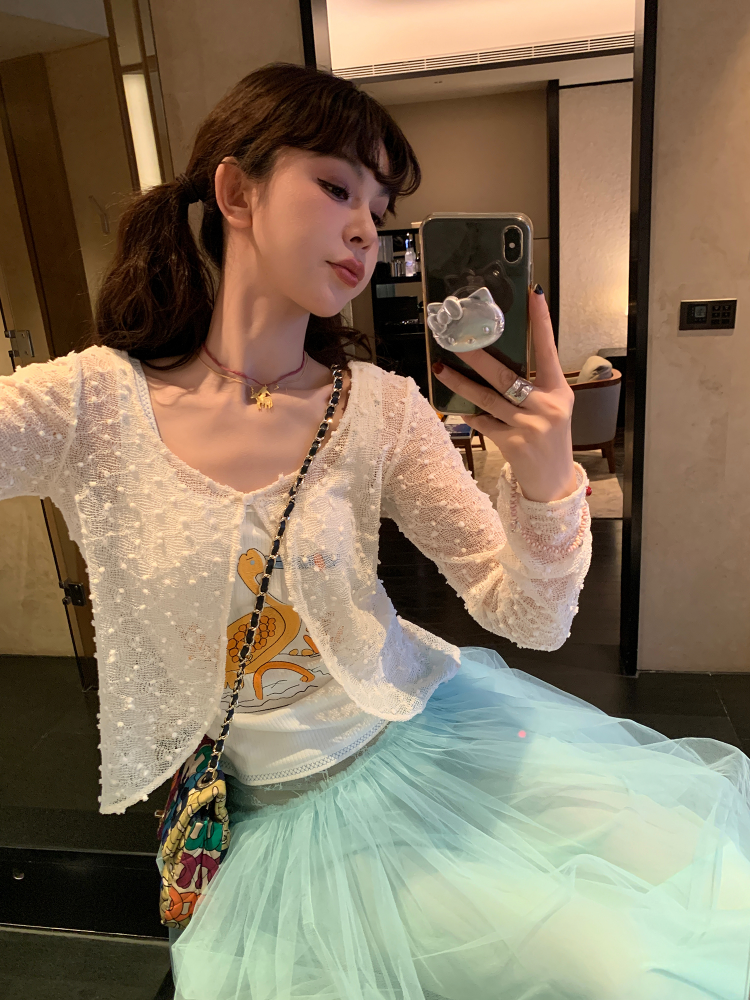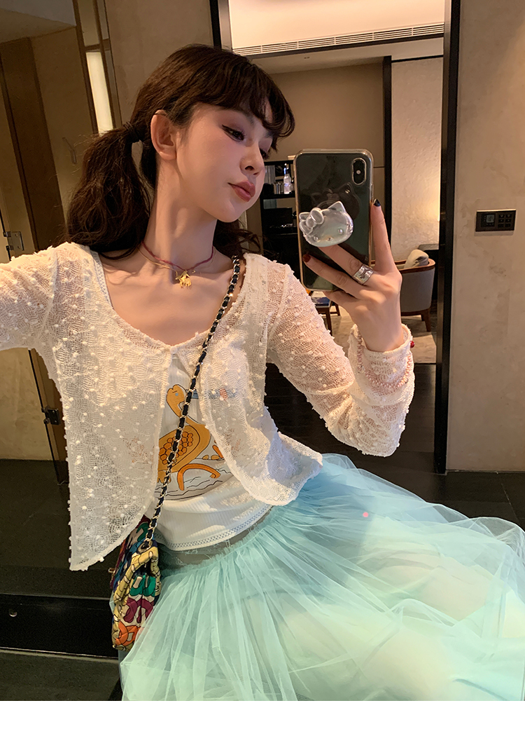 LRIB Summer Hollow Lace Mesh Long-Sleeve Sun Protection Cardigan