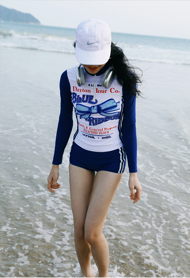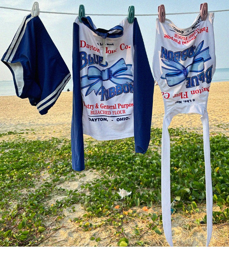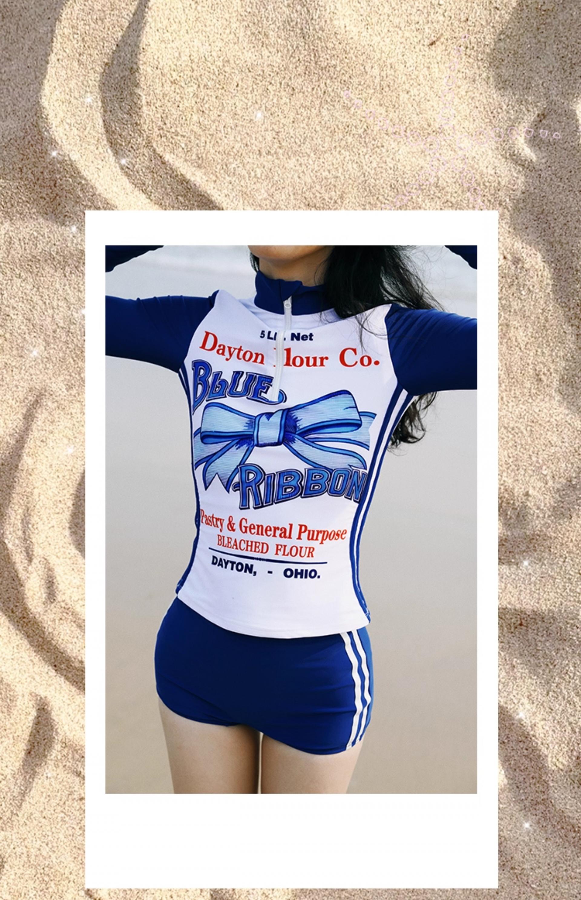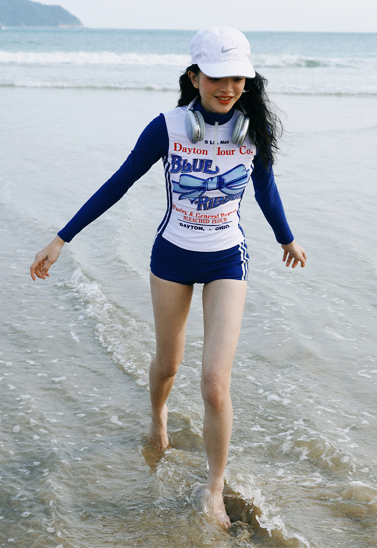 MOF Blue Bow Long-sleeved Split Sports Sun Protection Swimsuit