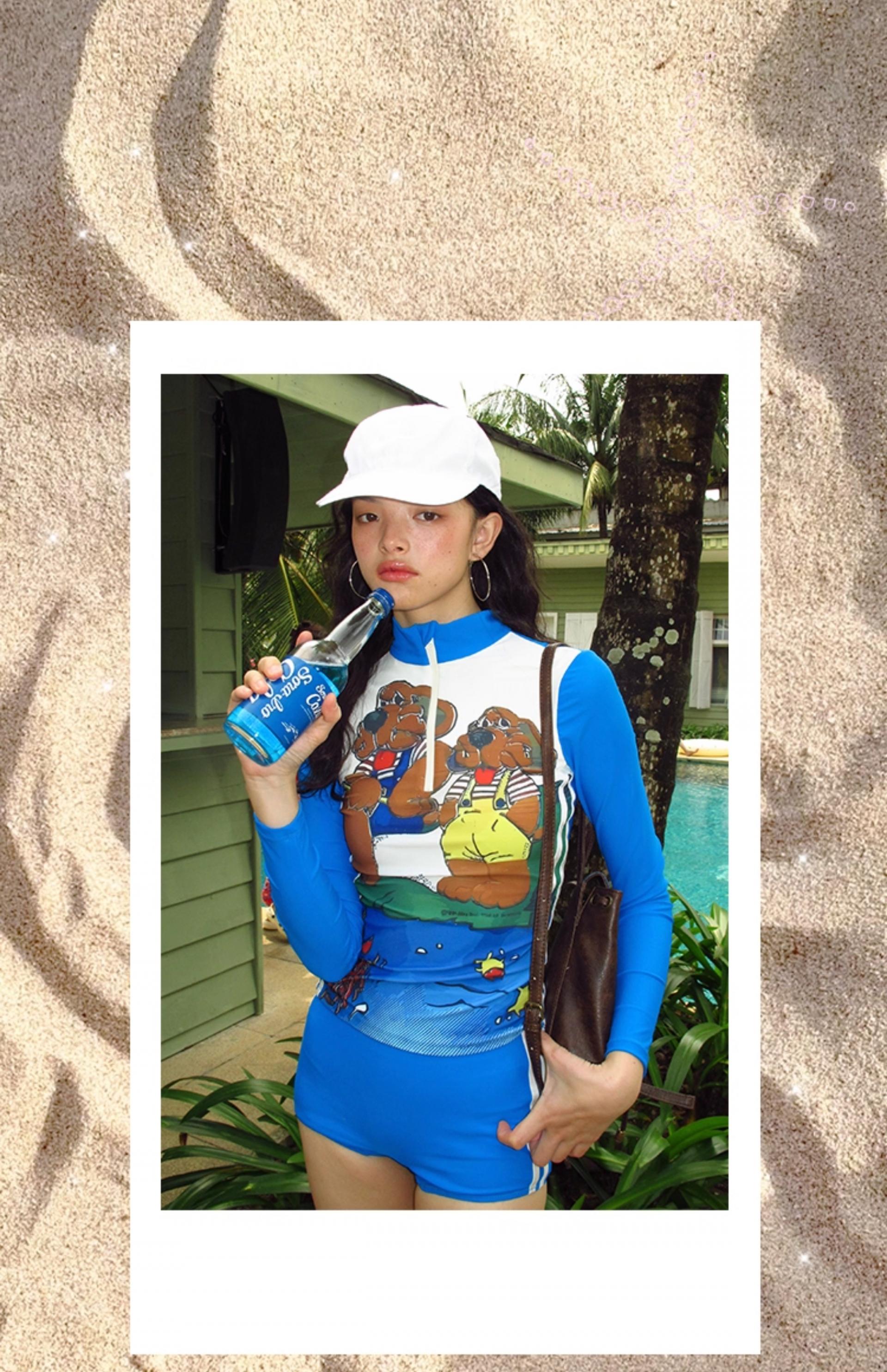 MOF Fishing Dog Long Sleeve Sports Sun Protection Swimsuit
