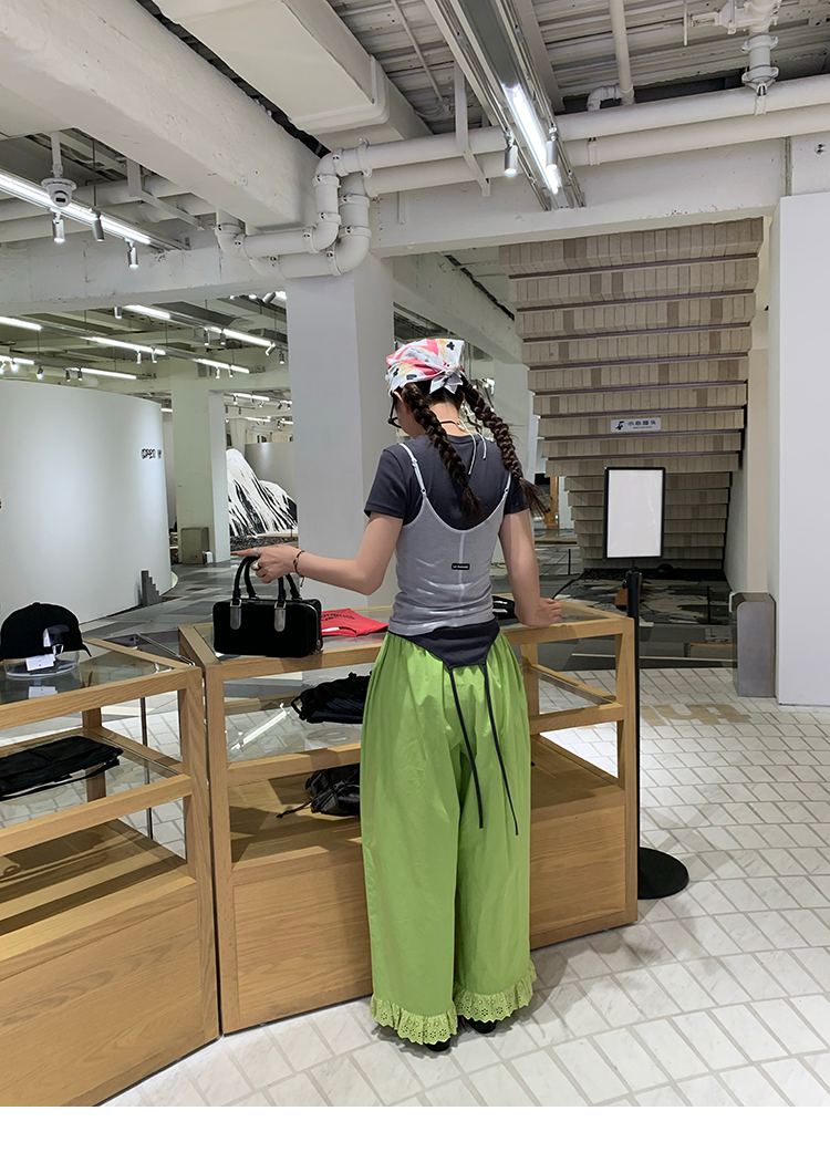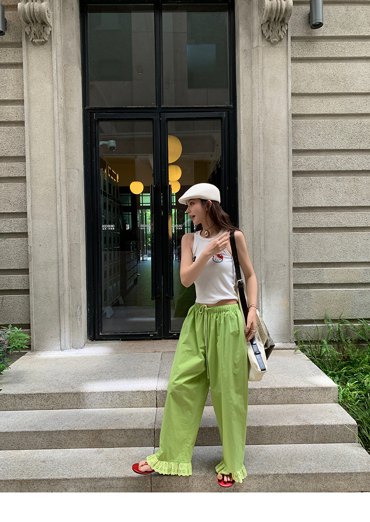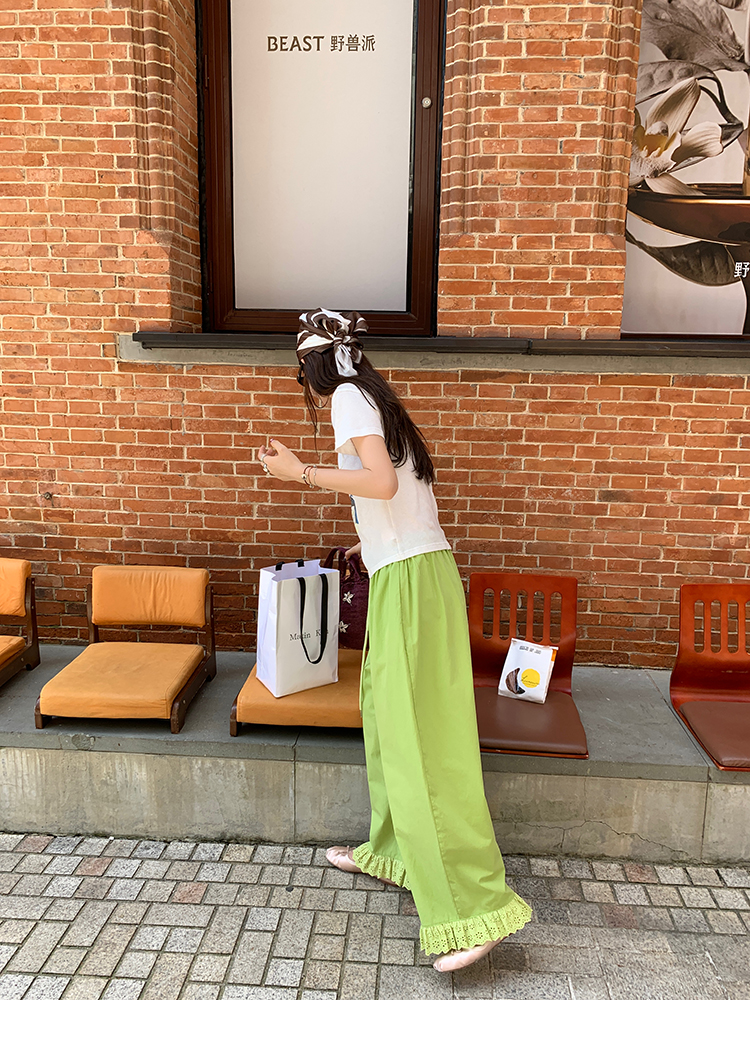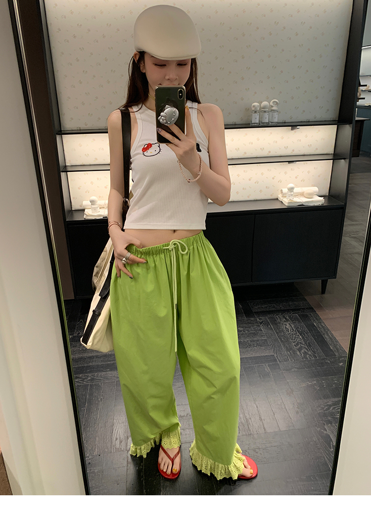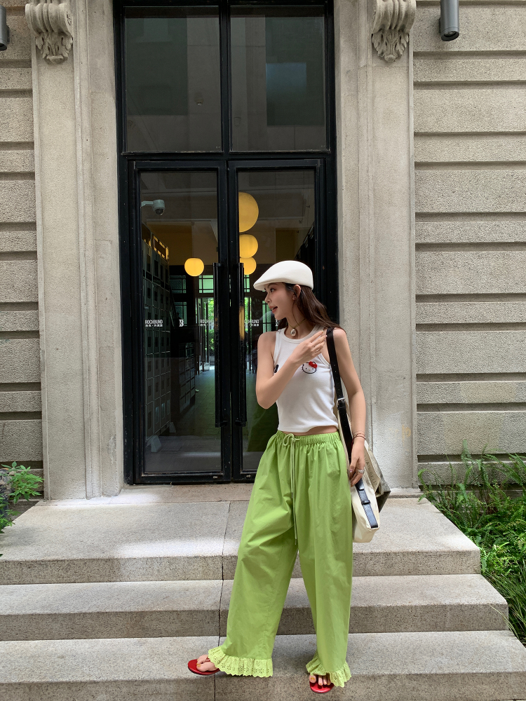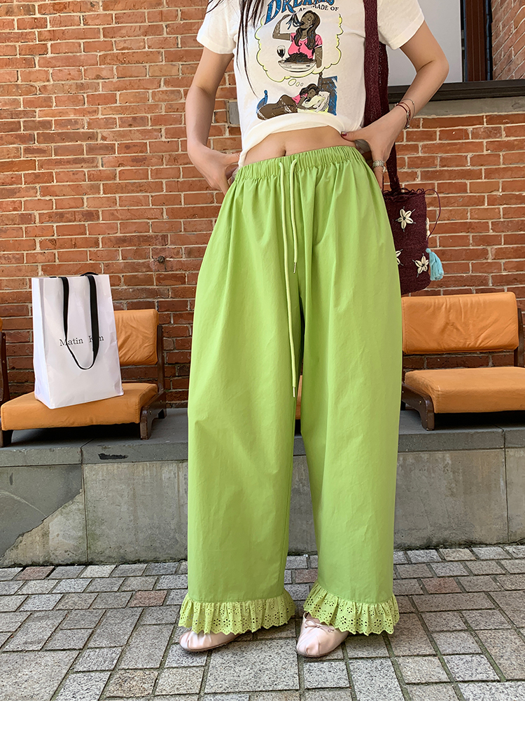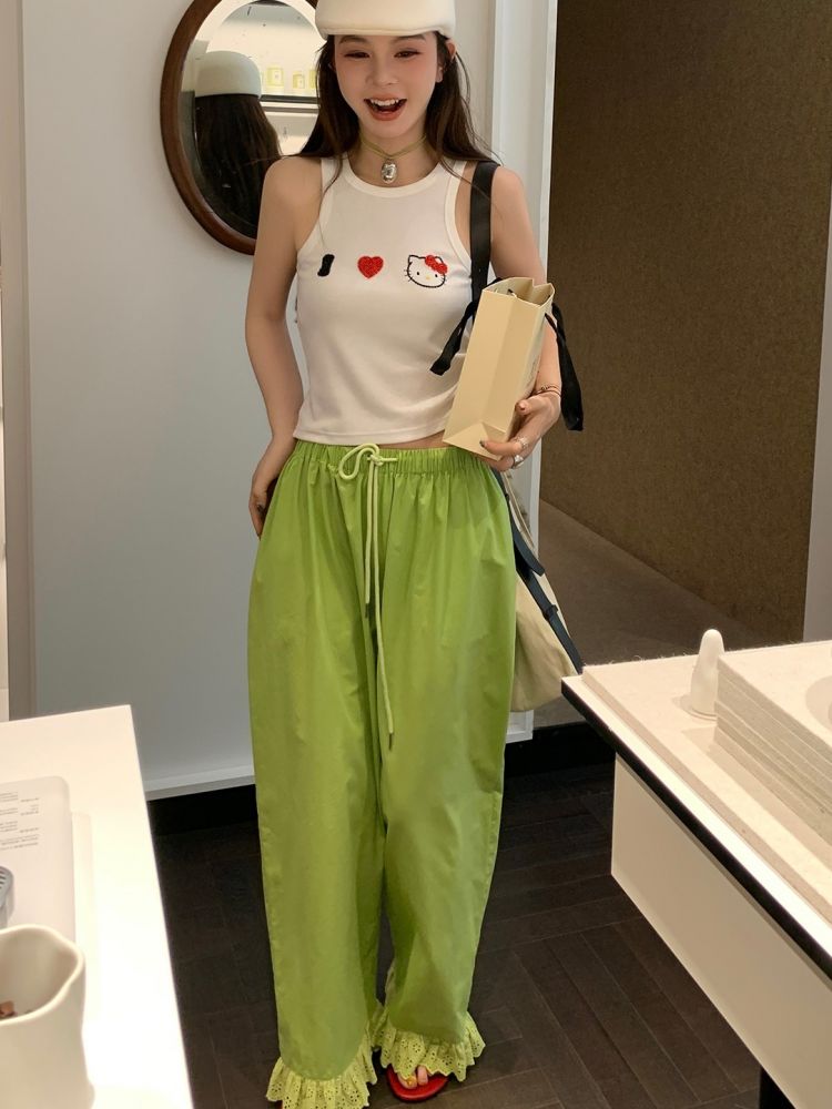 LRIB Fresh Apple Green Versatile Lace Lace Rope Casual Long Pants
