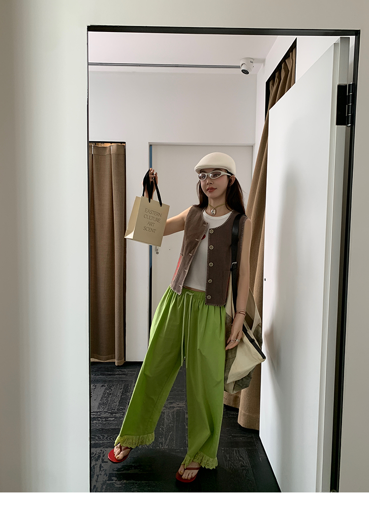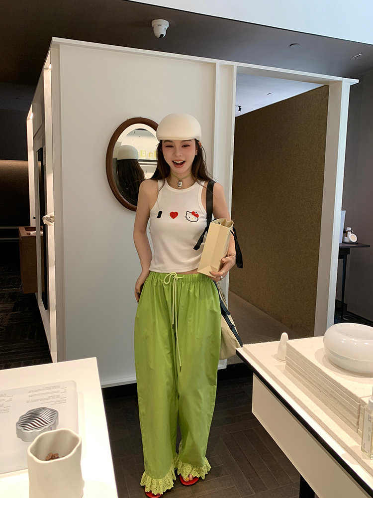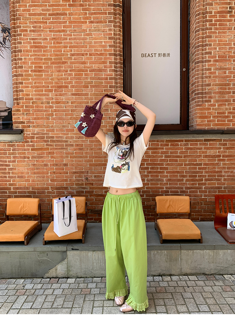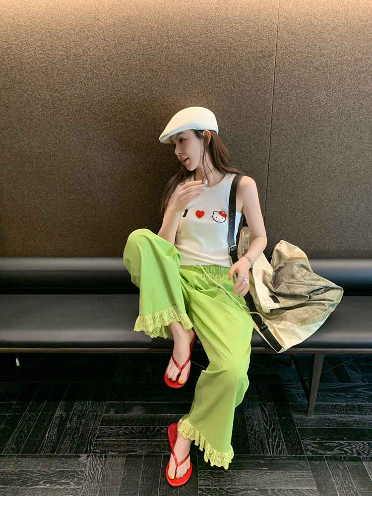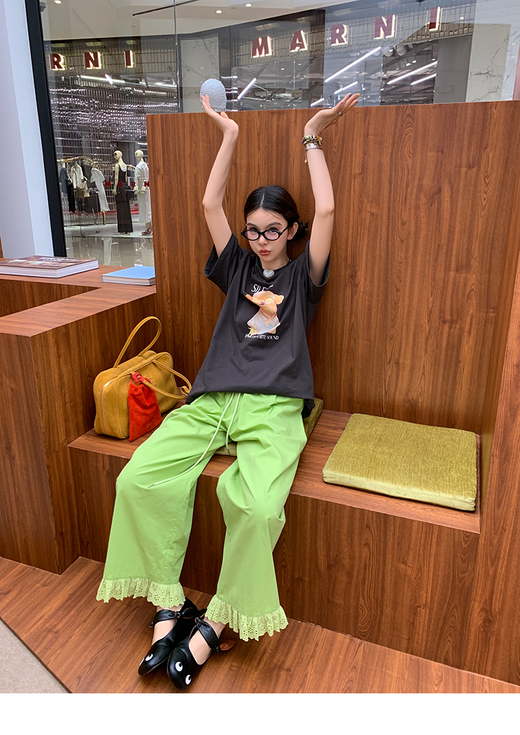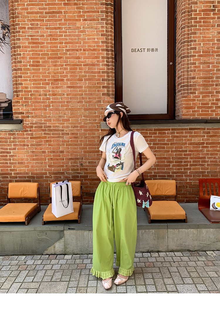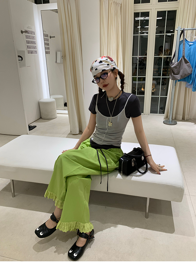 LRIB Fresh Apple Green Versatile Lace Lace Rope Casual Long Pants