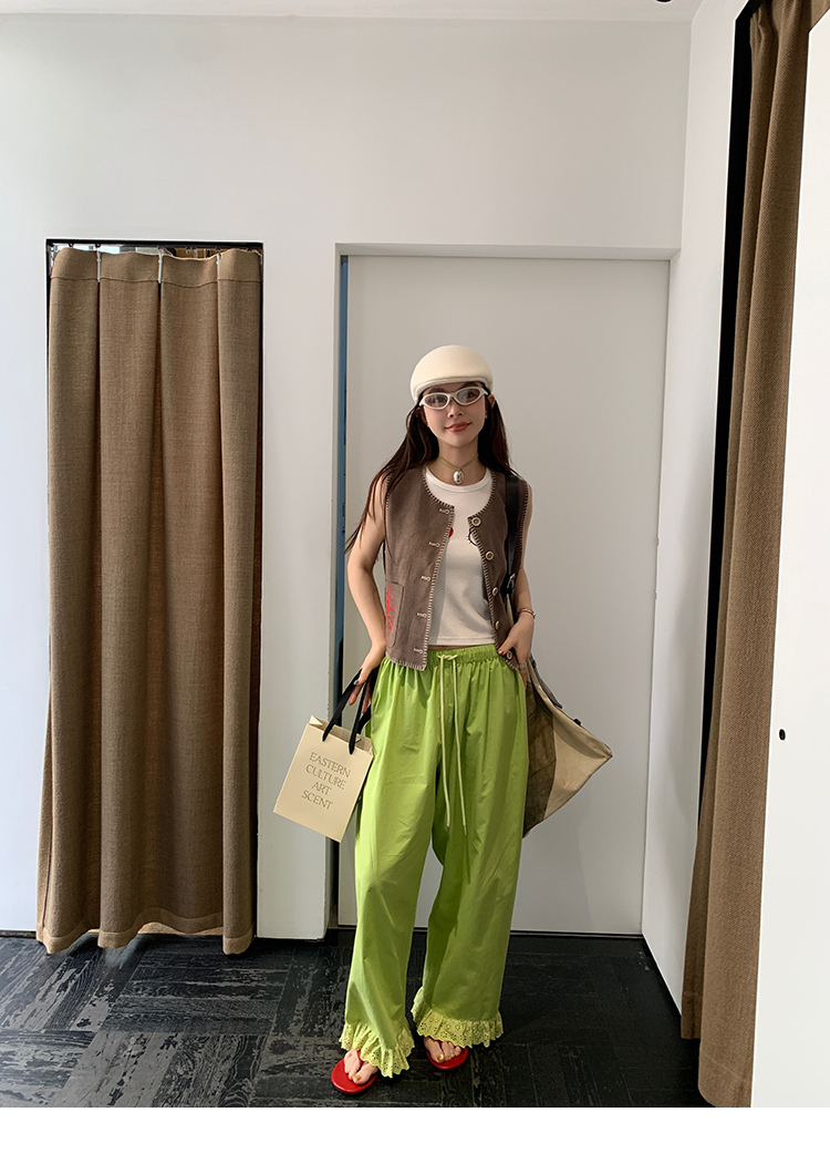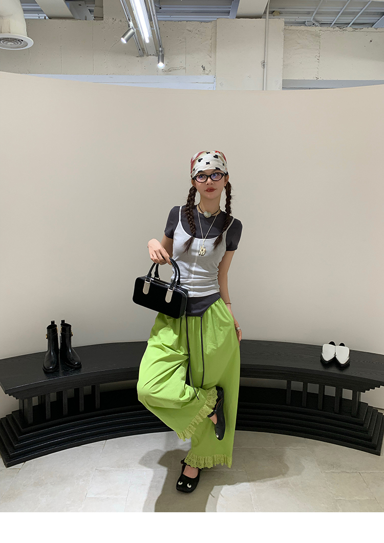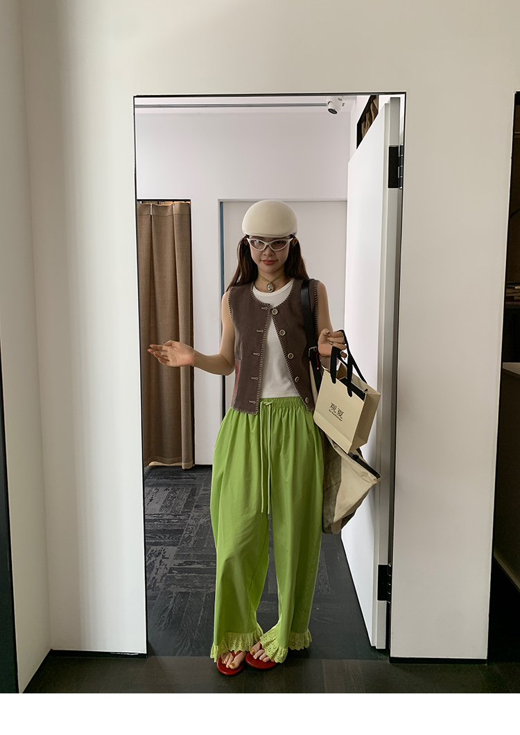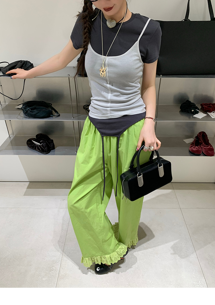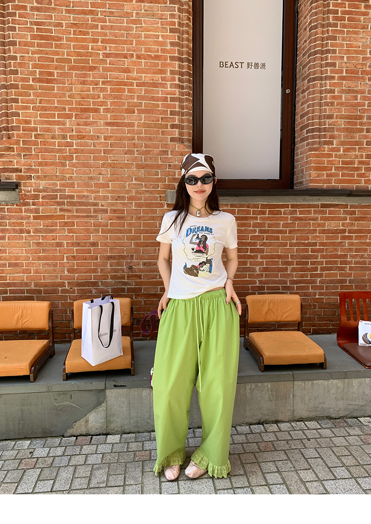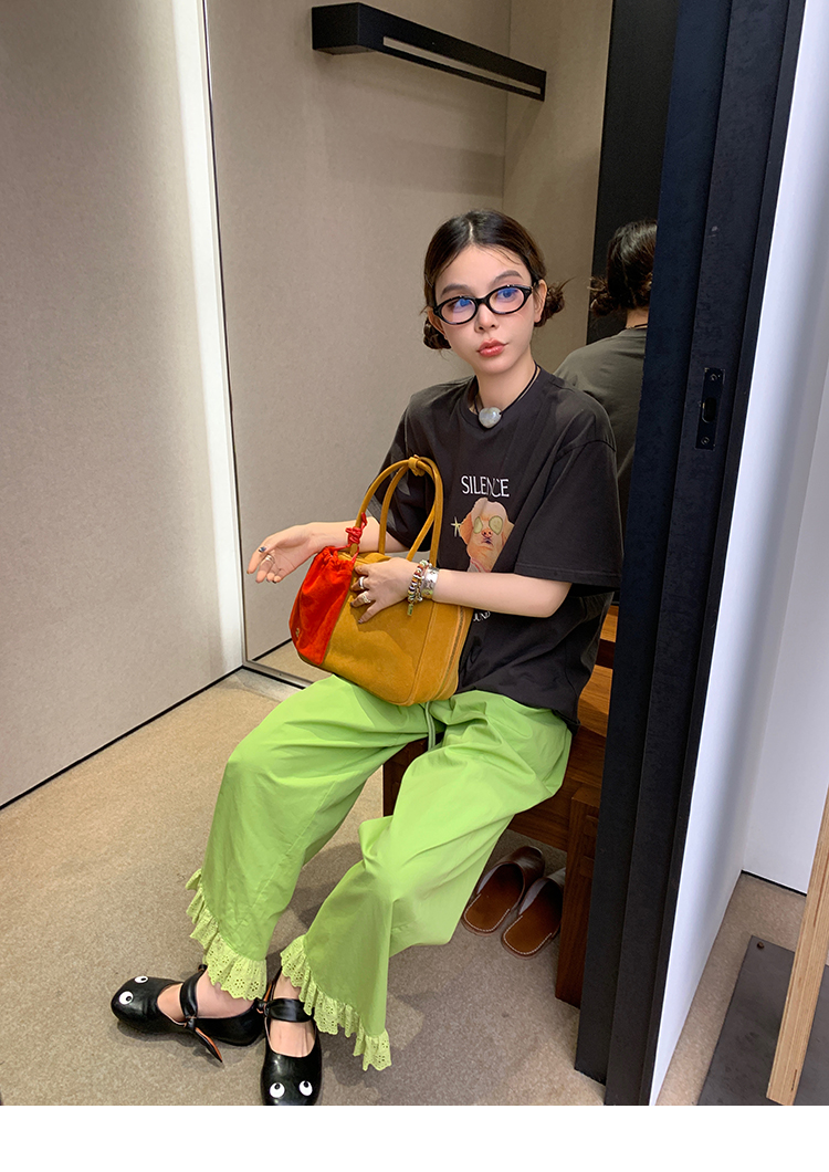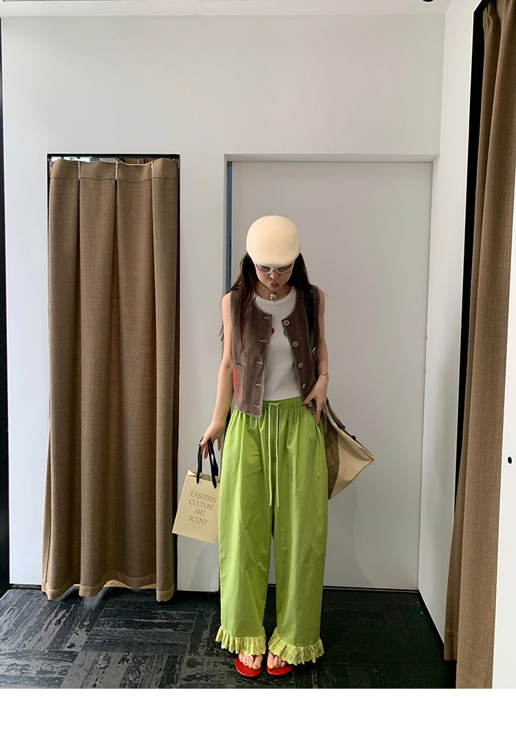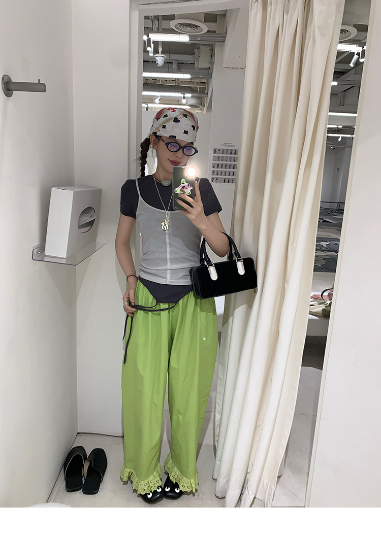 LRIB Fresh Apple Green Versatile Lace Lace Rope Casual Long Pants