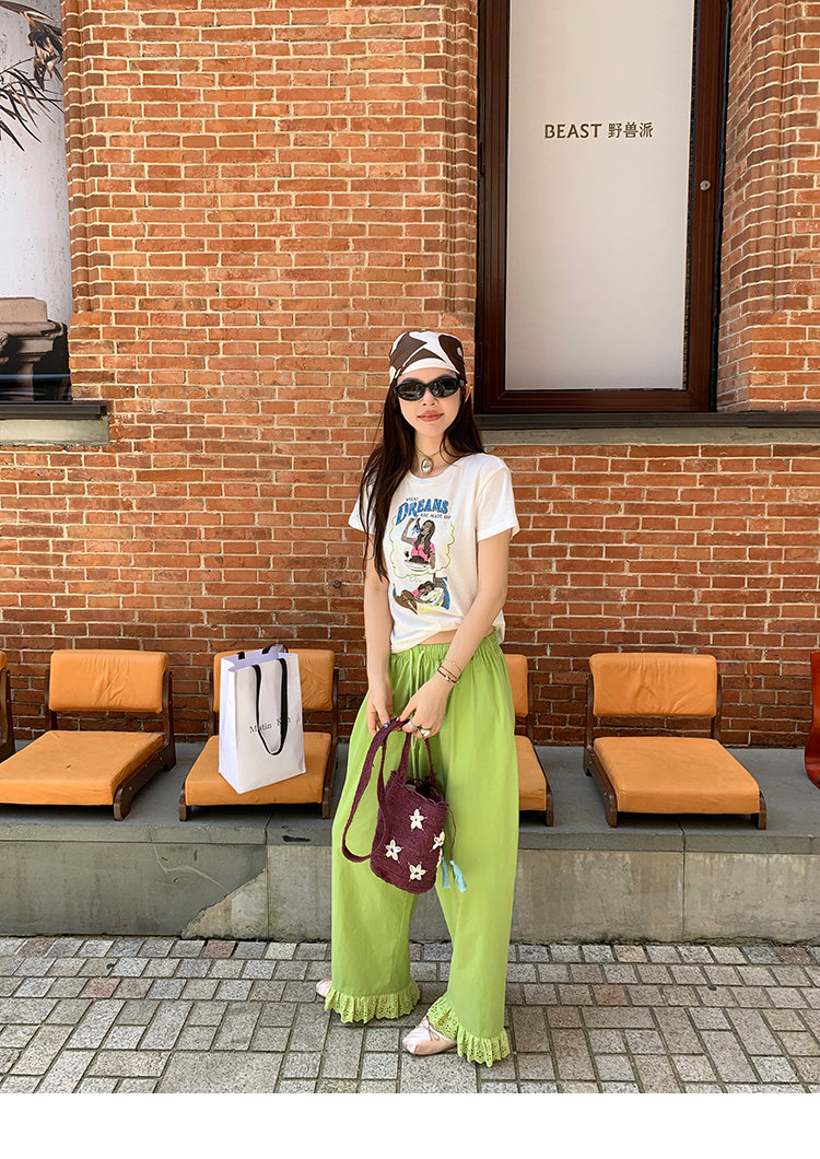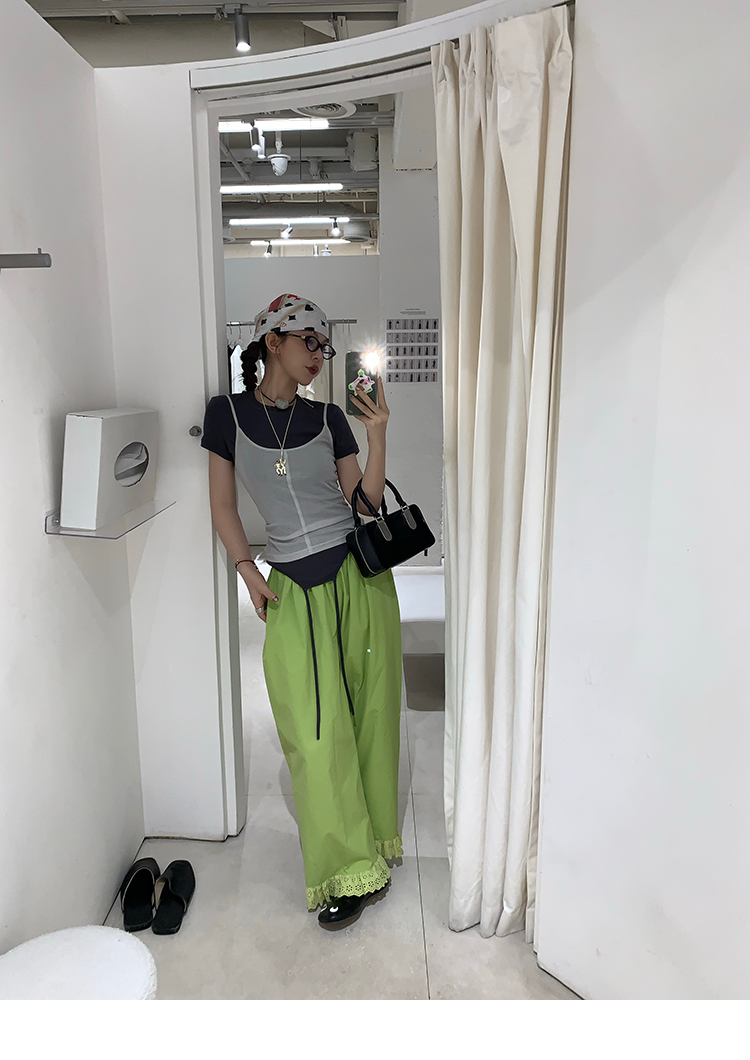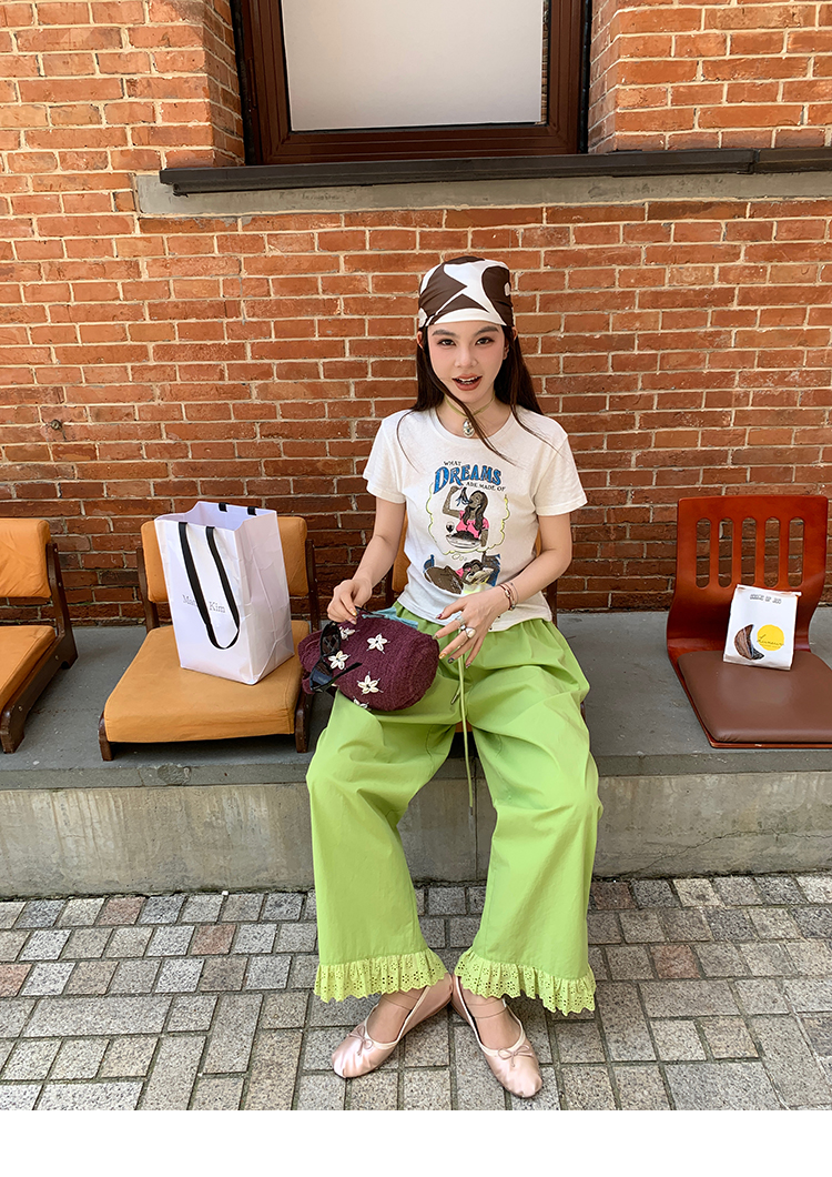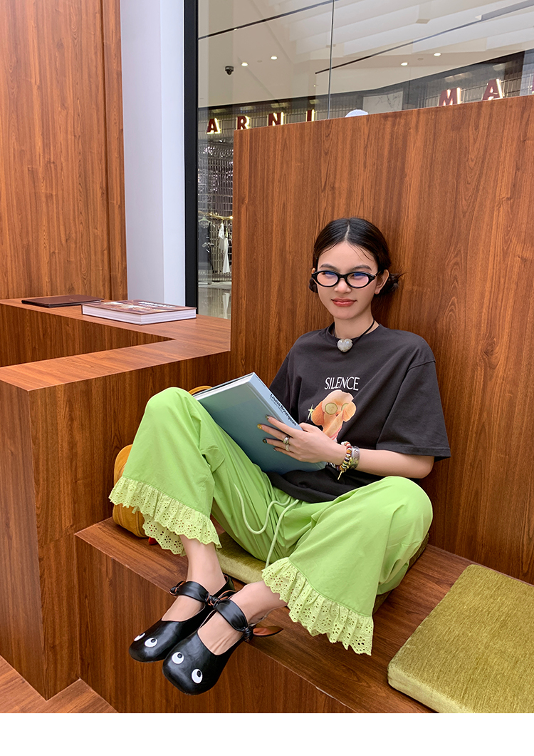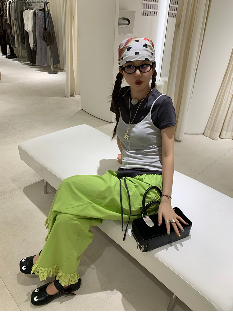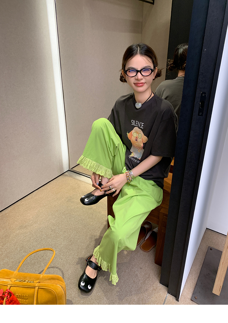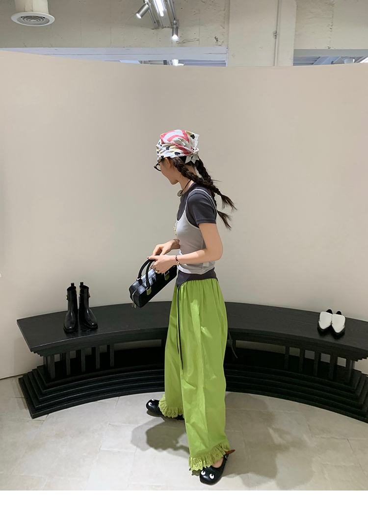 LRIB Fresh Apple Green Versatile Lace Lace Rope Casual Long Pants