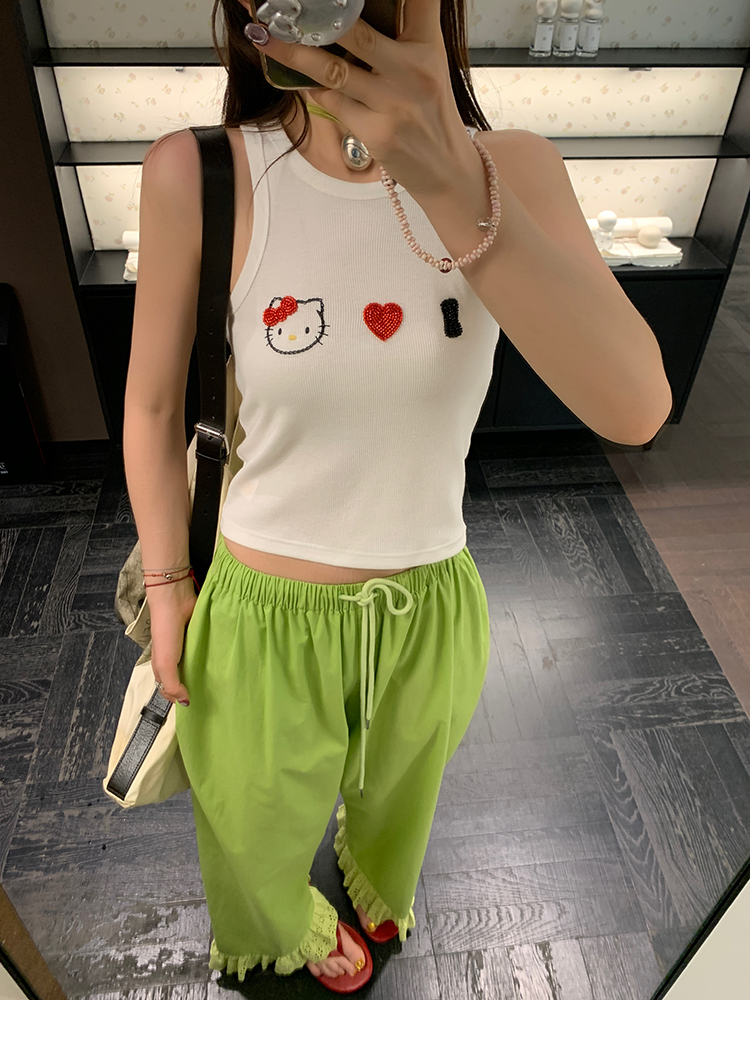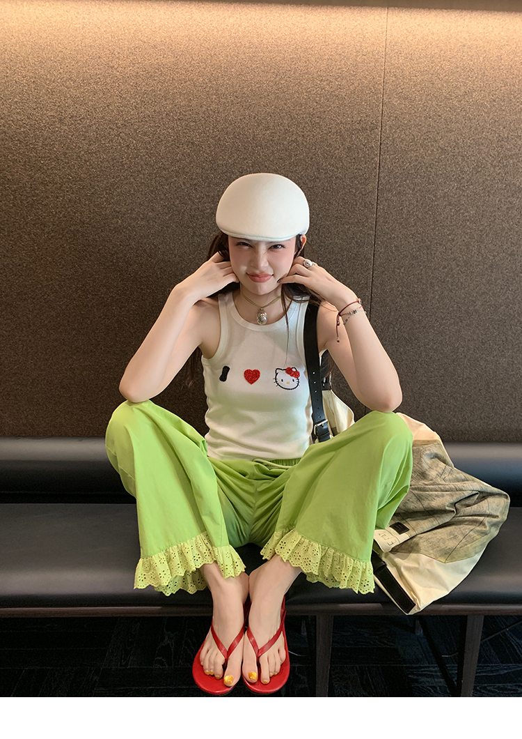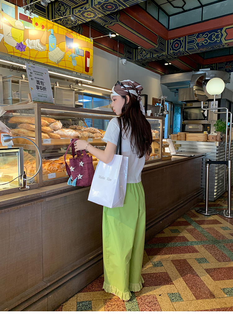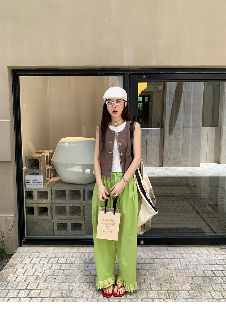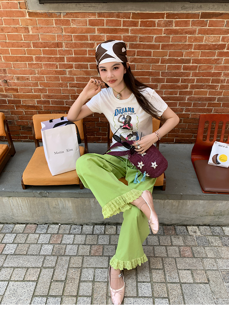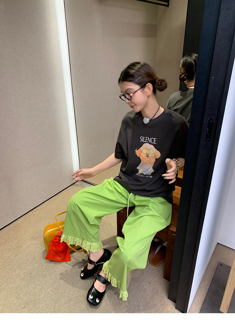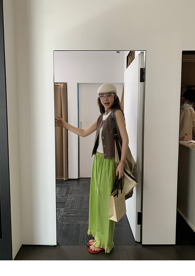 LRIB Fresh Apple Green Versatile Lace Lace Rope Casual Long Pants
