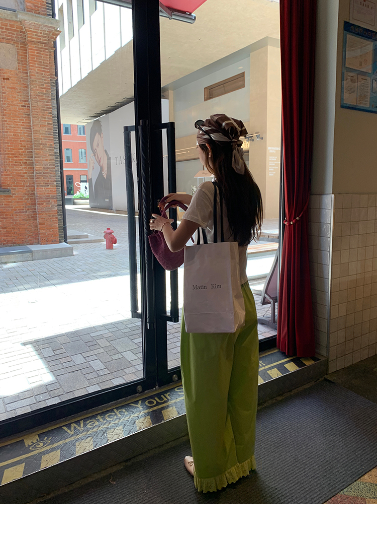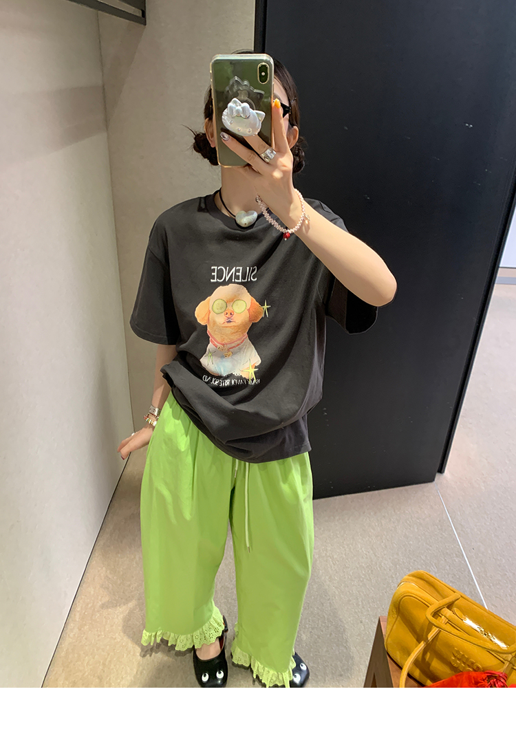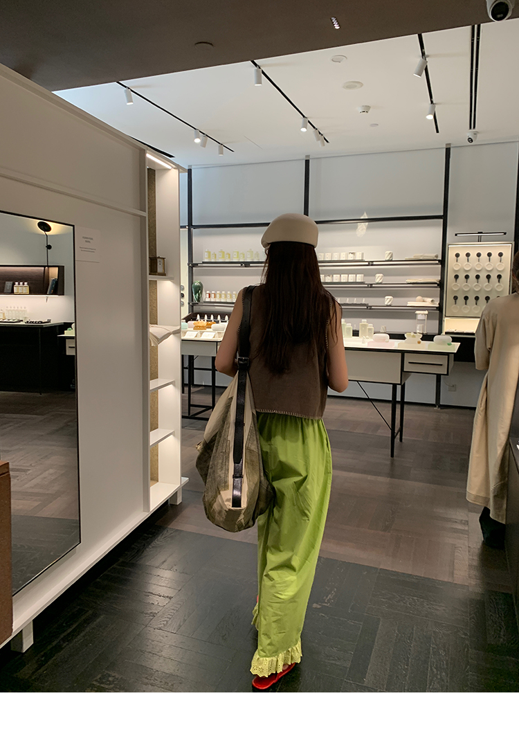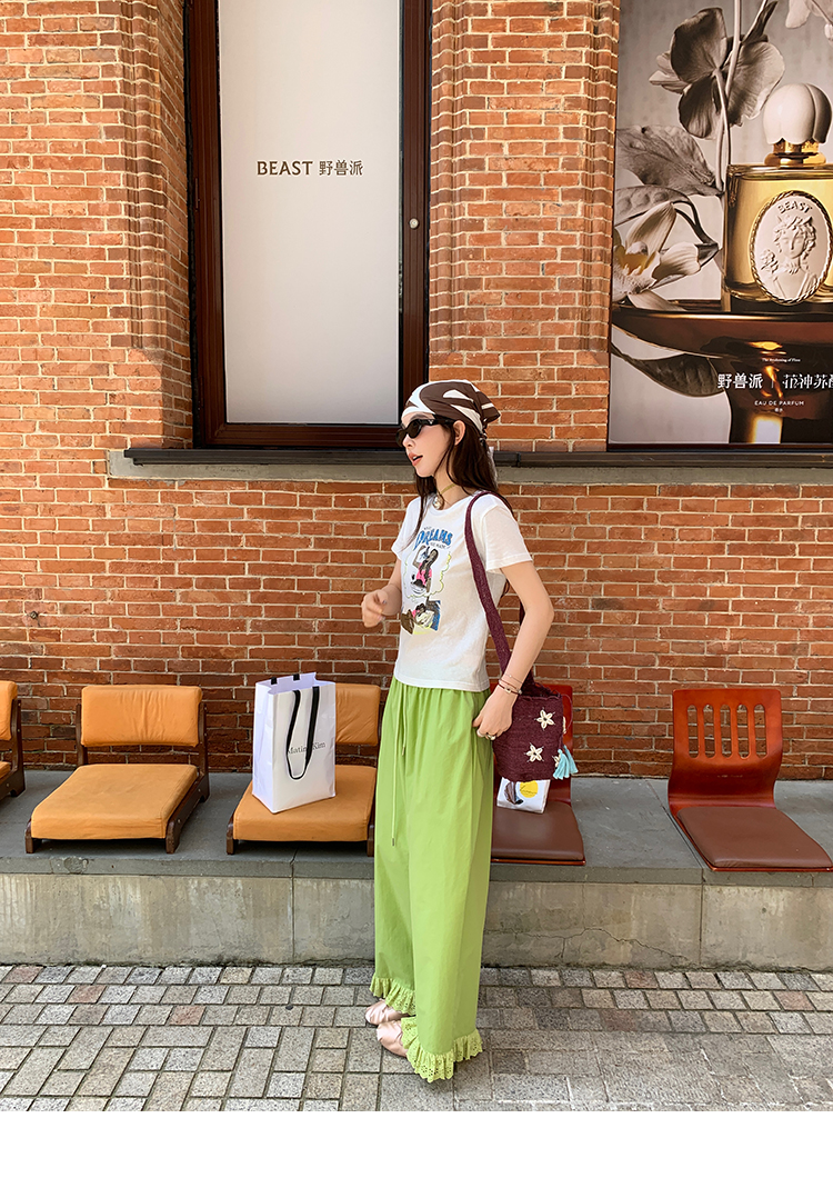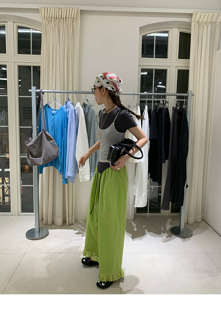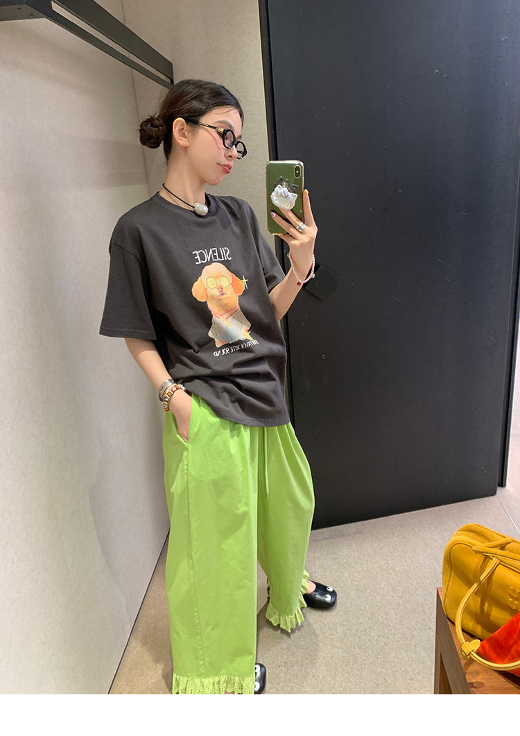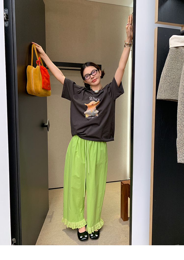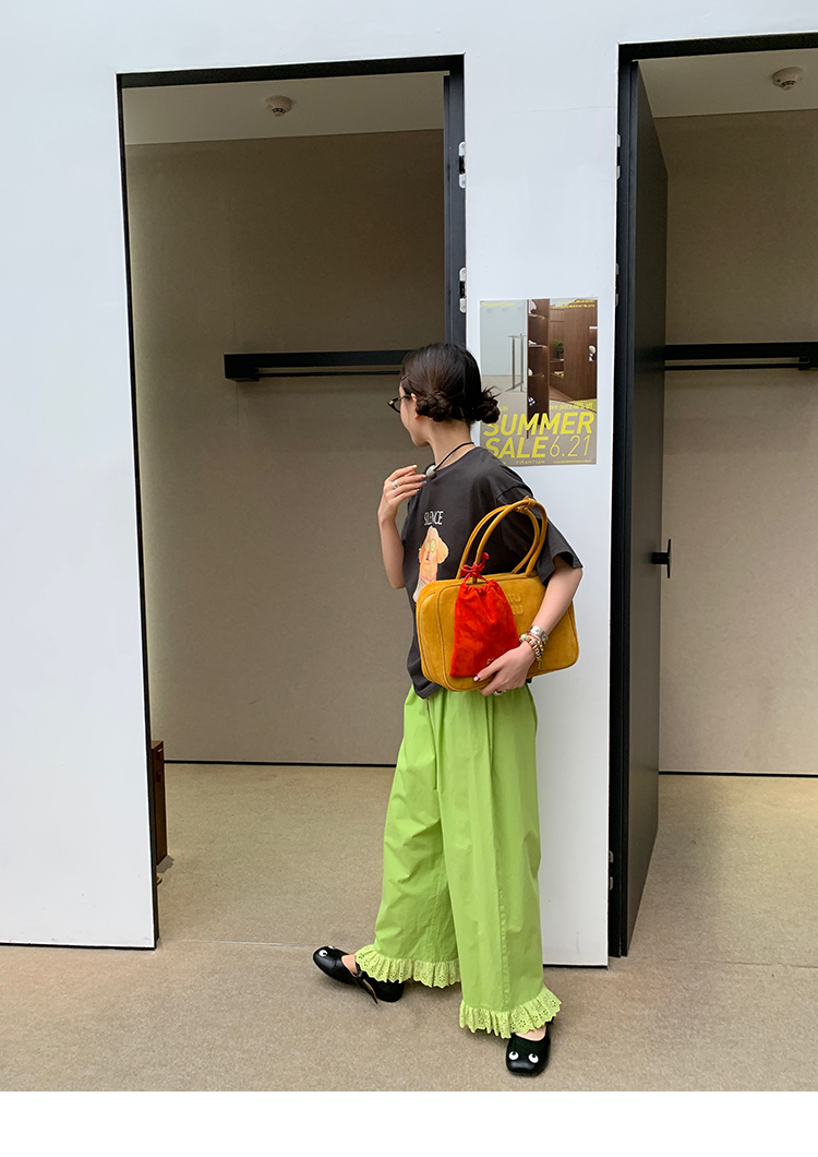 LRIB Fresh Apple Green Versatile Lace Lace Rope Casual Long Pants