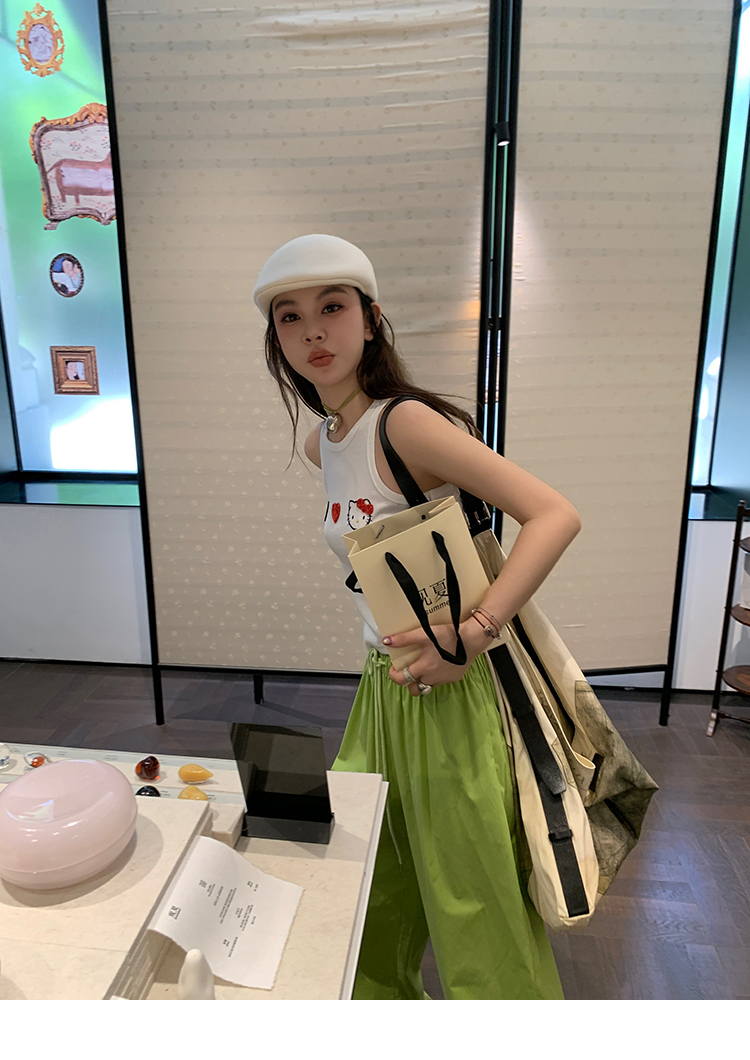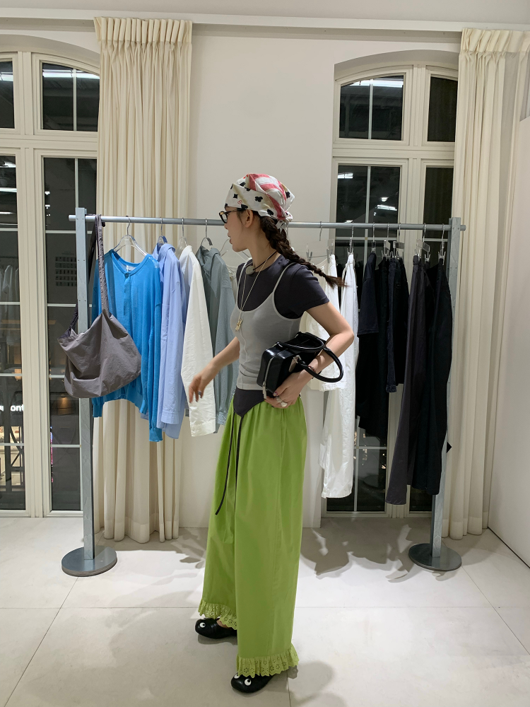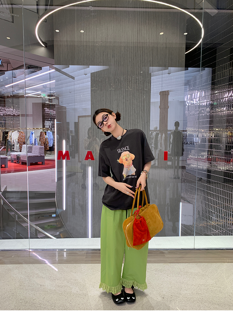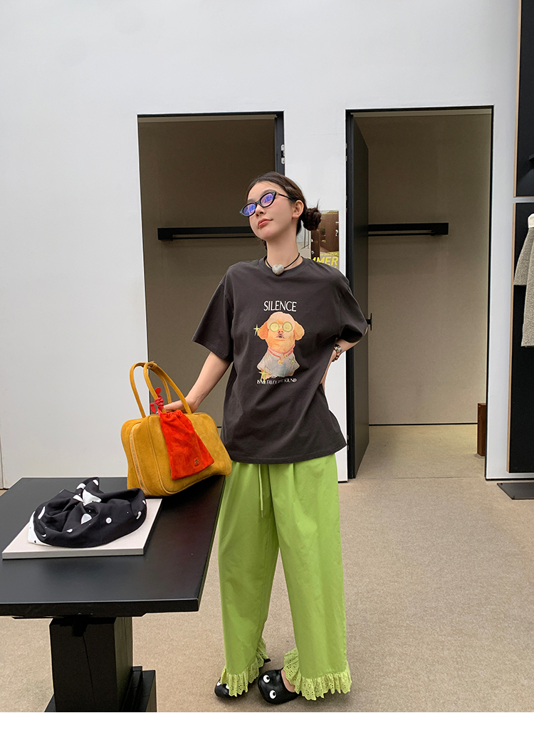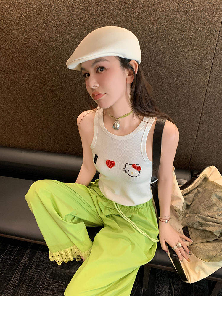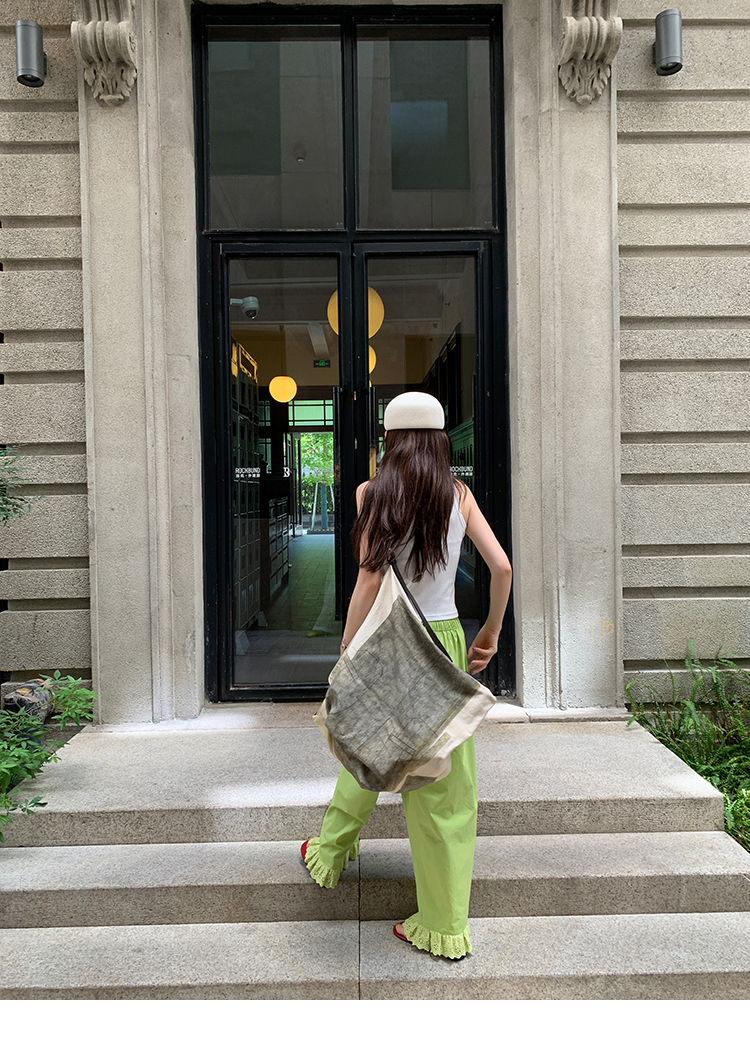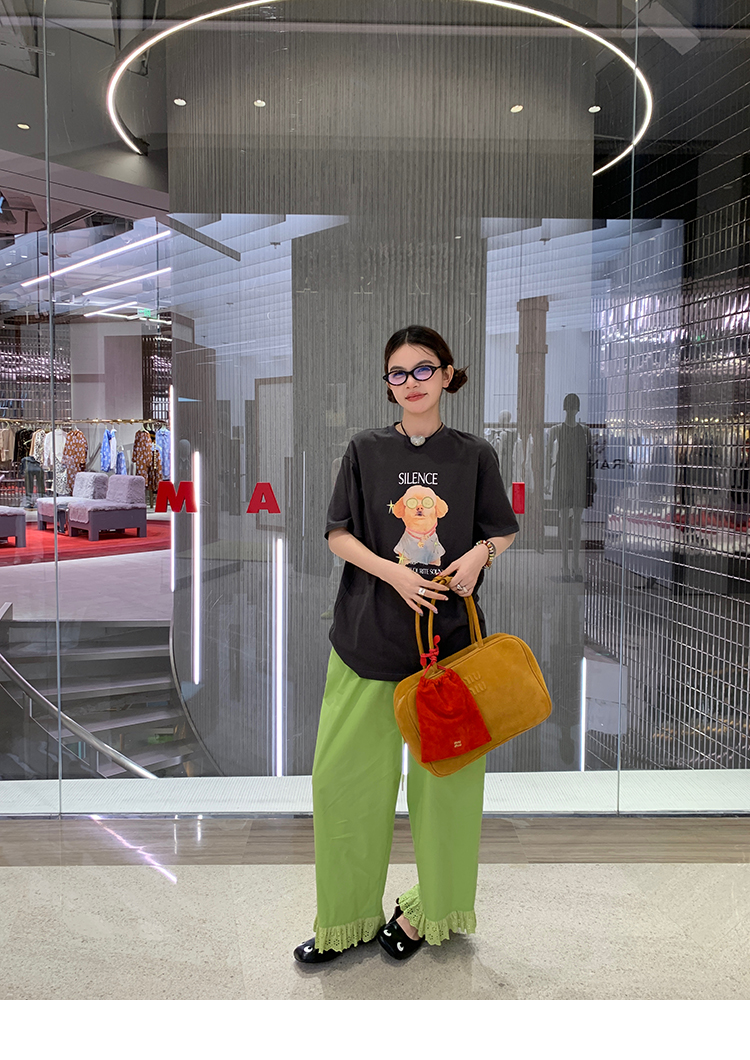 LRIB Fresh Apple Green Versatile Lace Lace Rope Casual Long Pants