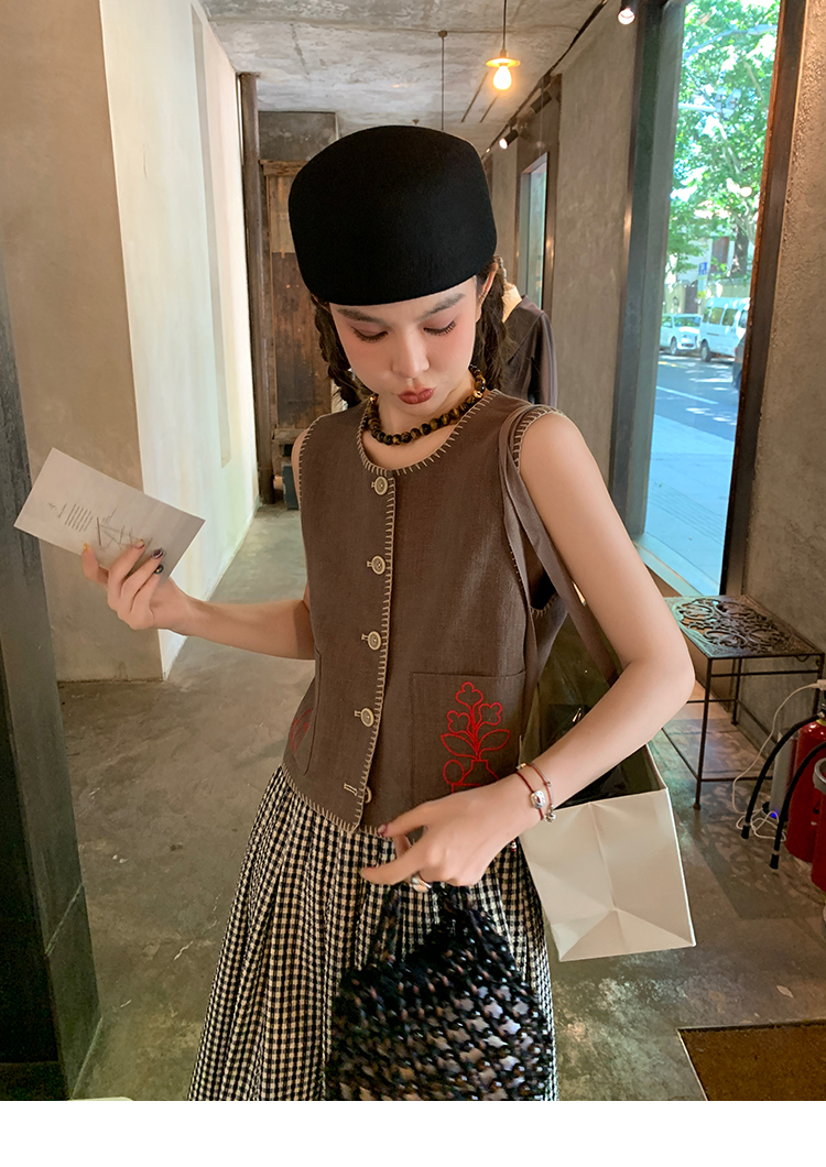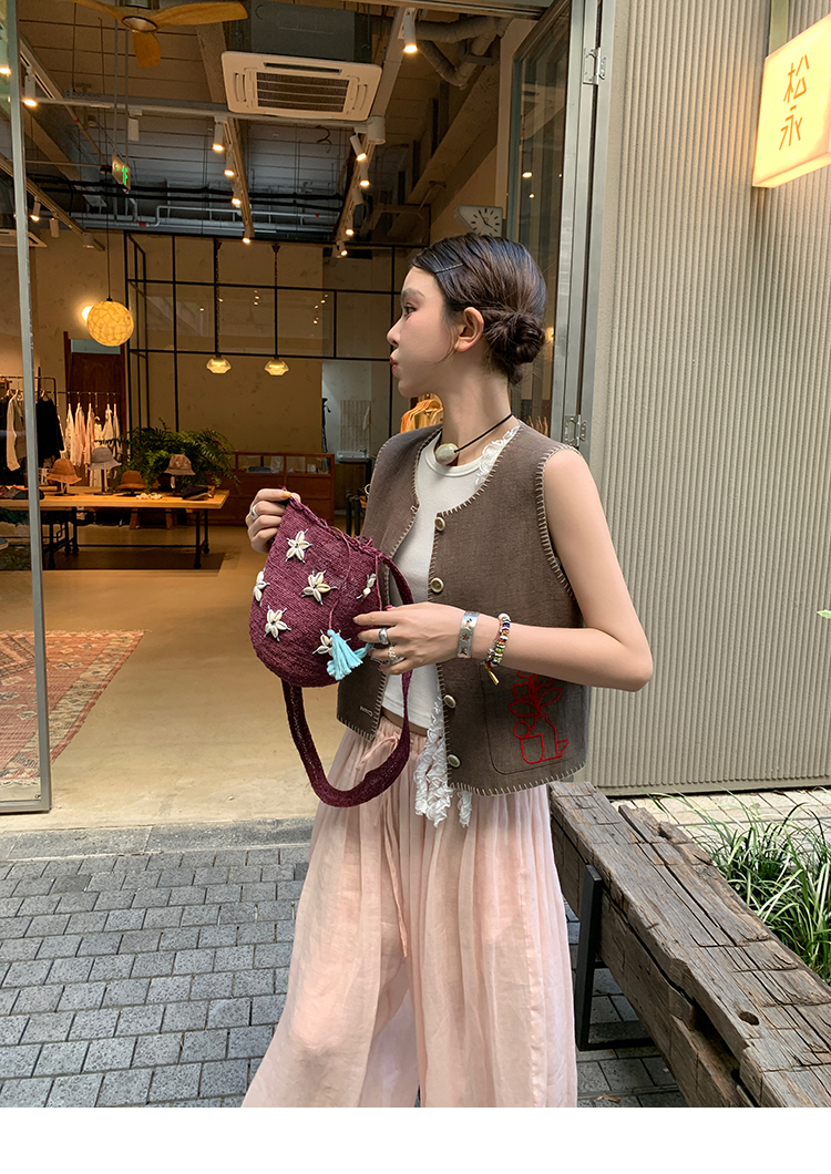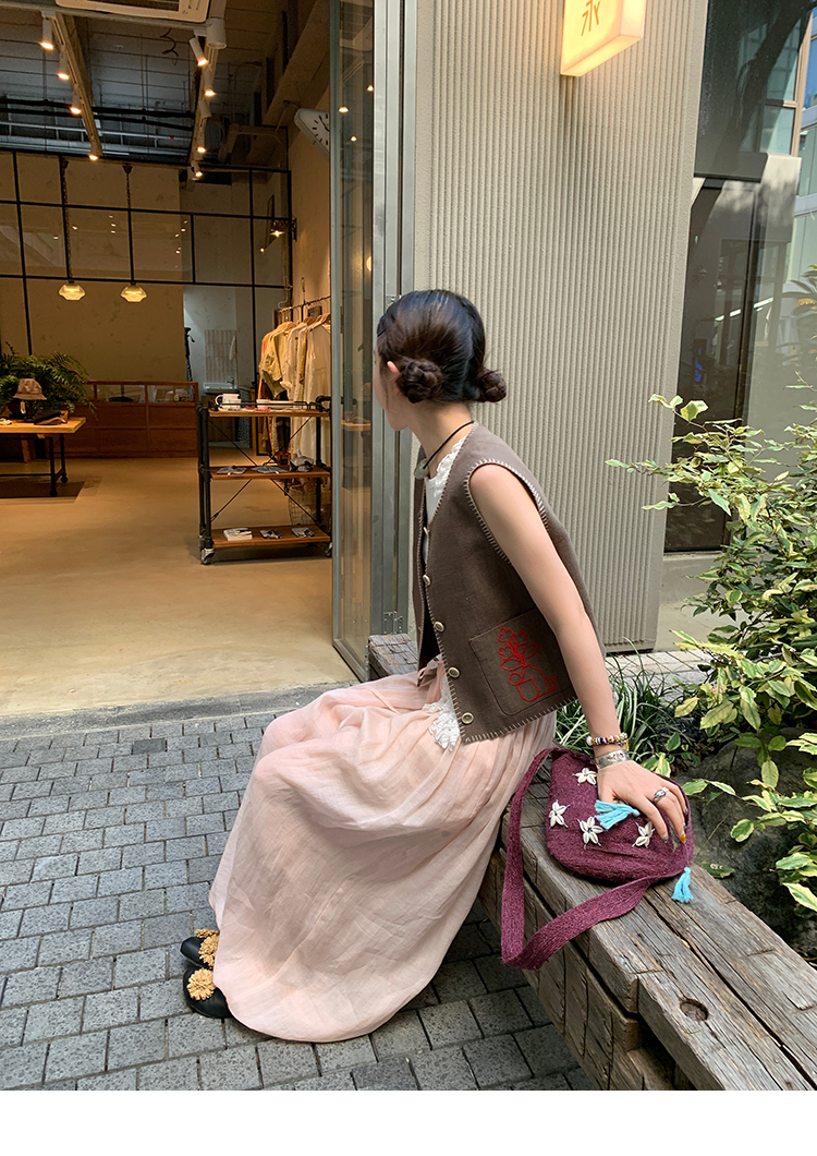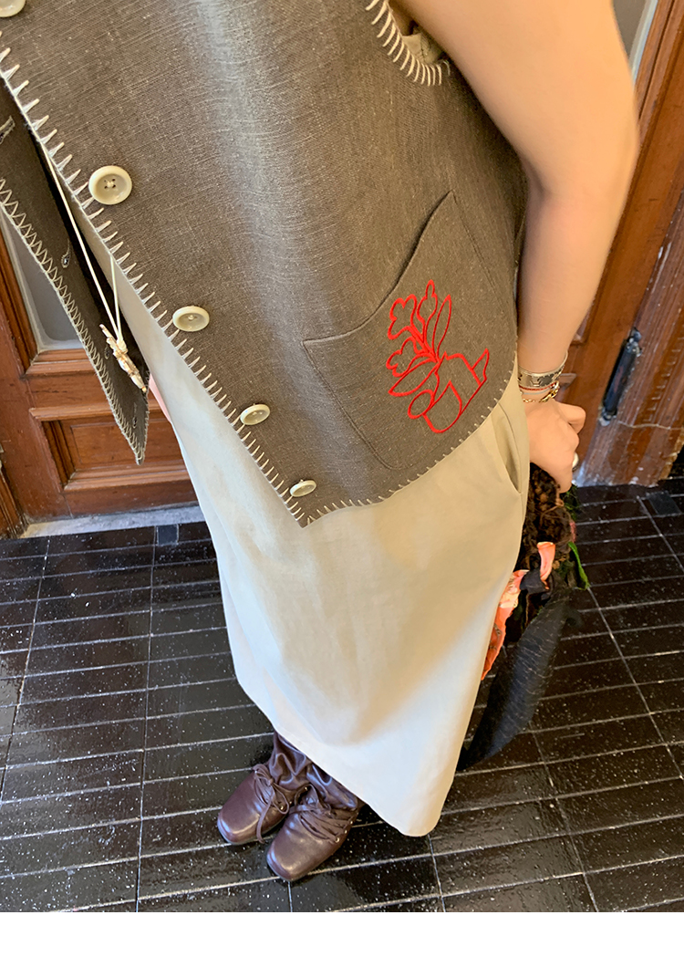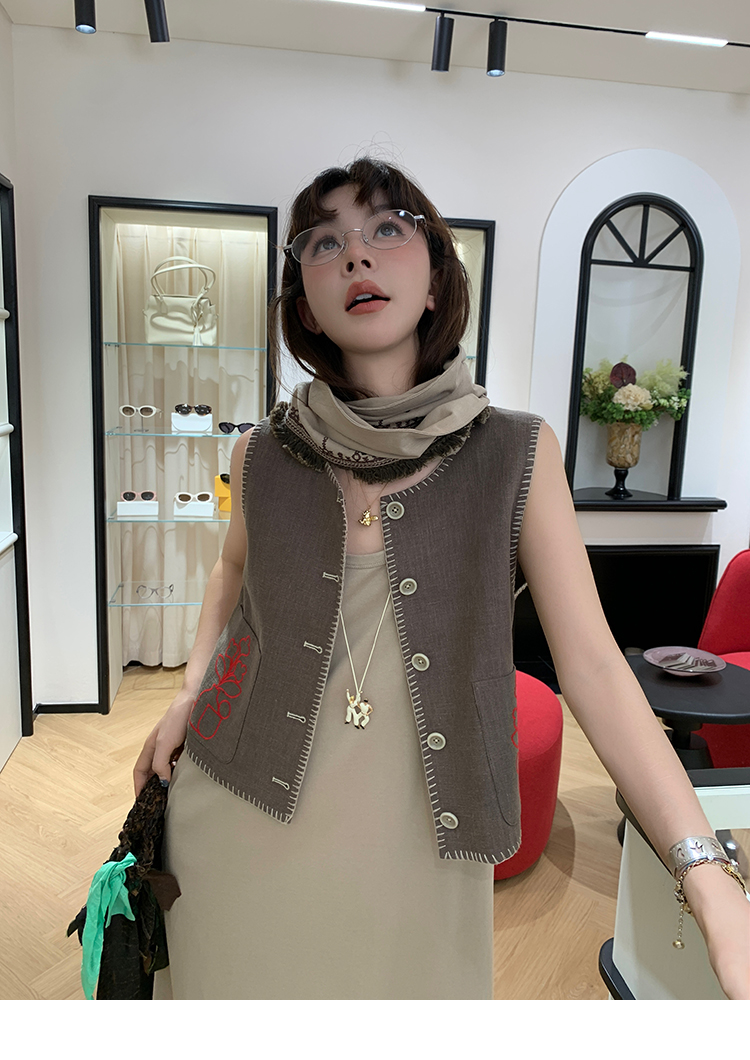 LRIB Mocha Brown Embroidered Edge-Stacked Jacket