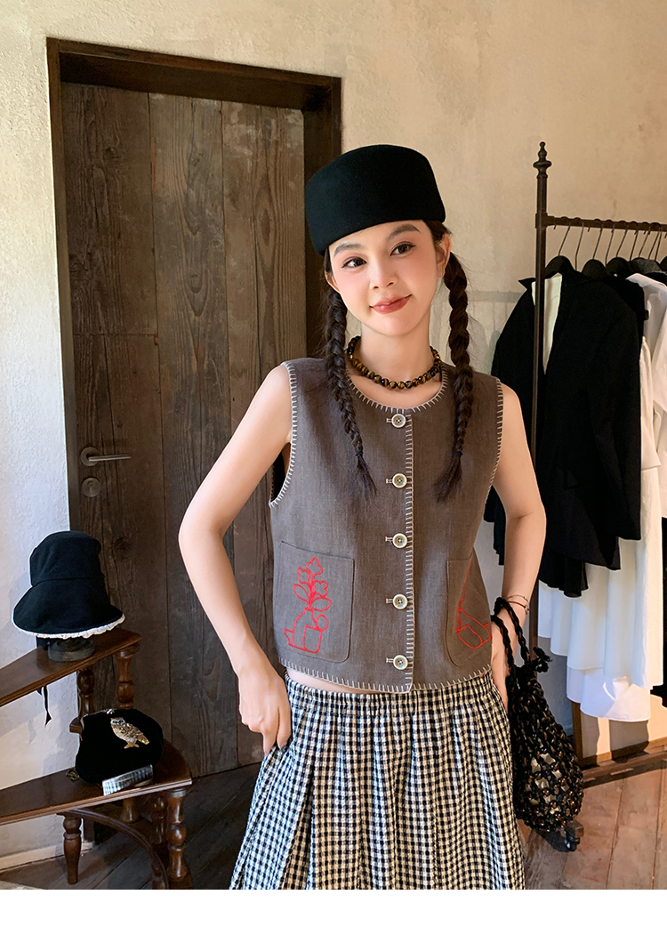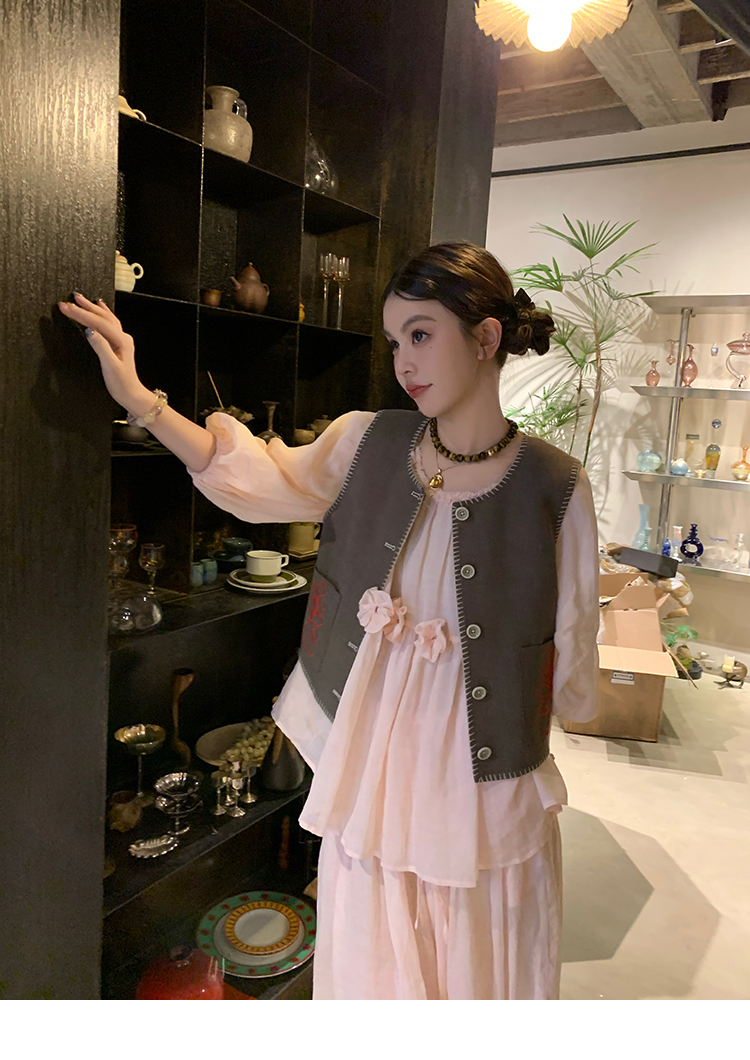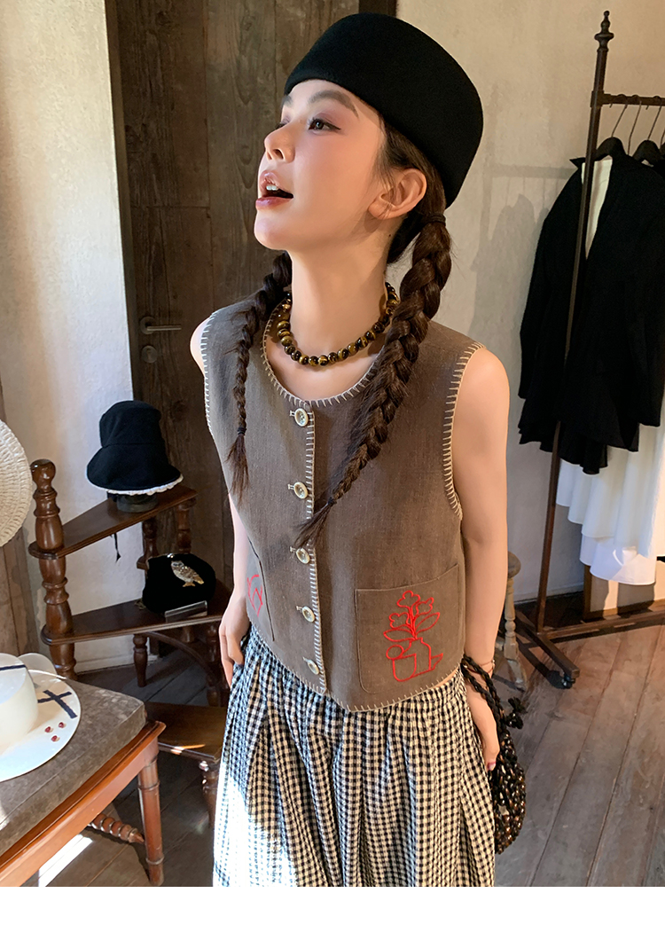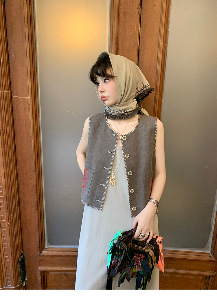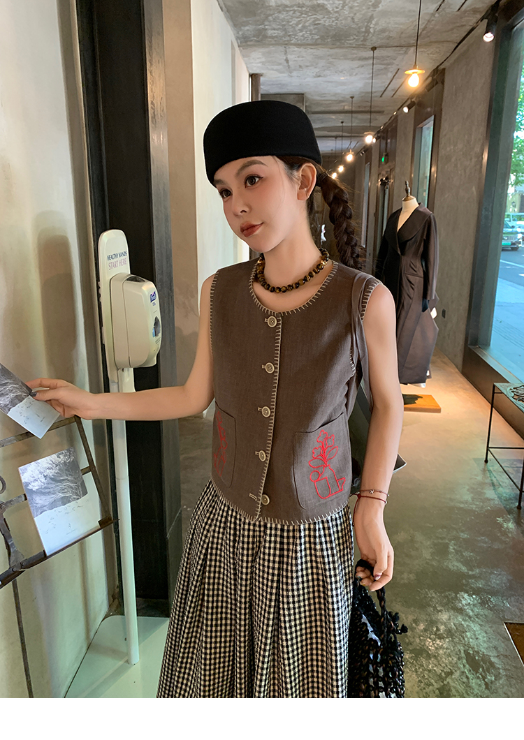 LRIB Mocha Brown Embroidered Edge-Stacked Jacket
