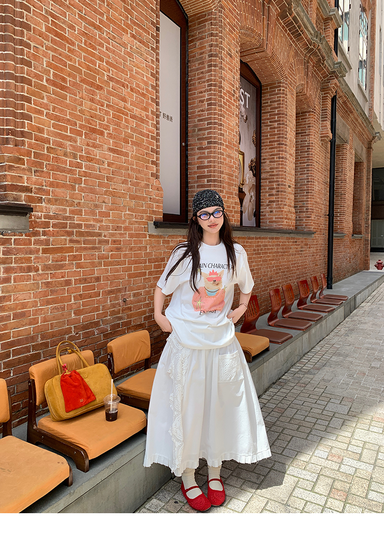 LRIB Fun Dog Print Lazy Gray Cotton Soft White Short Sleeve T-shirt