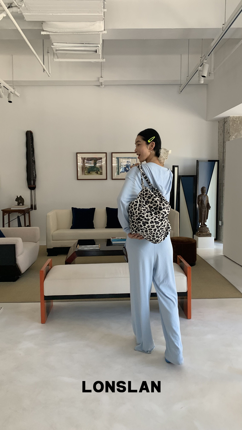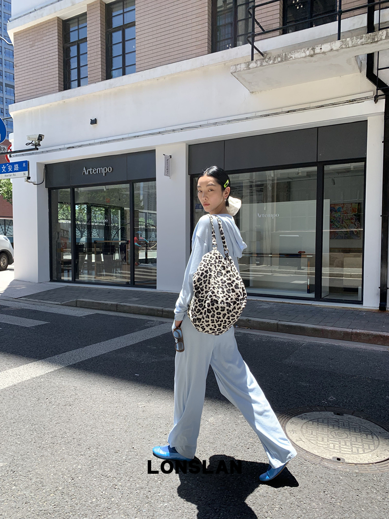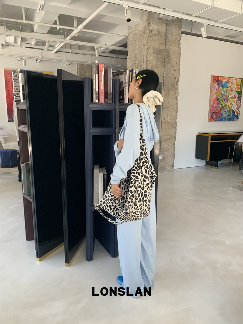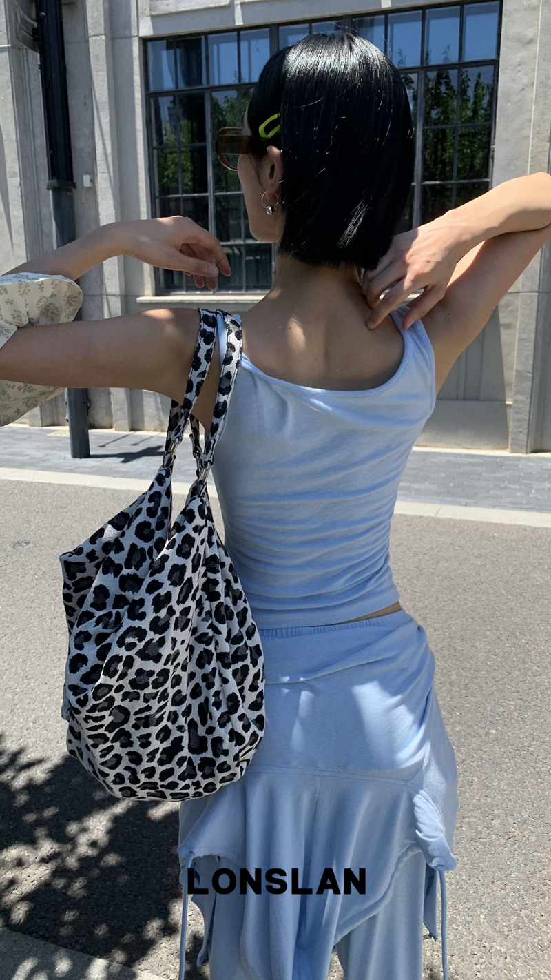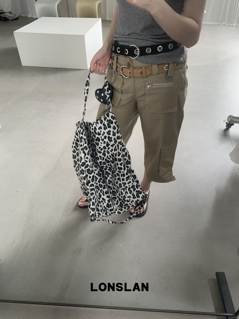 LONSLAN Black and White Leopard Print Fabric Shoulder Bag