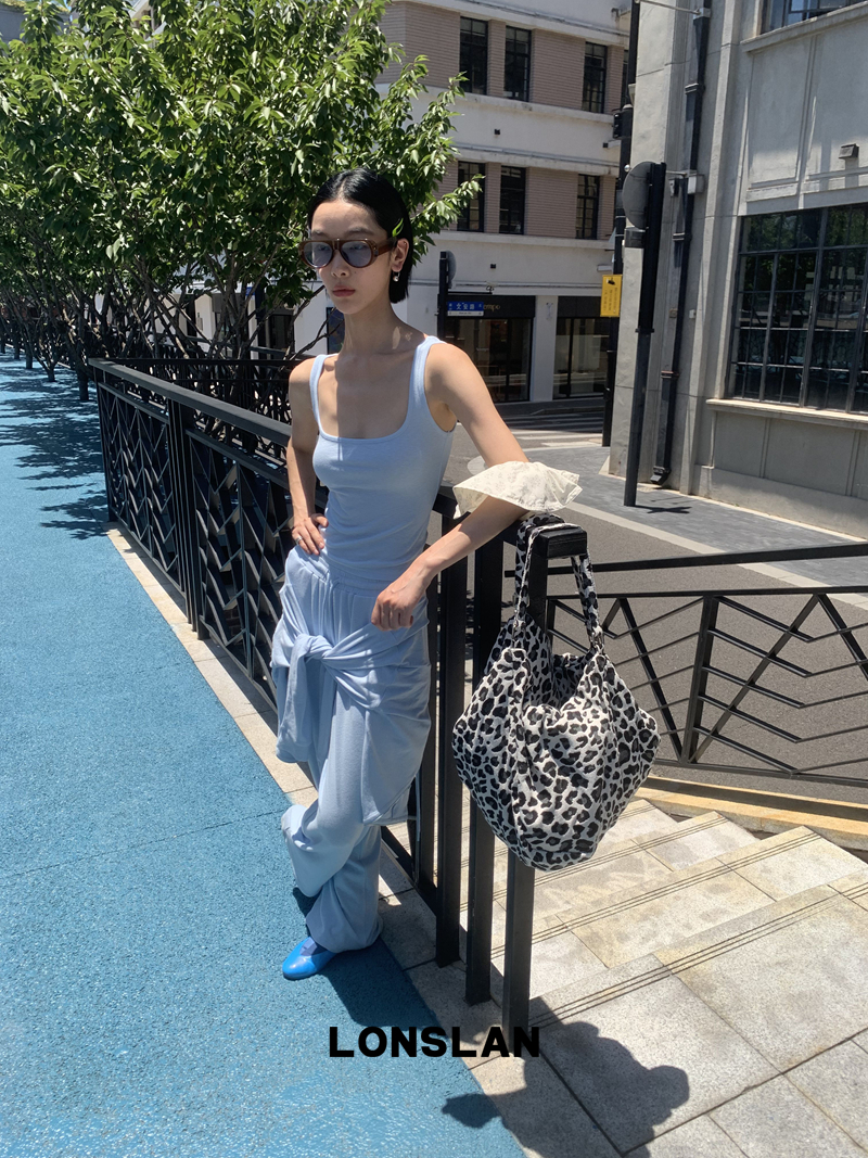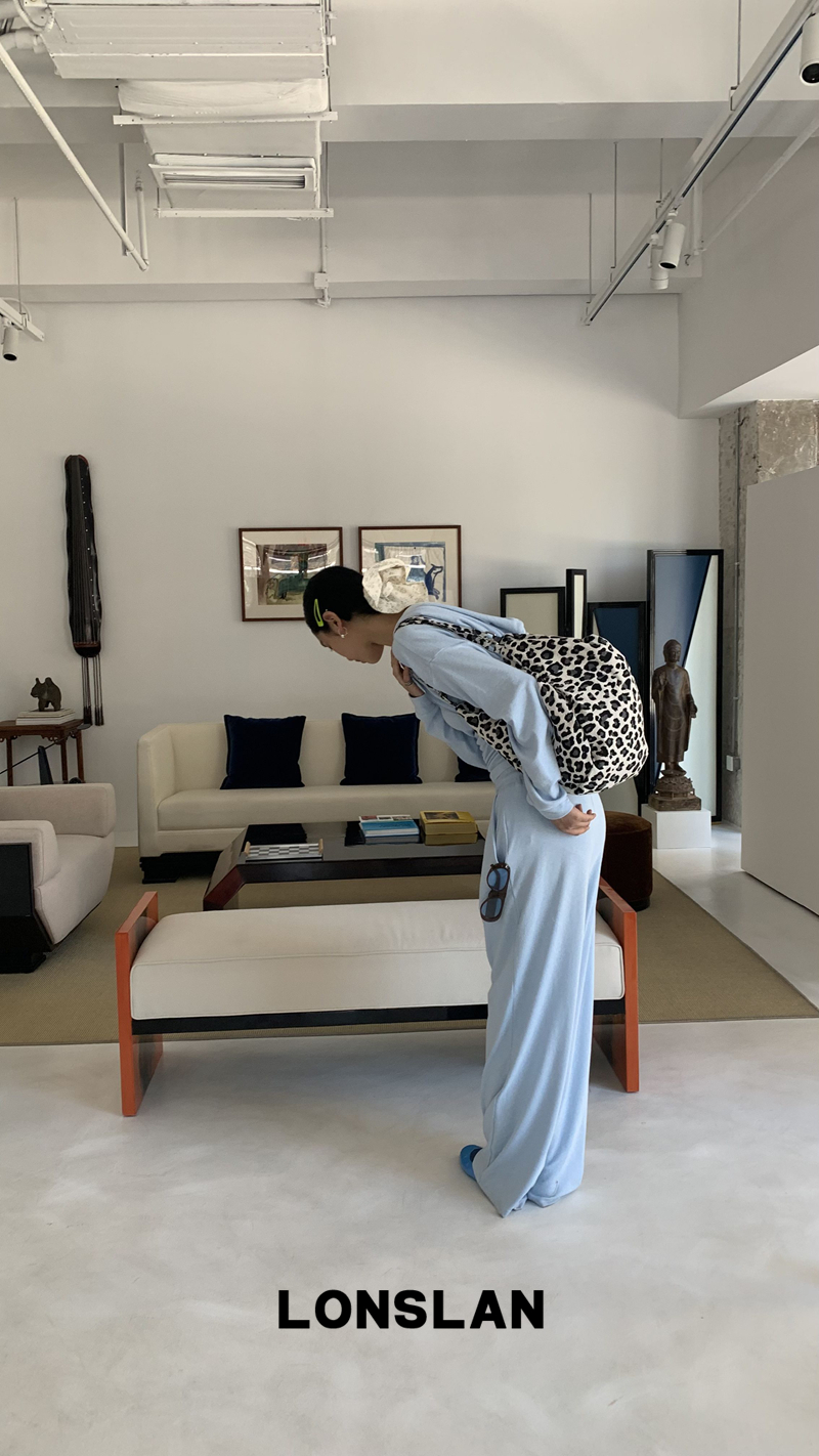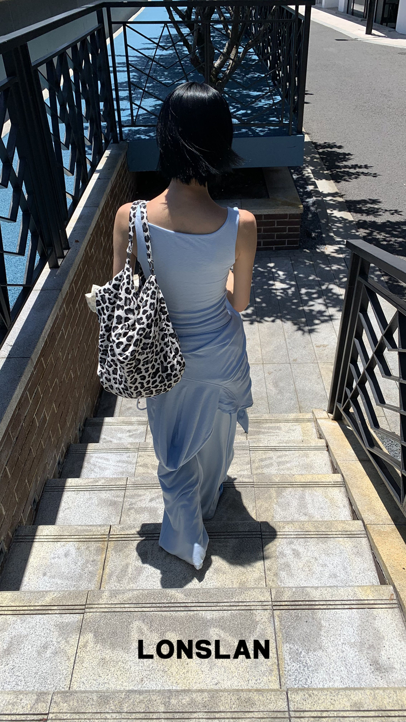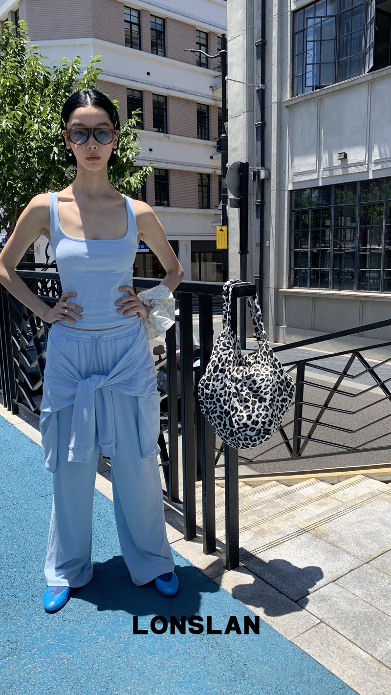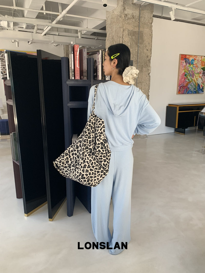LONSLAN Black and White Leopard Print Fabric Shoulder Bag