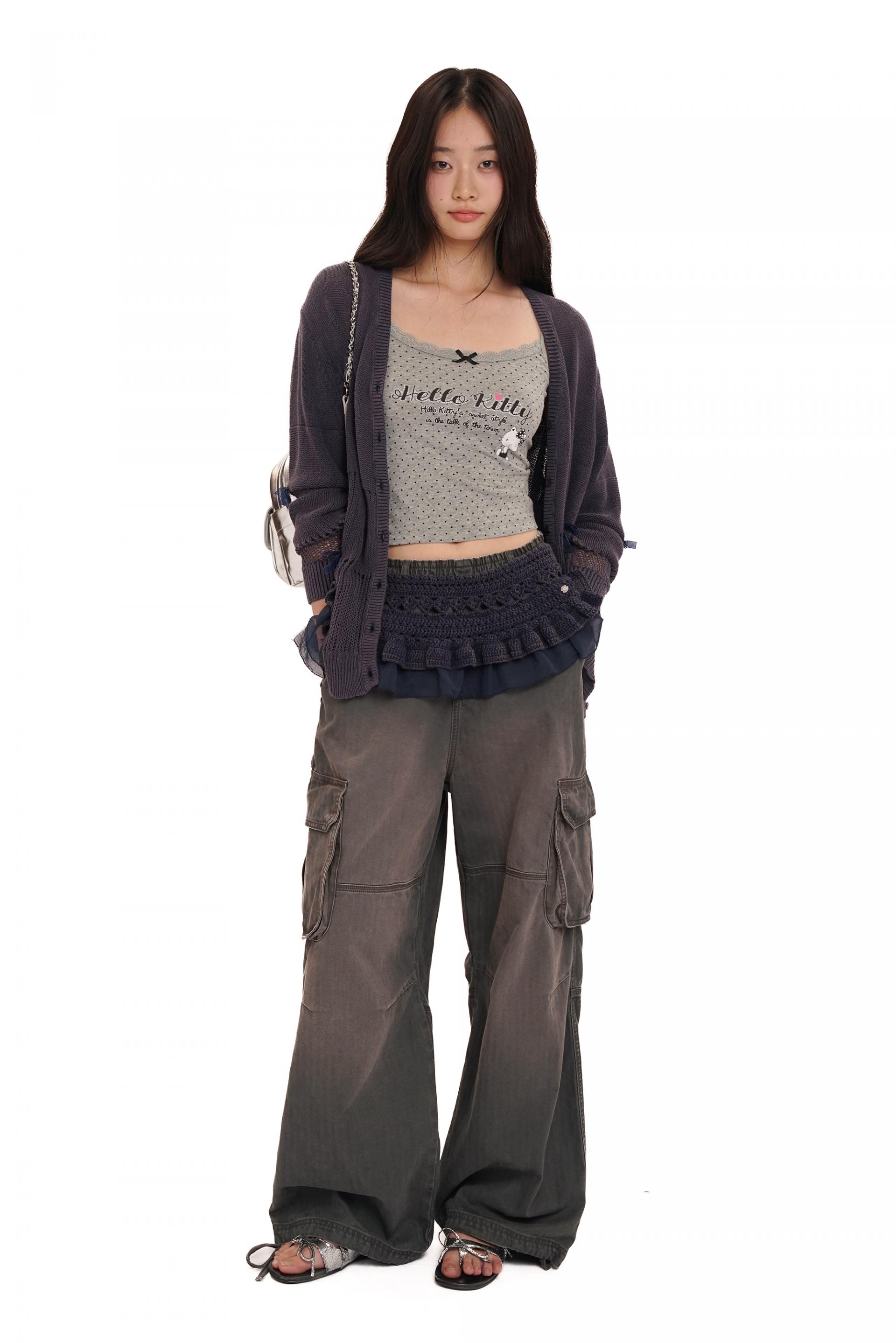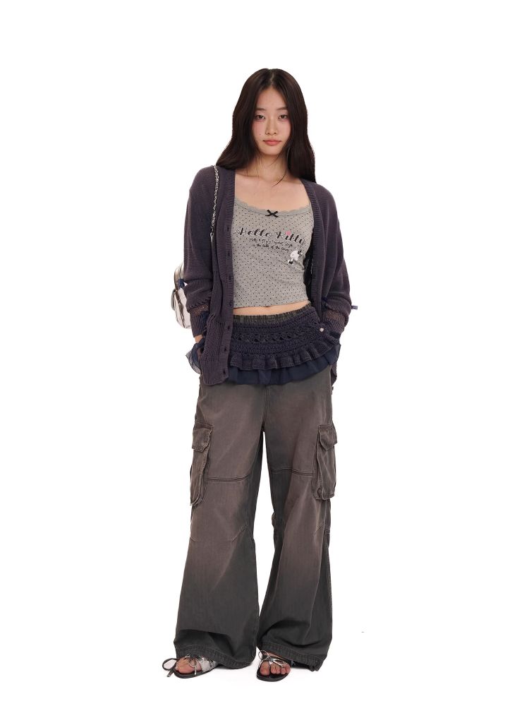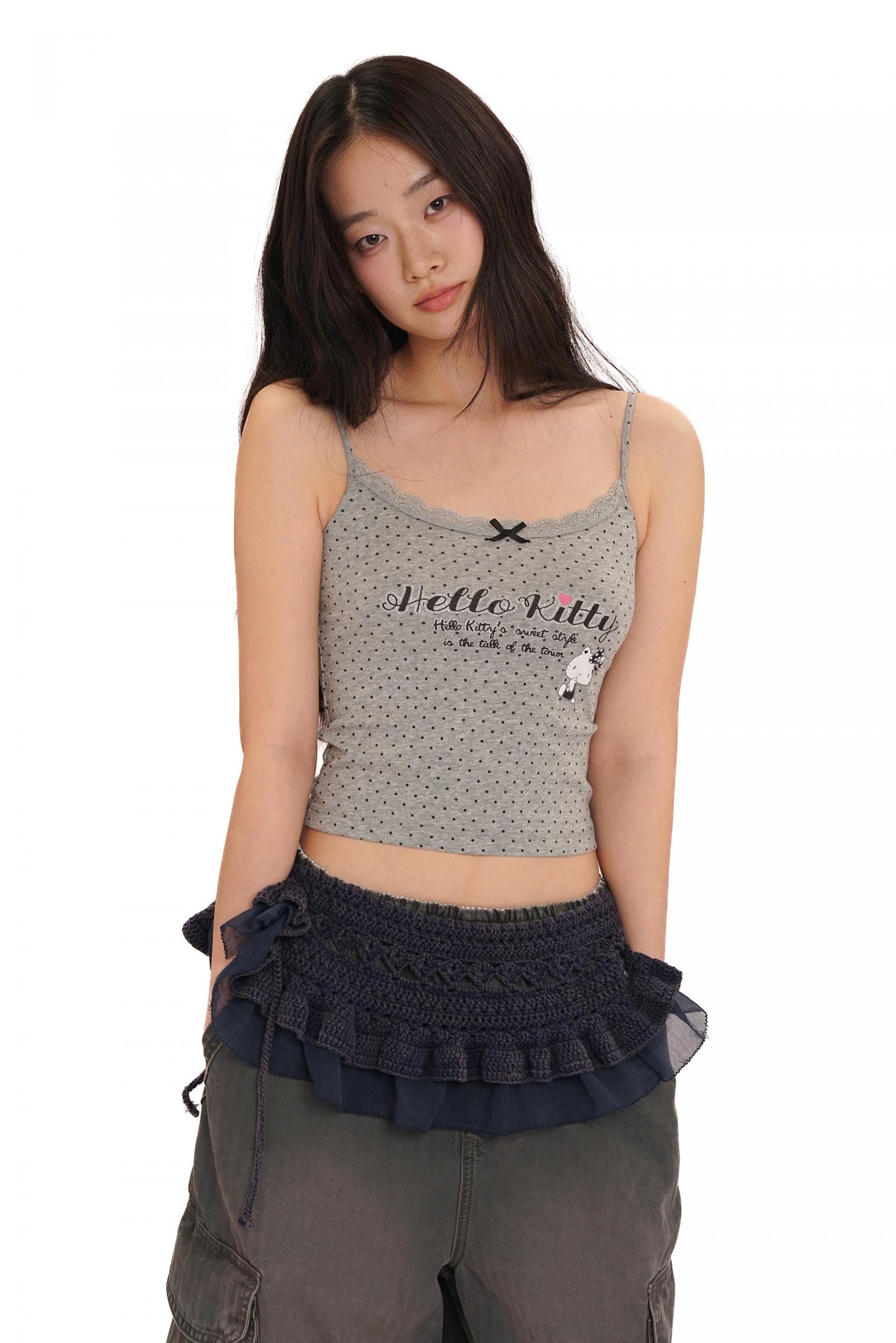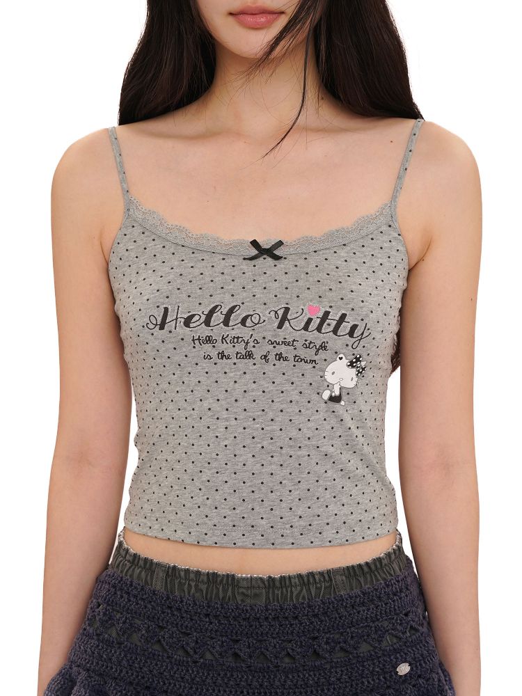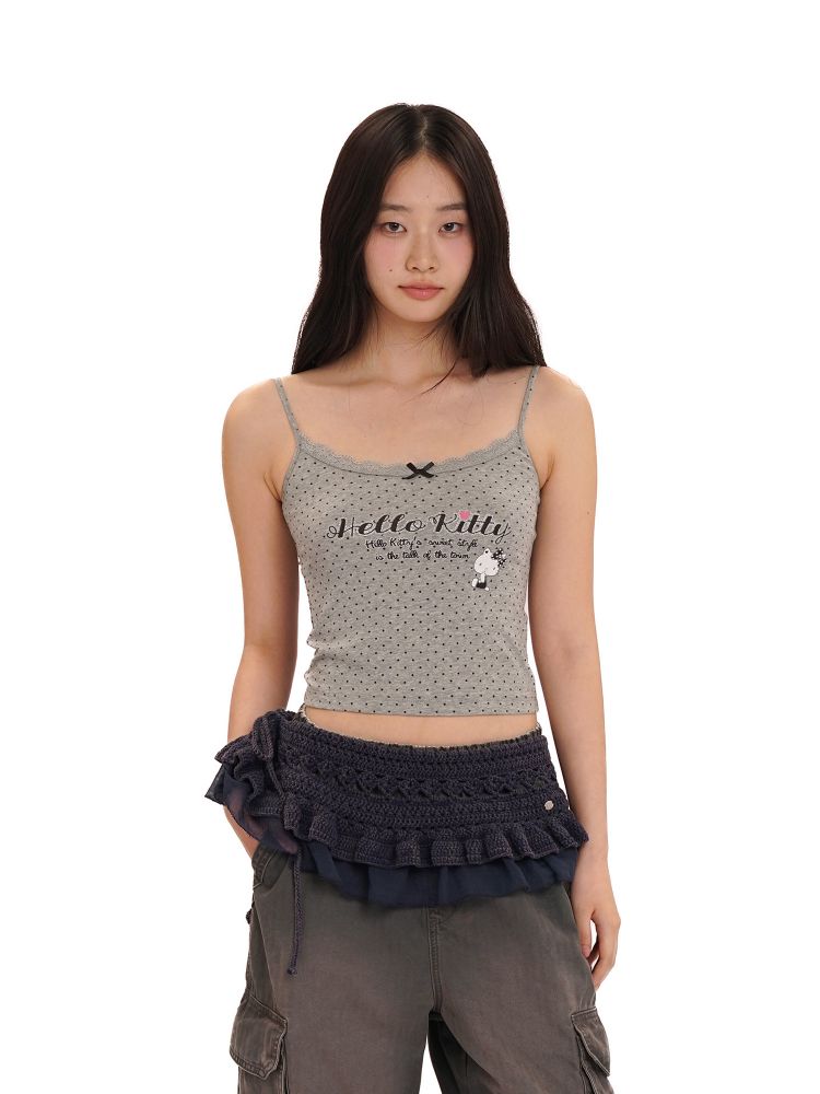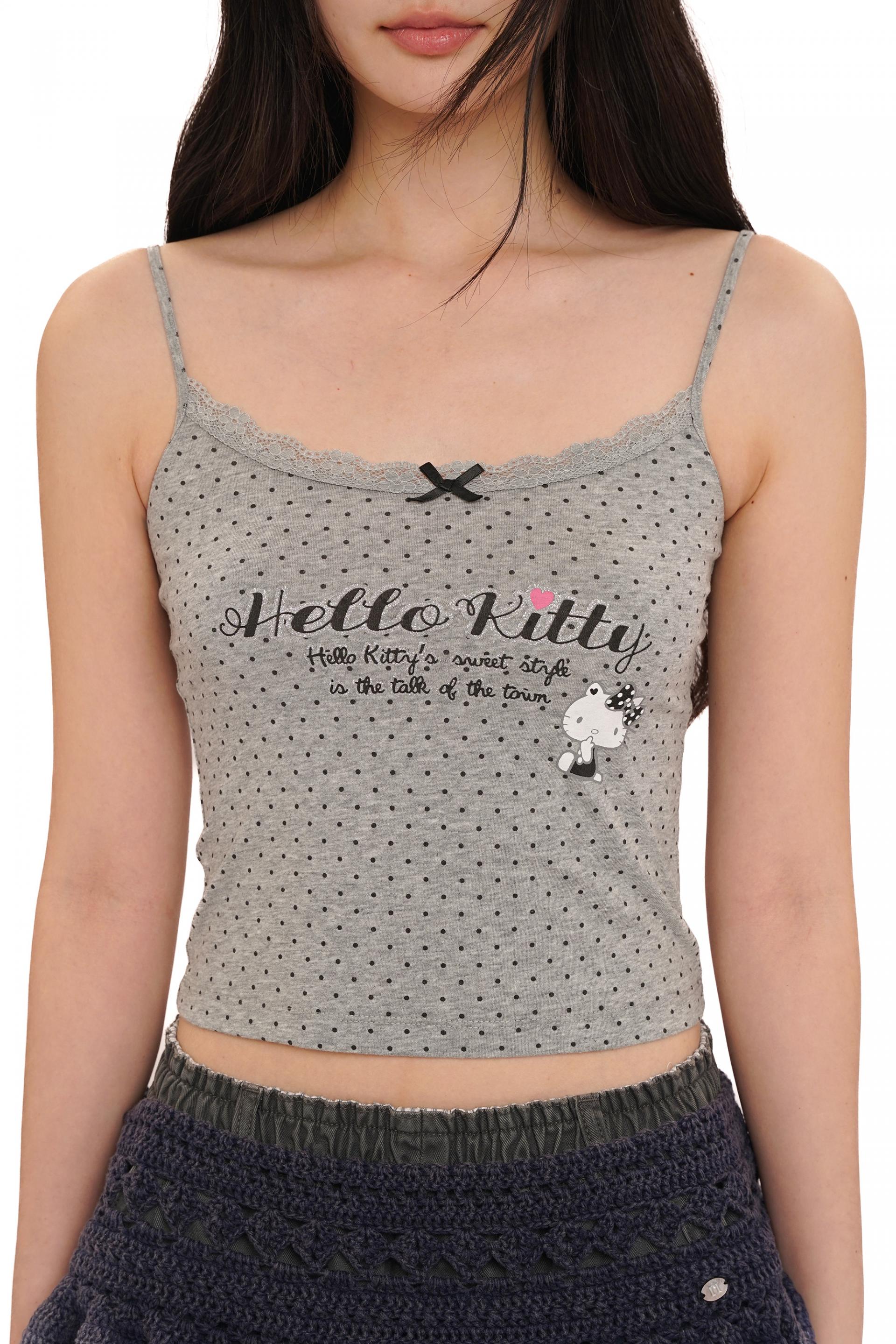 Moromoro Hello Kitty Retro Polka Dot Glitter Print Lace Trim Tank TopNEW