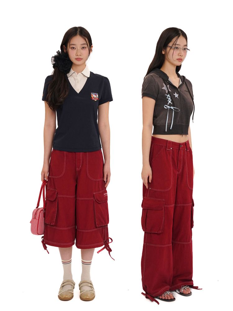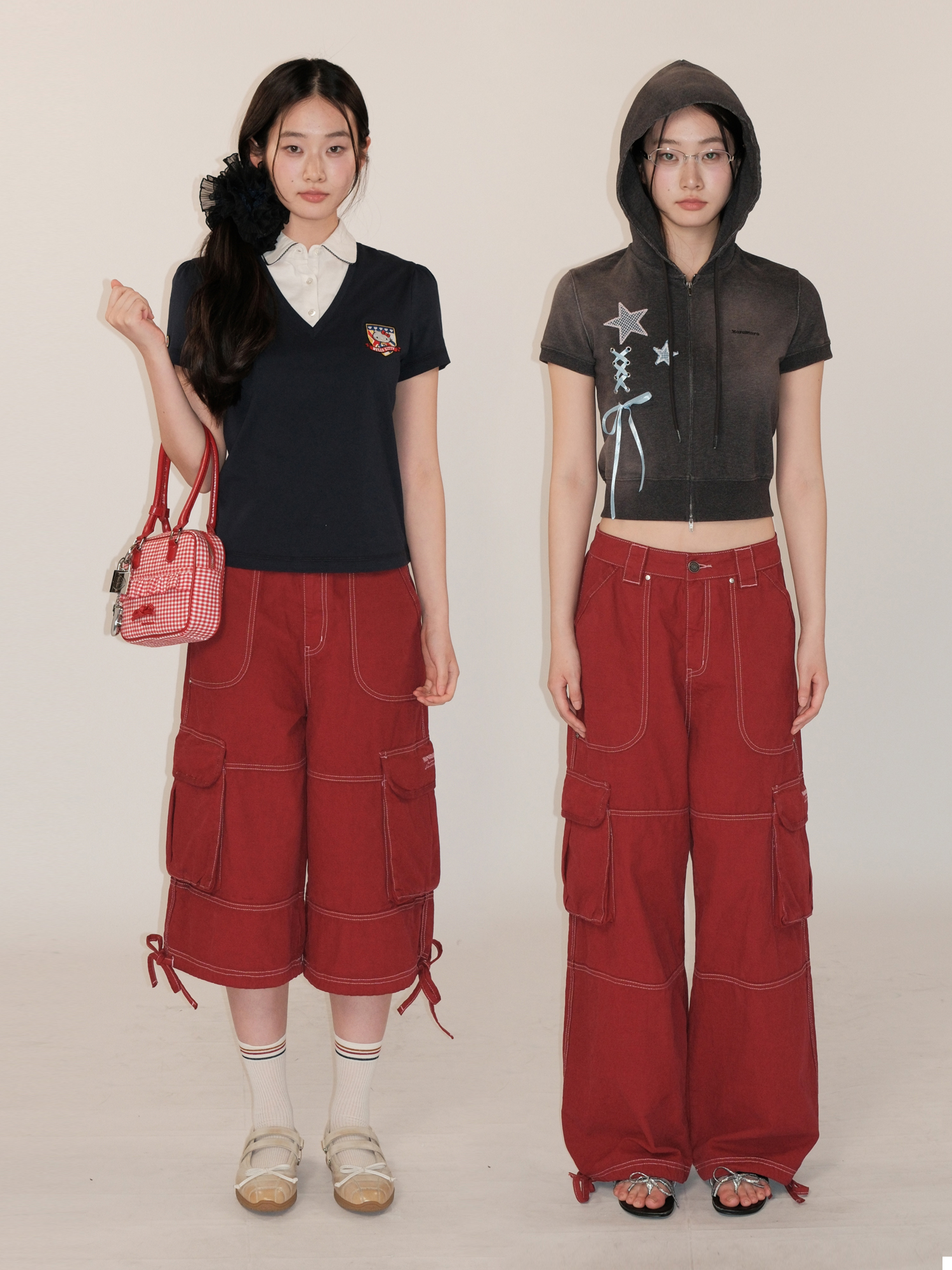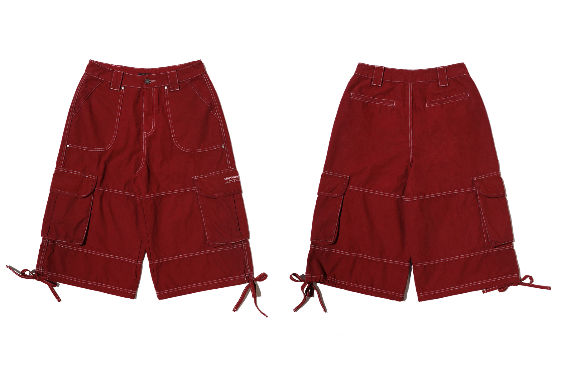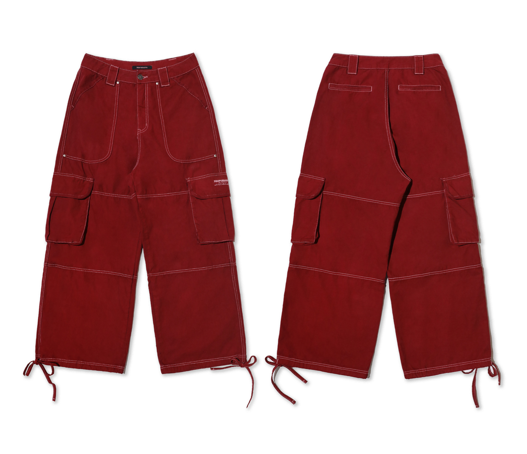 Moromoro bamboo textured stitching embroidery large pockets drawstring pants