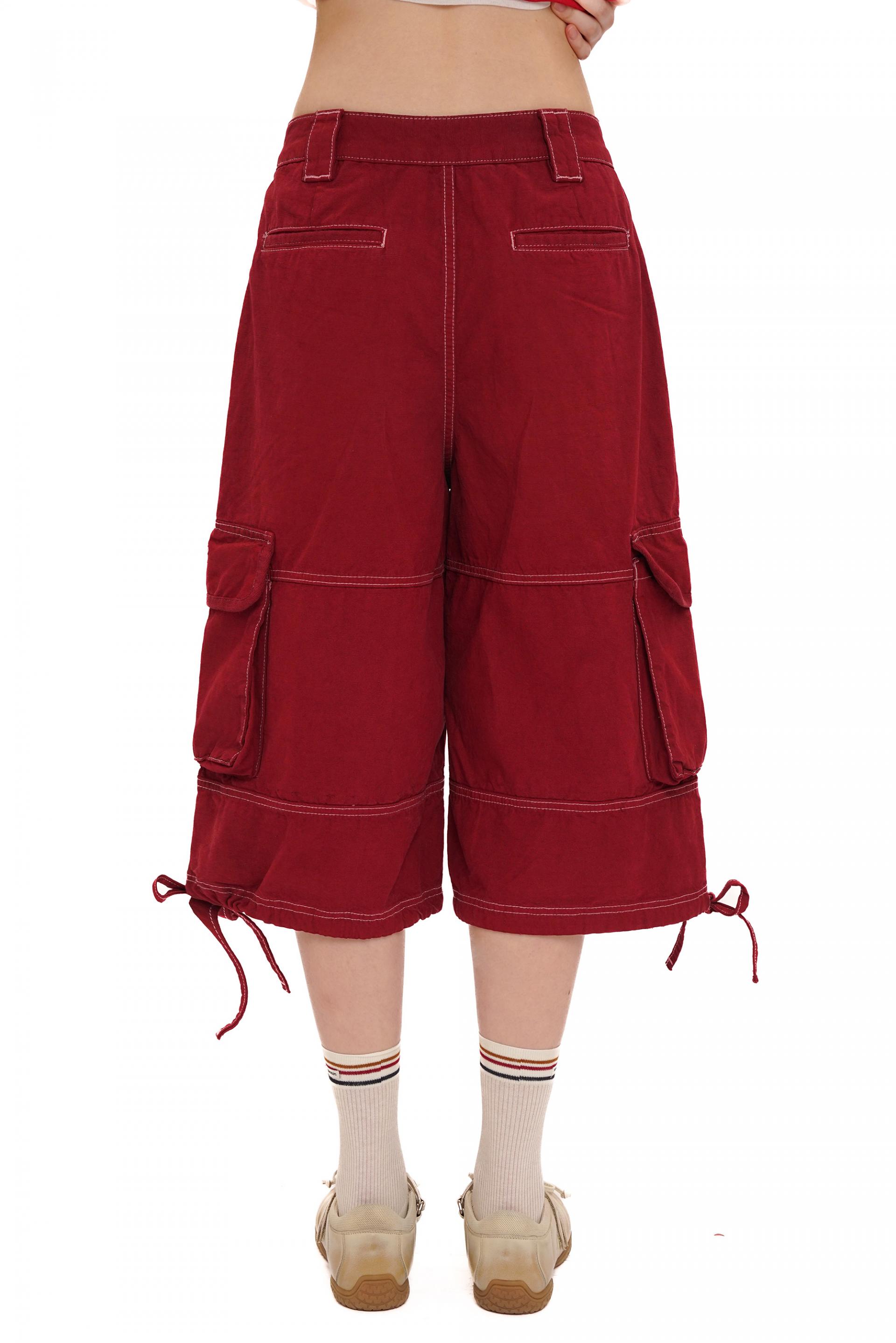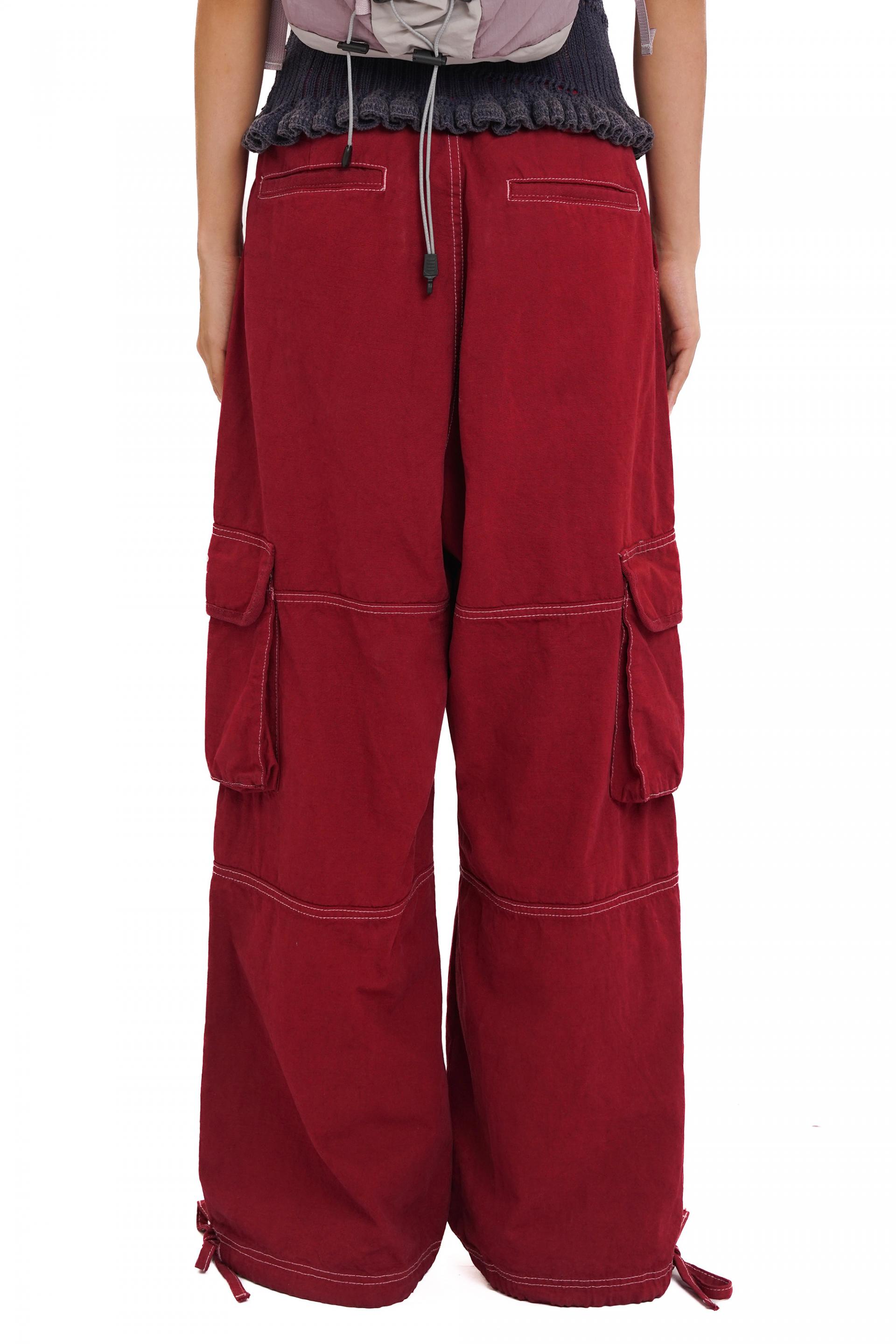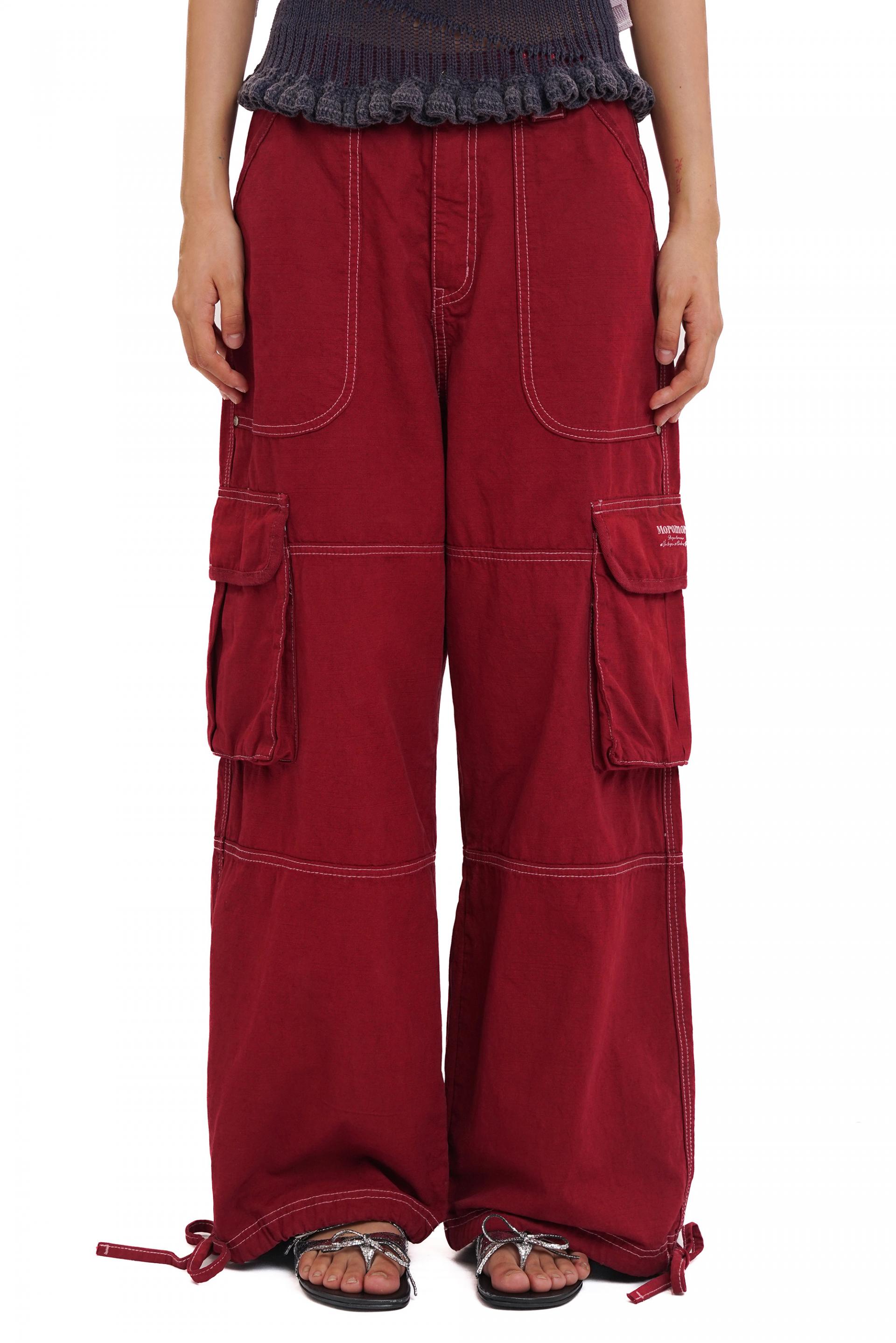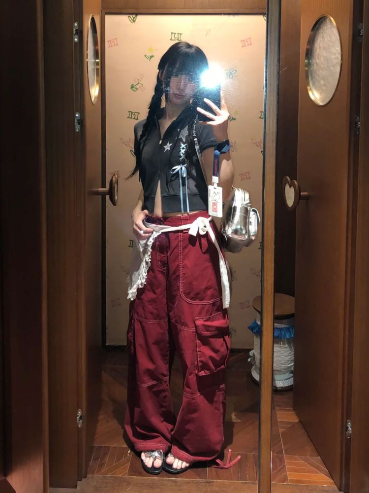 Moromoro bamboo textured stitching embroidery large pockets drawstring pants
