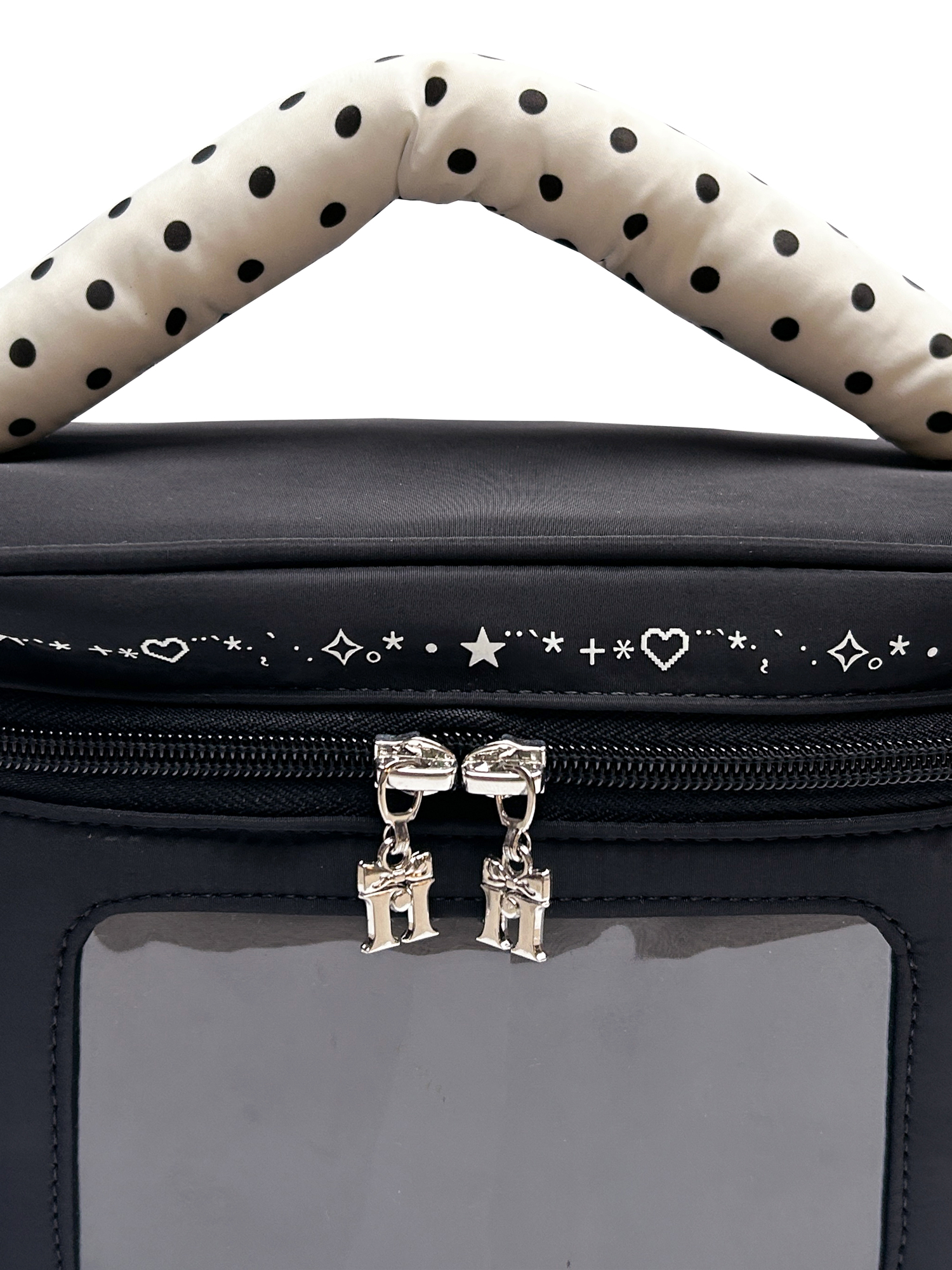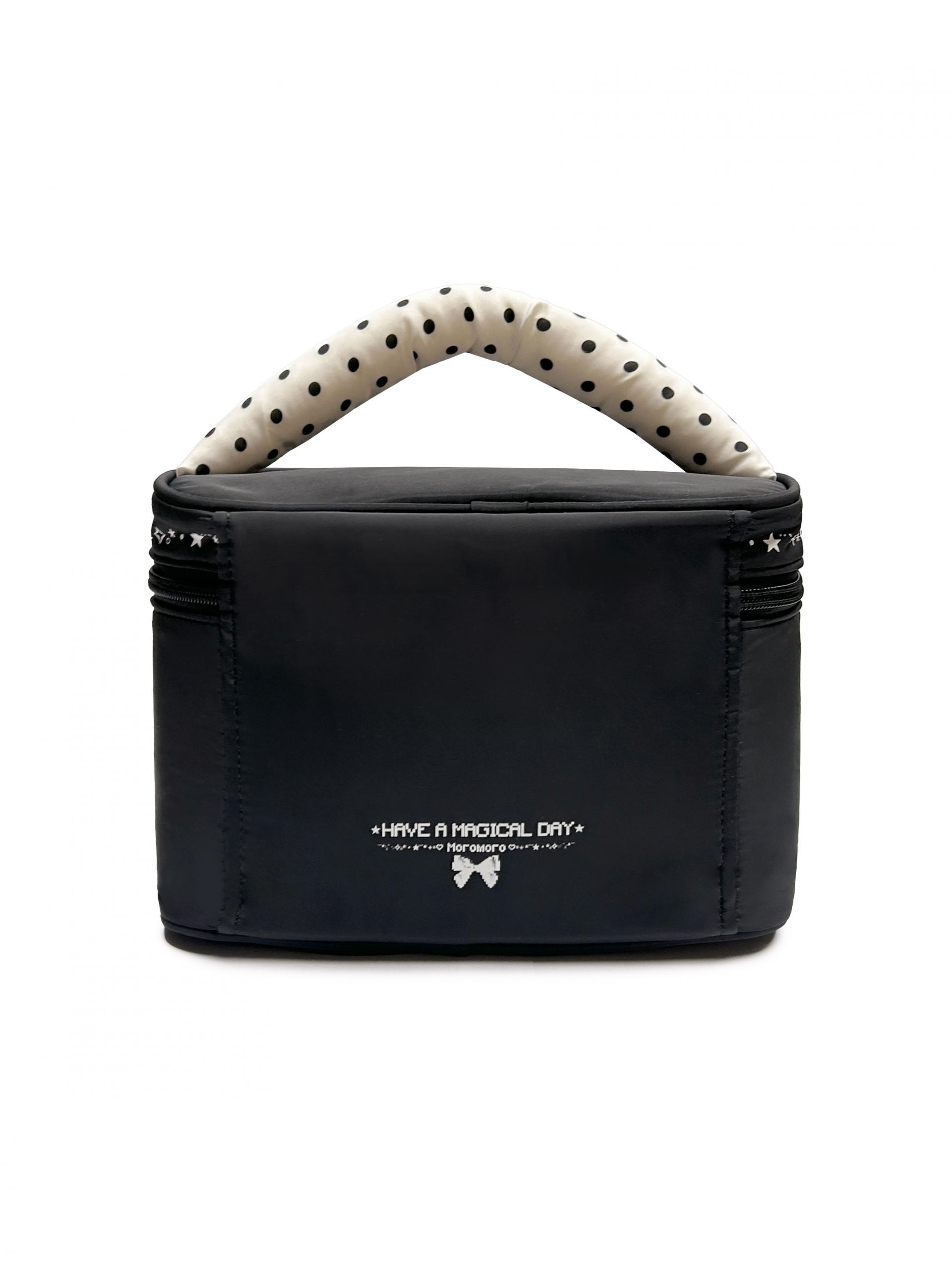 Moromoro Text Printed Dot-Filled Cotton Handle Large Makeup Bag